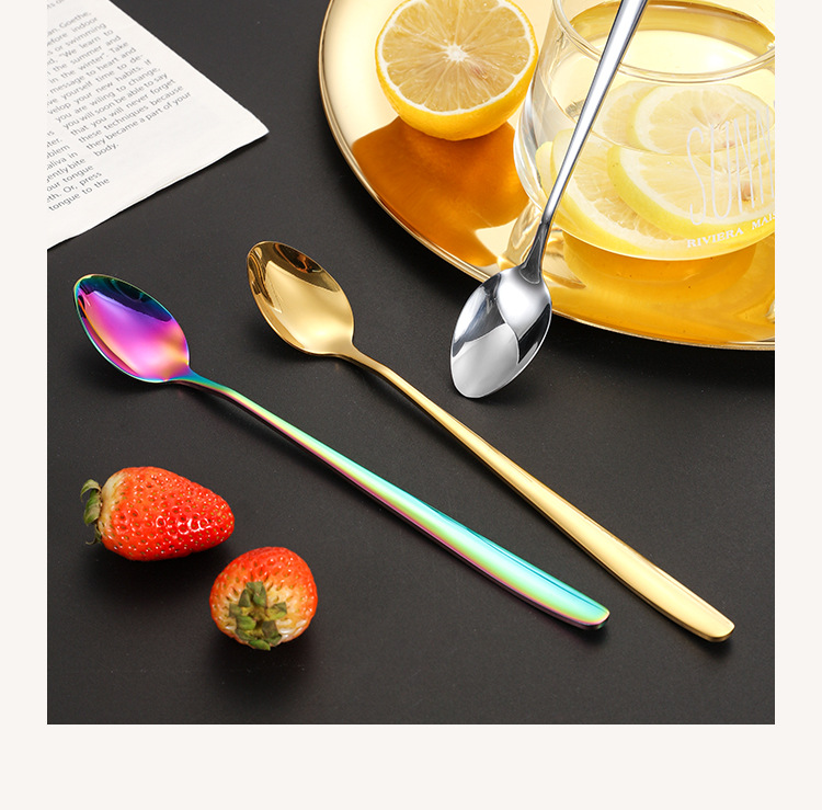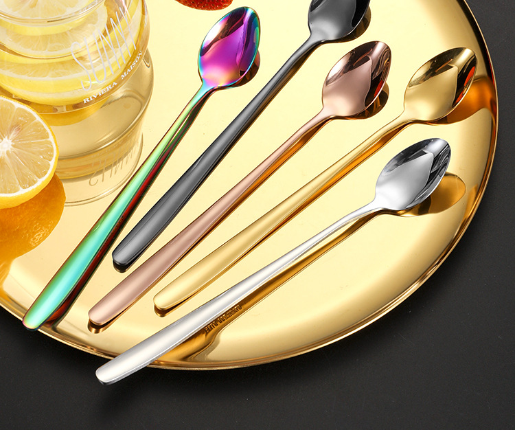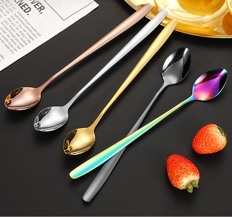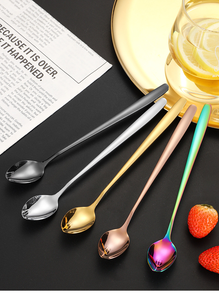 Cuchara de café de mango largo de estilo coreano cuchara de postre taza con cucharas de condimentos leche batida barra de acero inoxidable