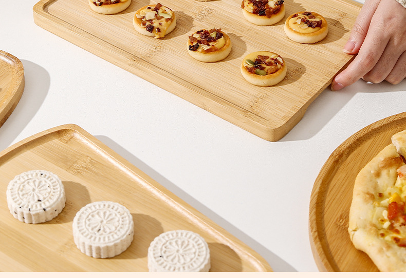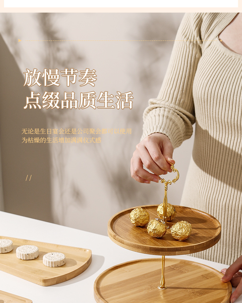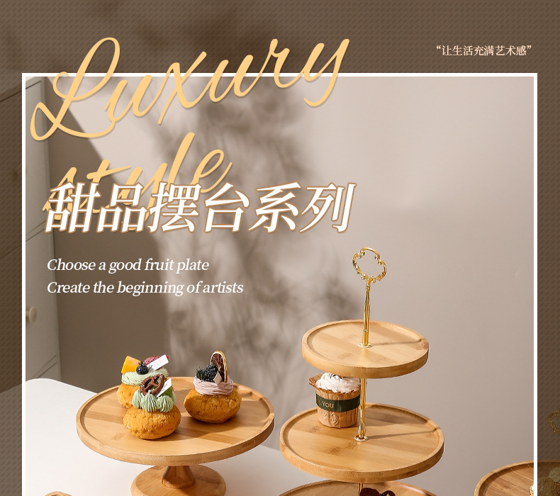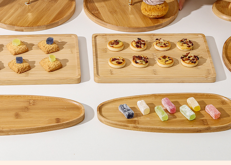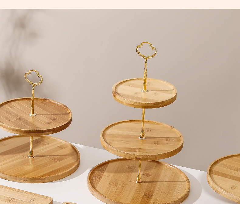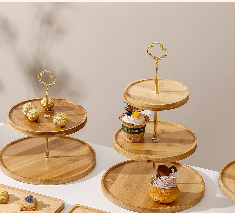 Madera de bambú plato de fruta de madera maciza Plato cuadrado postre estante redondo doble pastel plato de fruta de madera té de la tarde