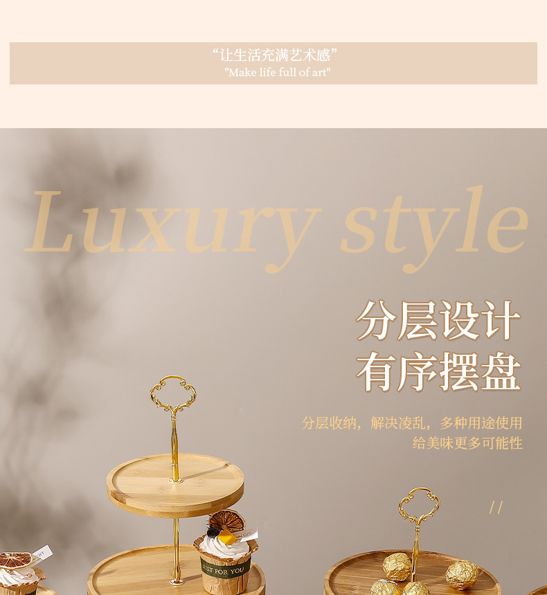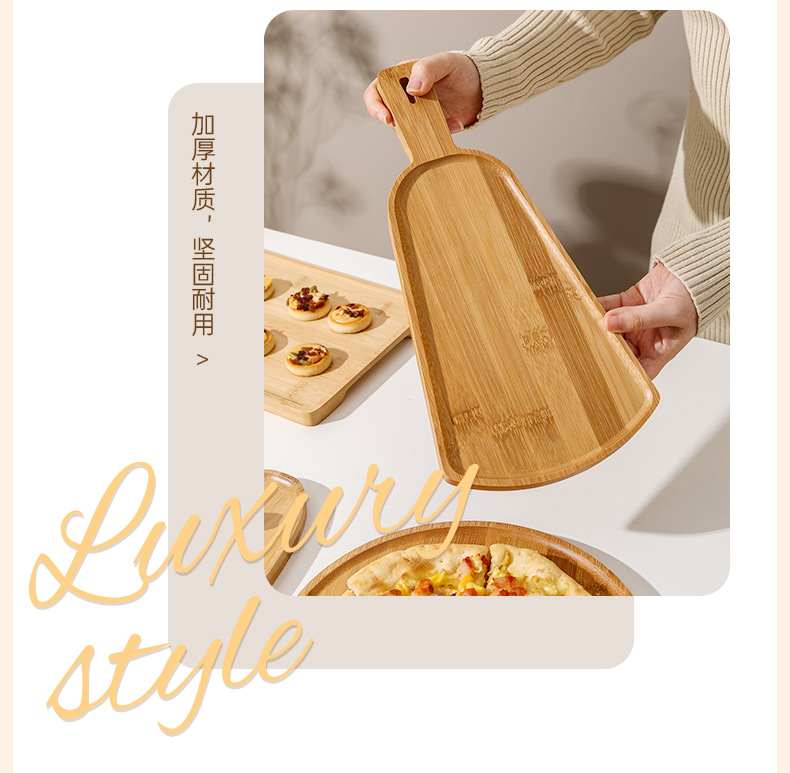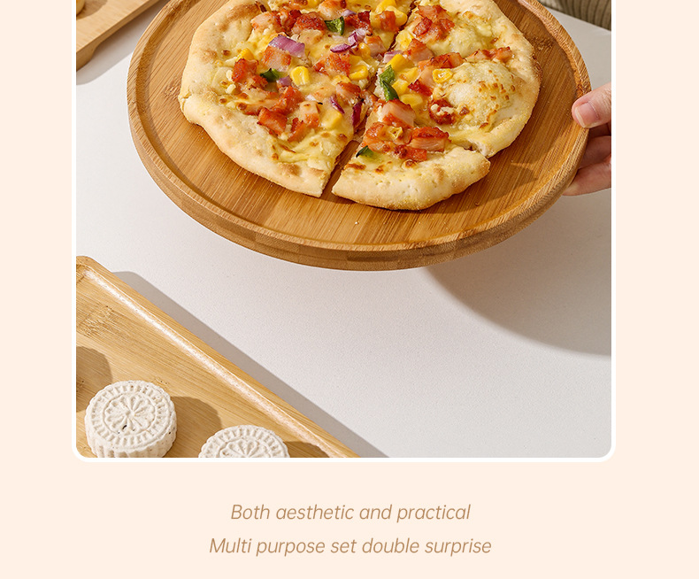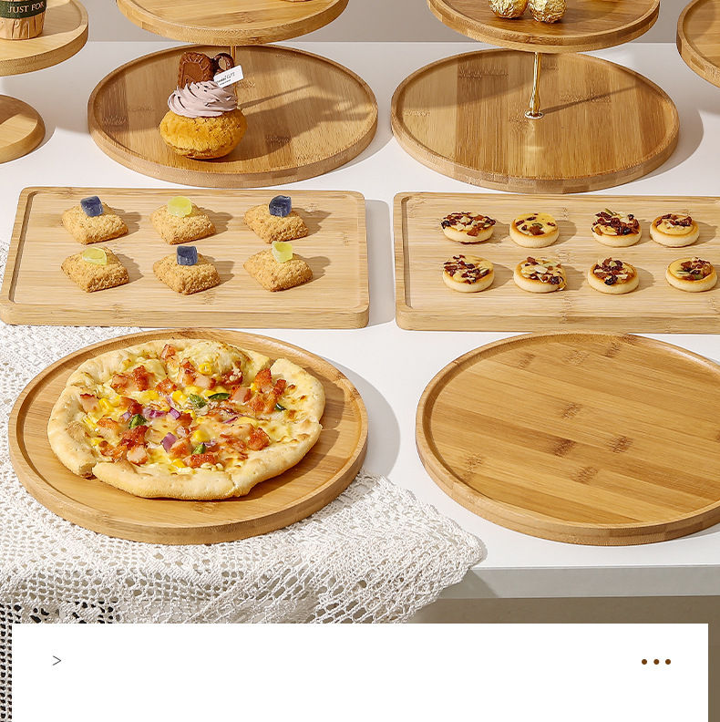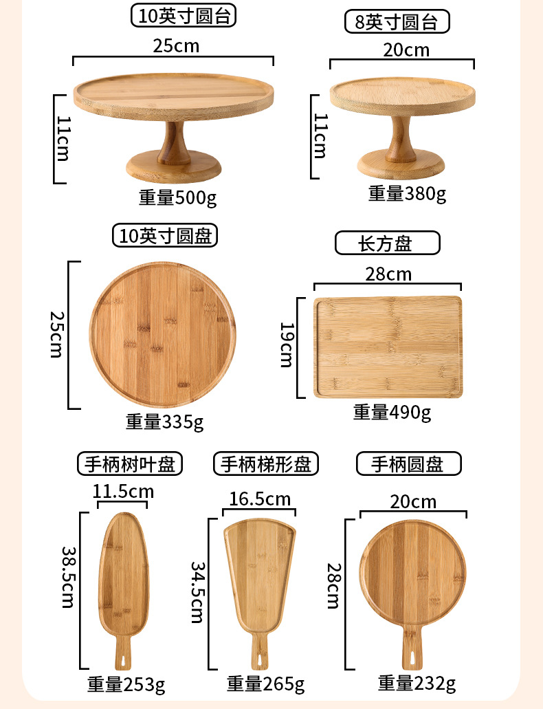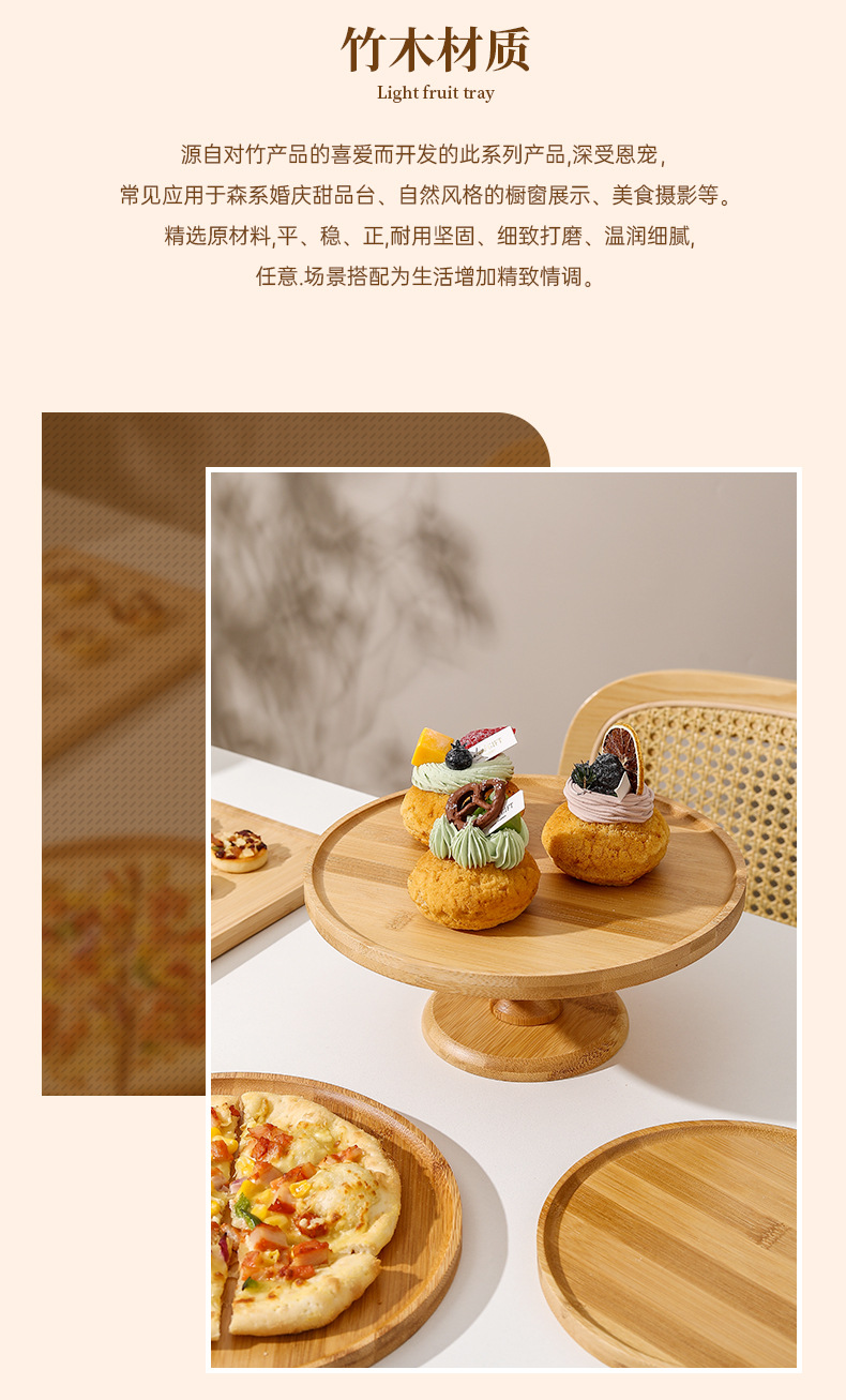 Madera de bambú plato de fruta de madera maciza Plato cuadrado postre estante redondo doble pastel plato de fruta de madera té de la tarde