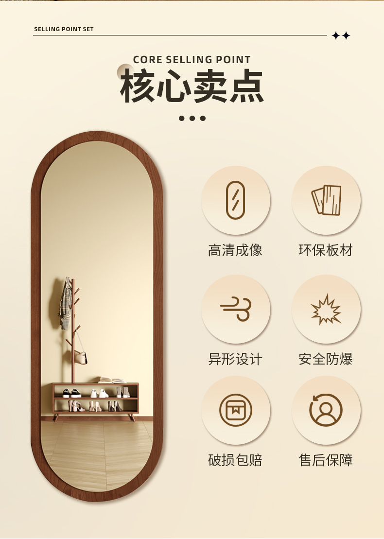 Espejo de cuerpo entero colgado en la pared, espejo de vestir de forma especial, gran espejo de pared, red red de viento, dormitorio colgado en la pared, espejo de prueba de vestir