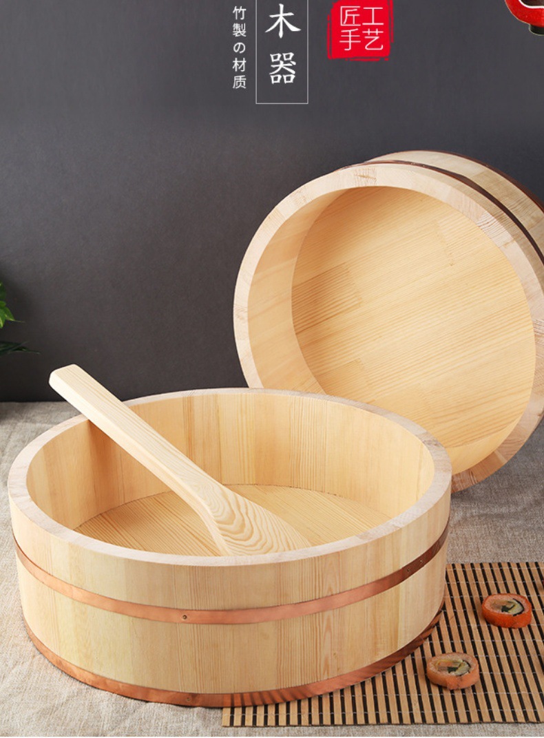 Estilo japonés de madera olla bibimbap Cubo de madera vajilla vinagre arroz sashimi arroz al vapor olla de arroz olla de cocina de madera Sushi Bibimbap olla