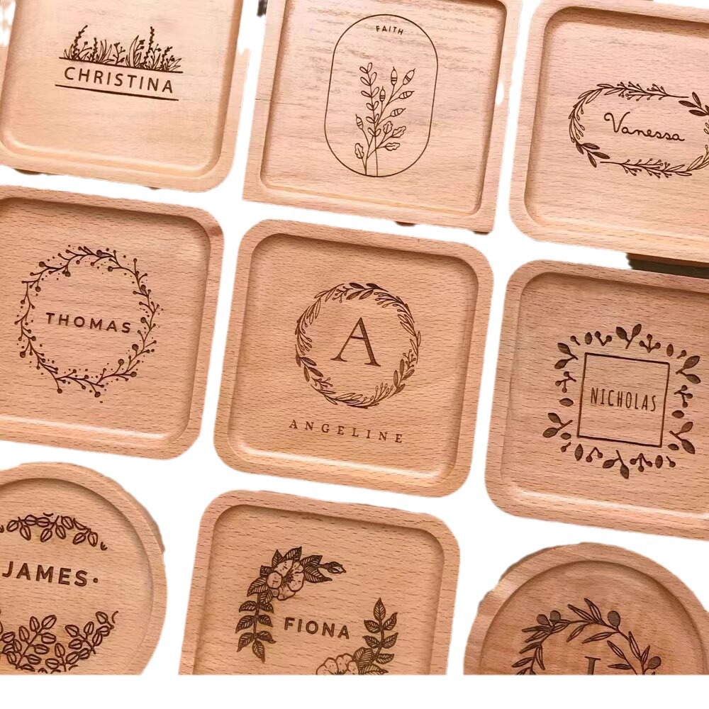Posavasos de Madera Redondo con Logotipo Grabado con Láser, Estilo Americano, para Tazas de Café, Aislante, Estilo Japonés, Simple y Creativo