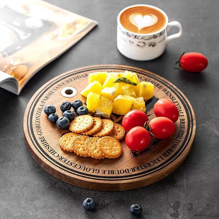 Pantalla de seda redonda logo mini tabla de cortar madera maciza cocina fruta tabla de cortar pan plato queso sushi swing placa