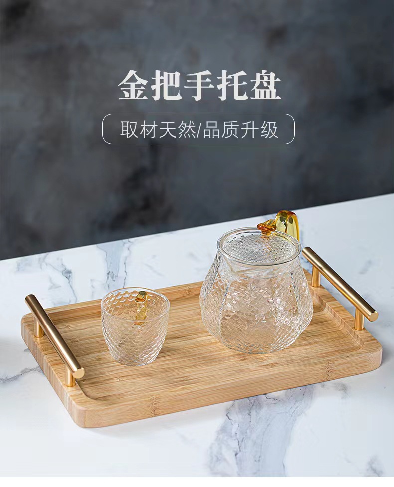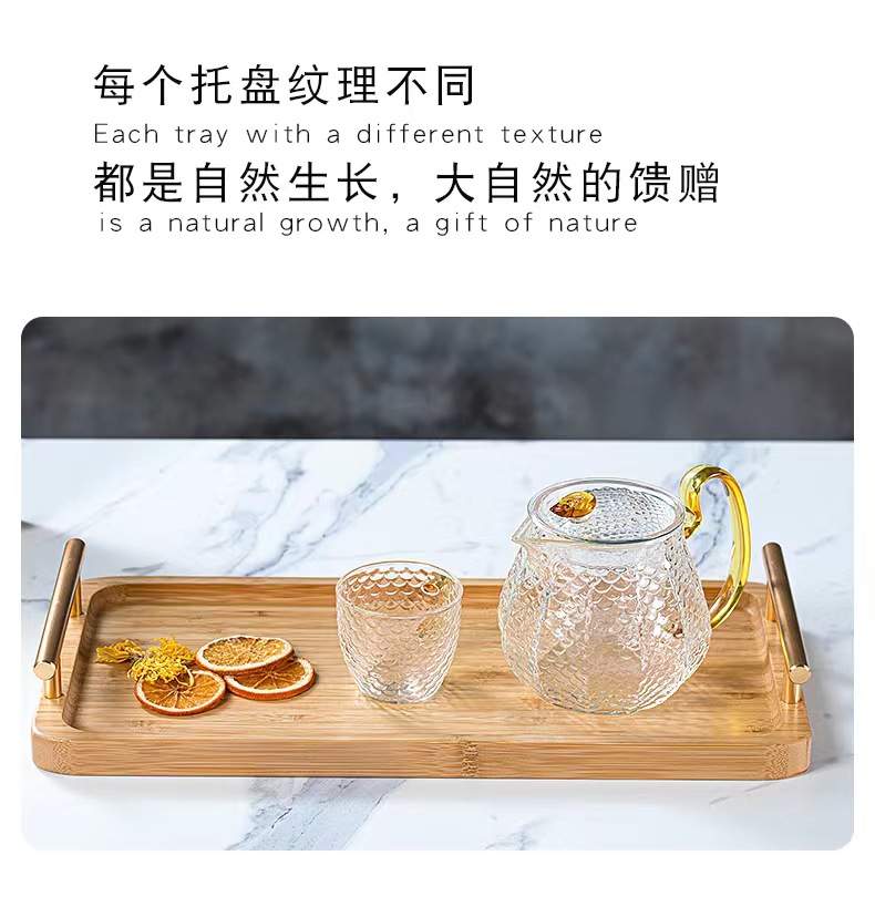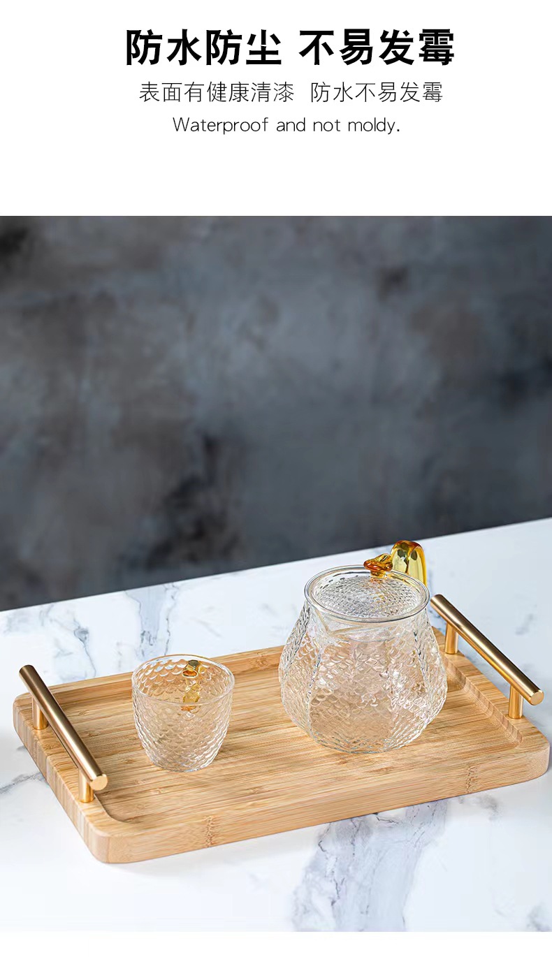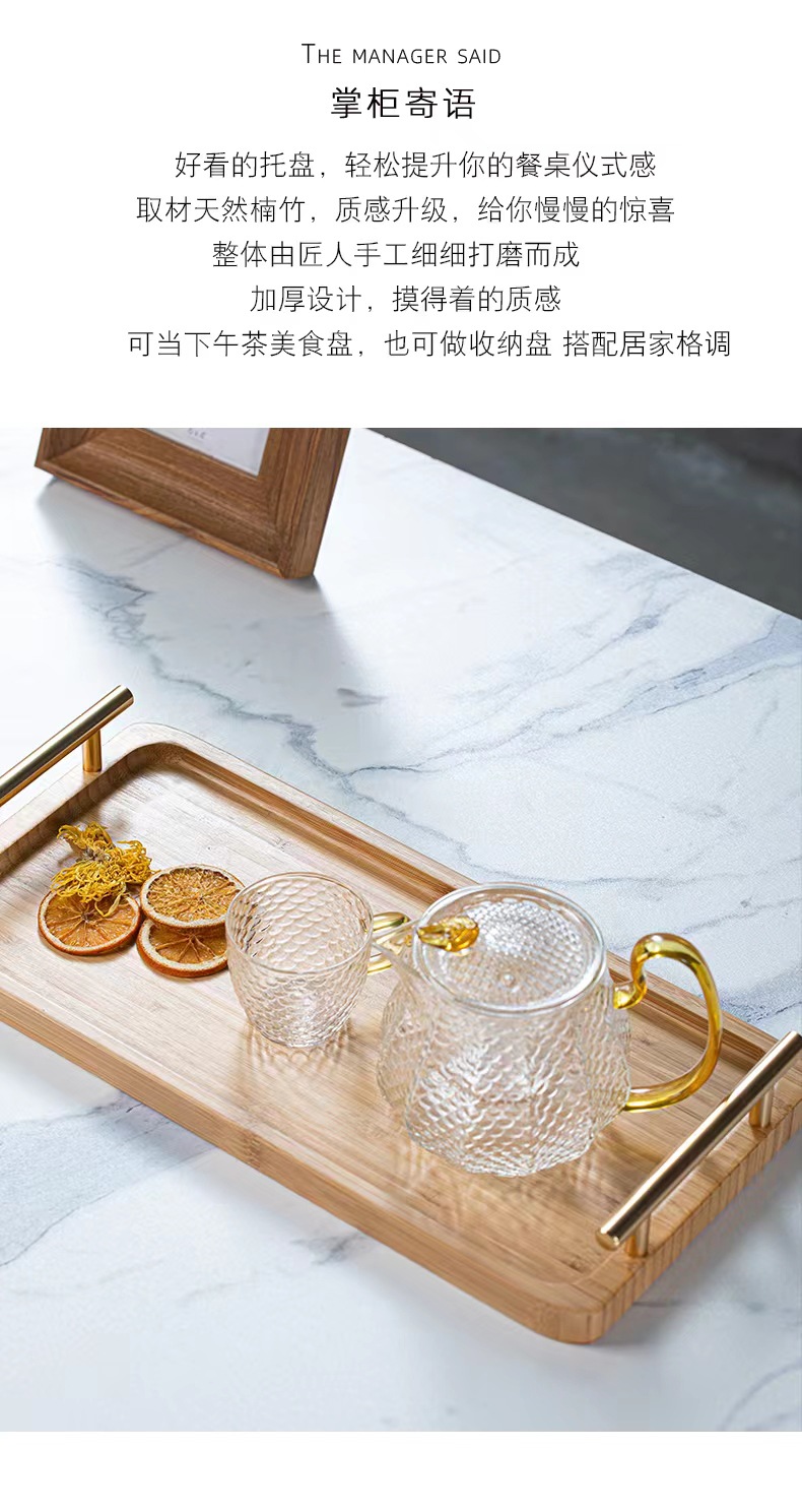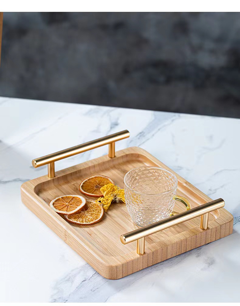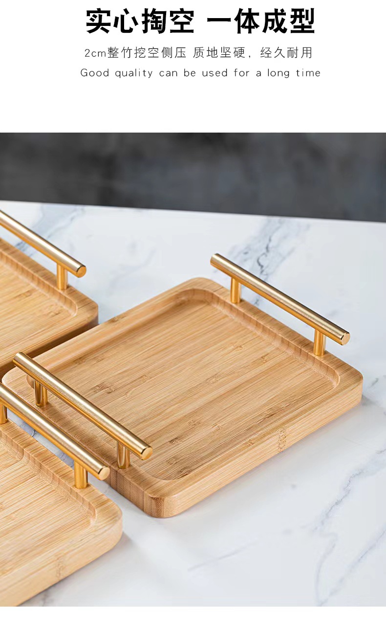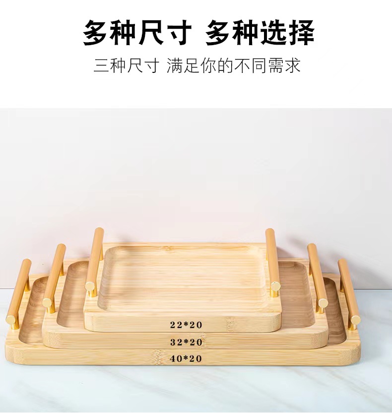 Bandeja de madera de bambú doble oreja con mango taza de madera de bambú bandeja de madera placa de madera pastelería comida mostrar placa de madera