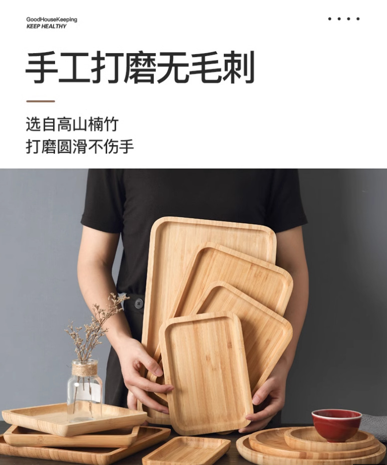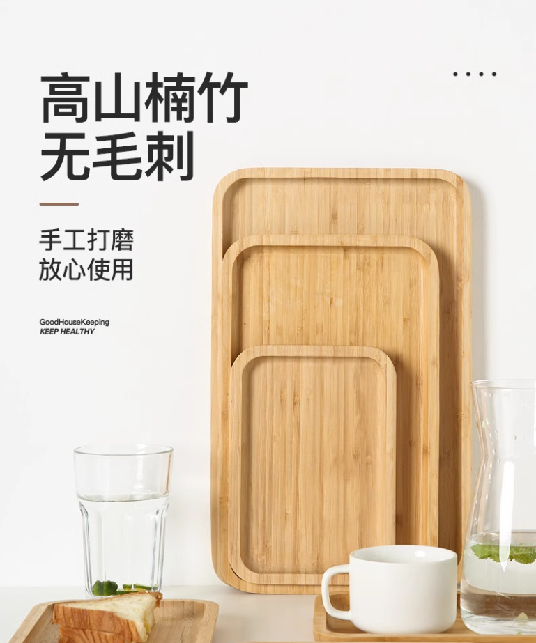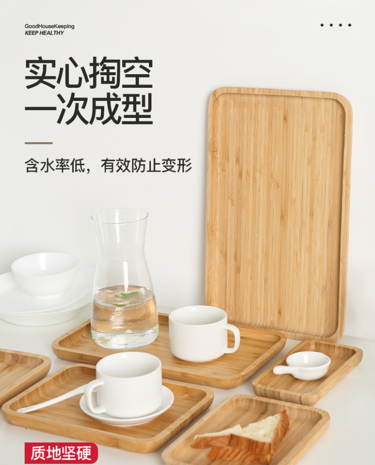 Bandeja de bambú rectangular japonés ins pastel de pizza placa redonda Nordic hogar taza de té vajilla placa