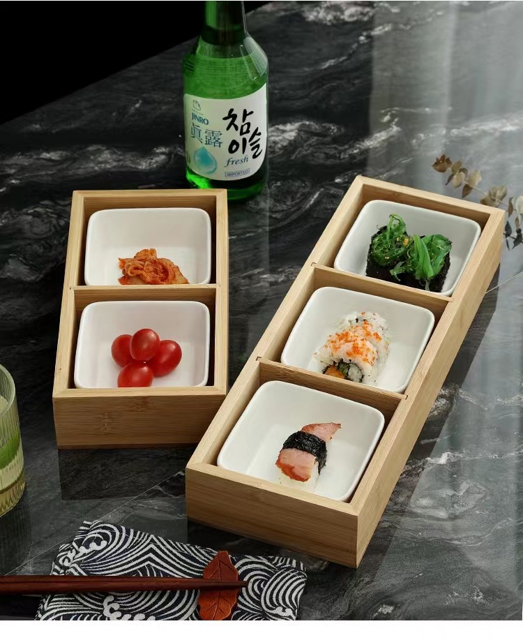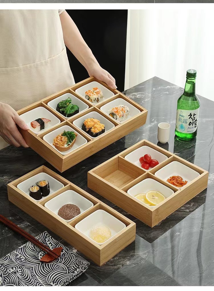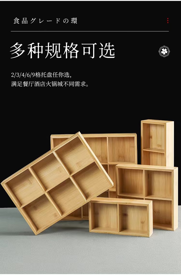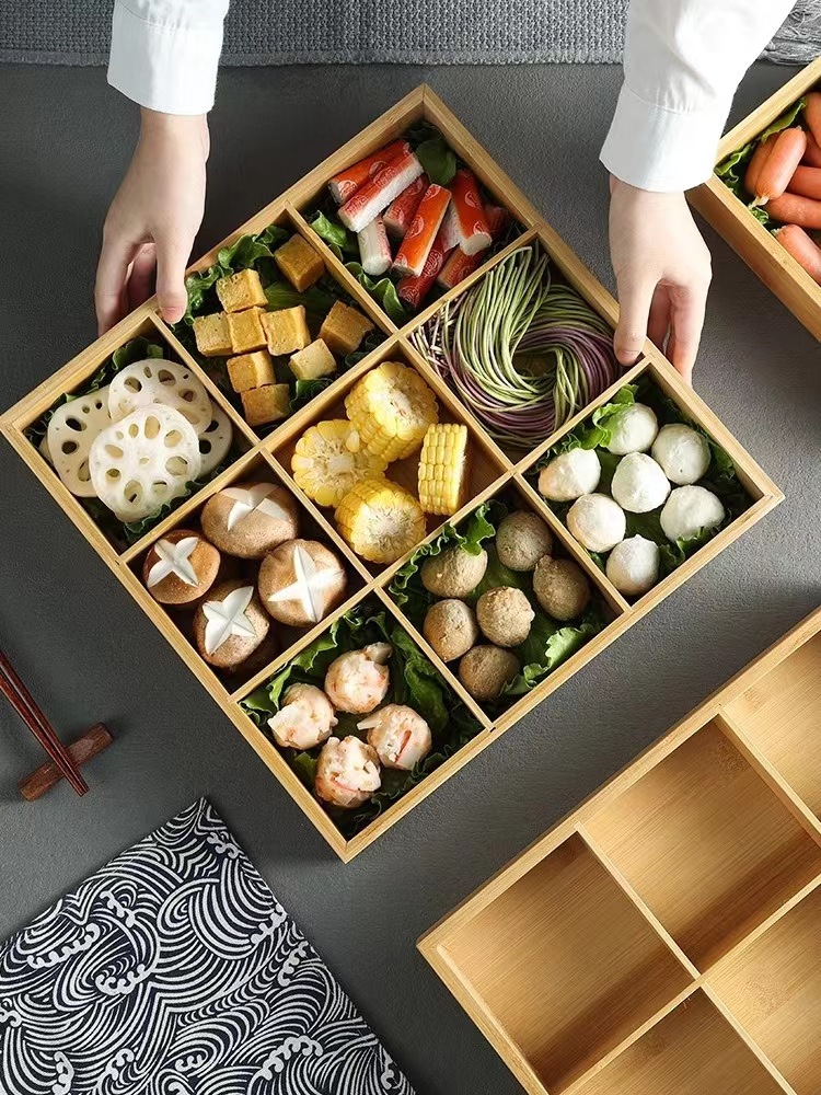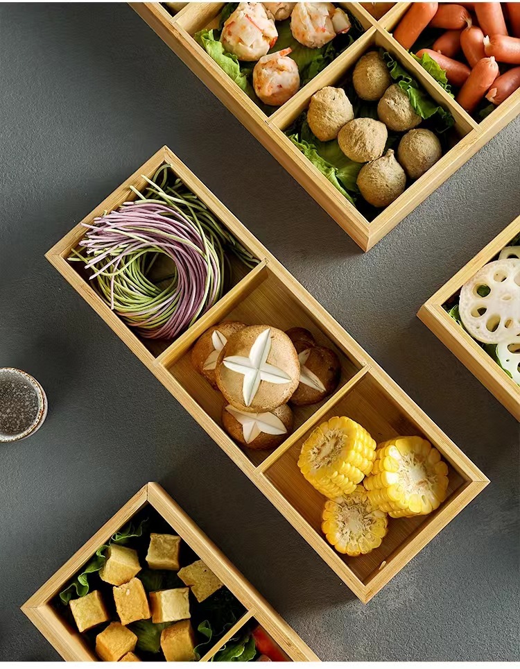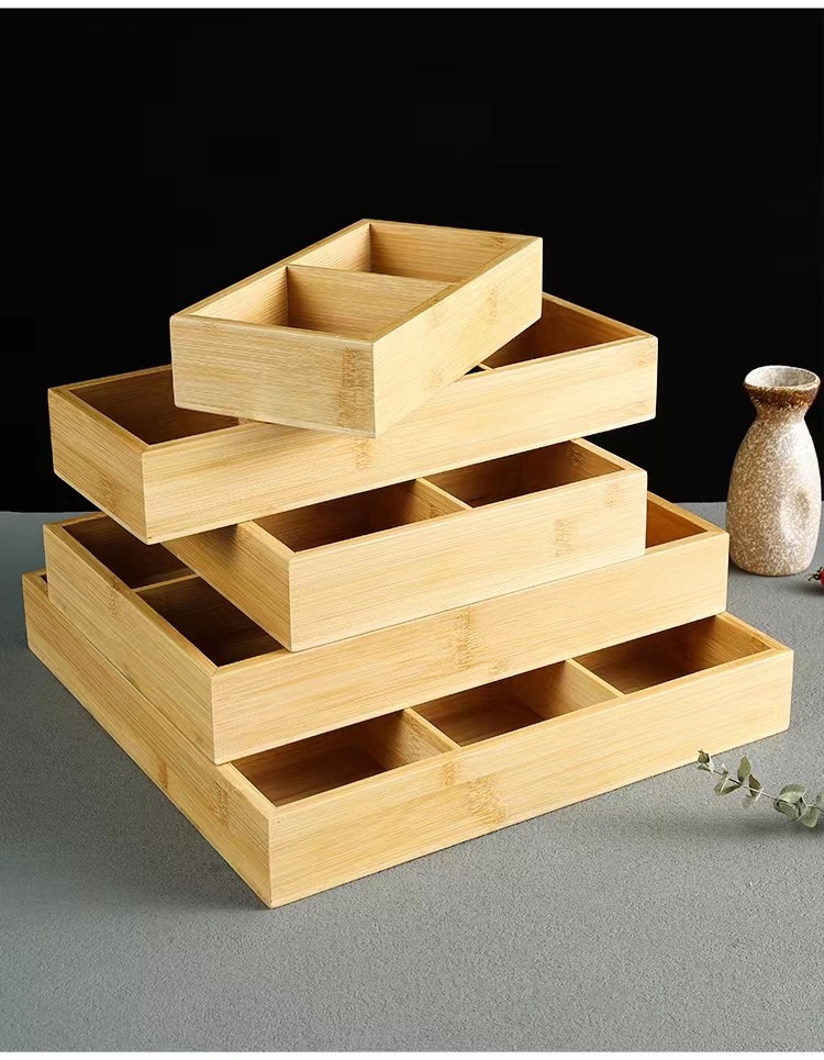 Bandeja de caja de bambú de tres rejillas