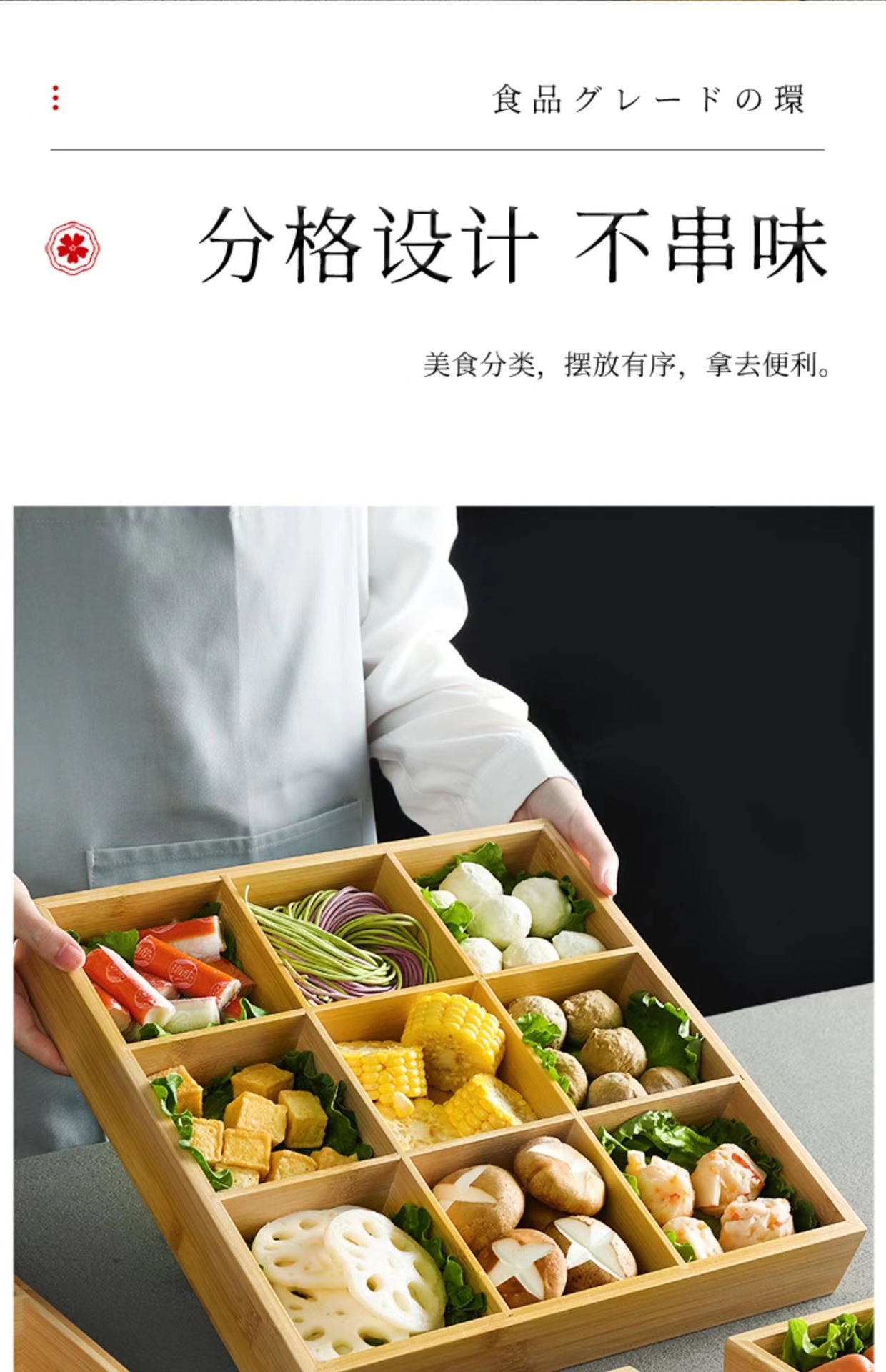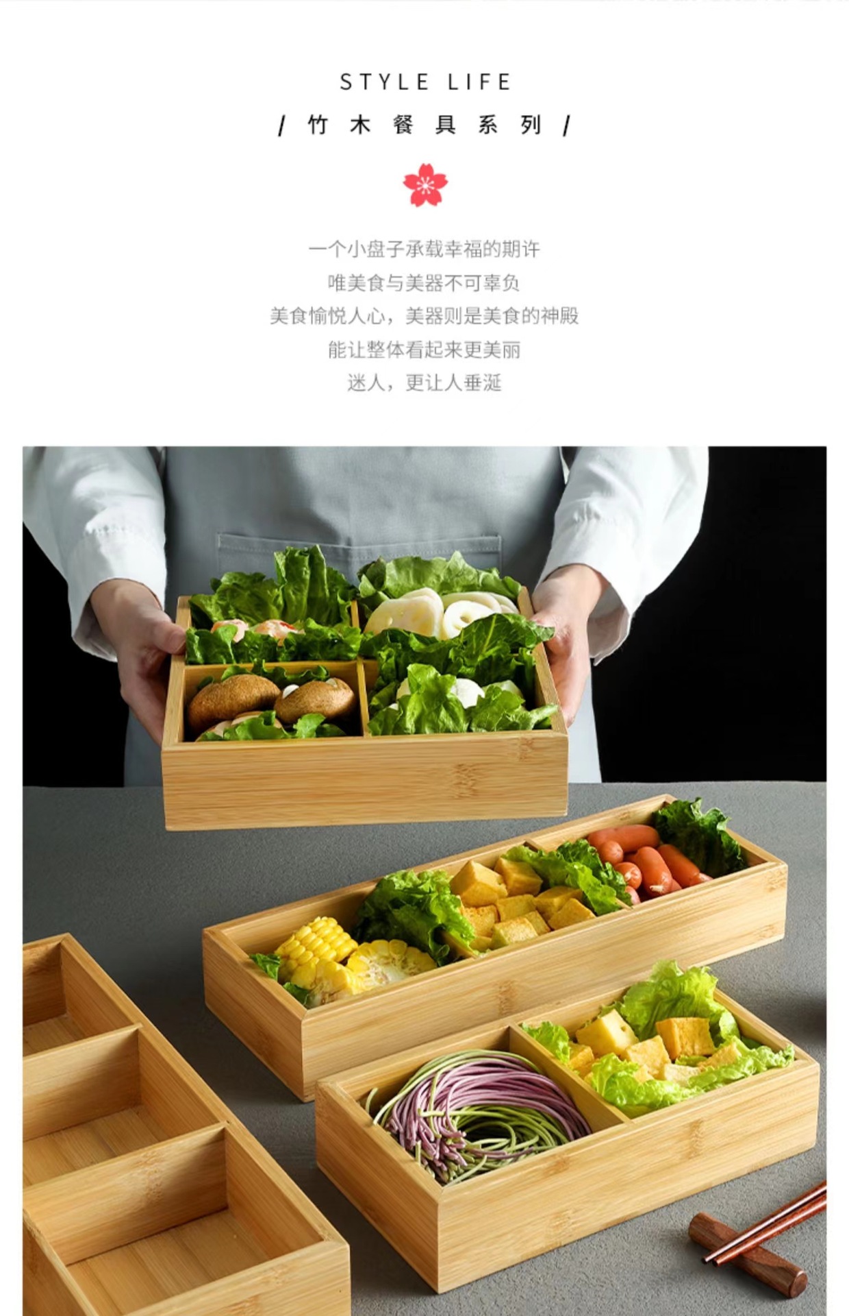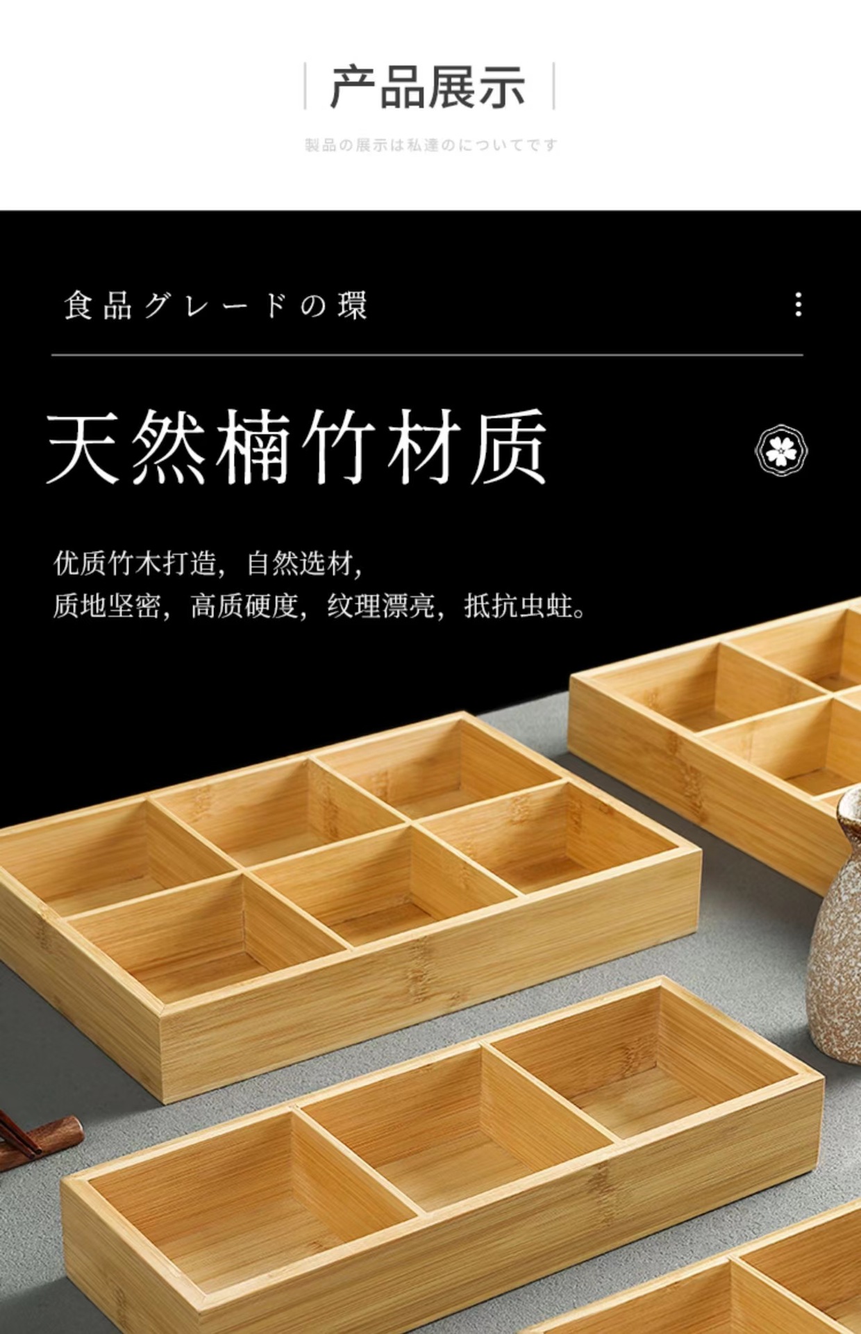 Bandeja de caja de bambú de tres rejillas