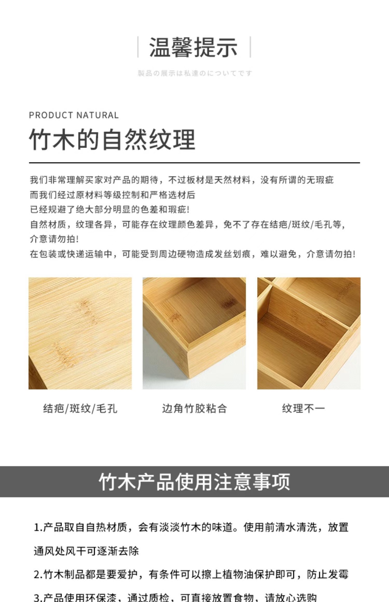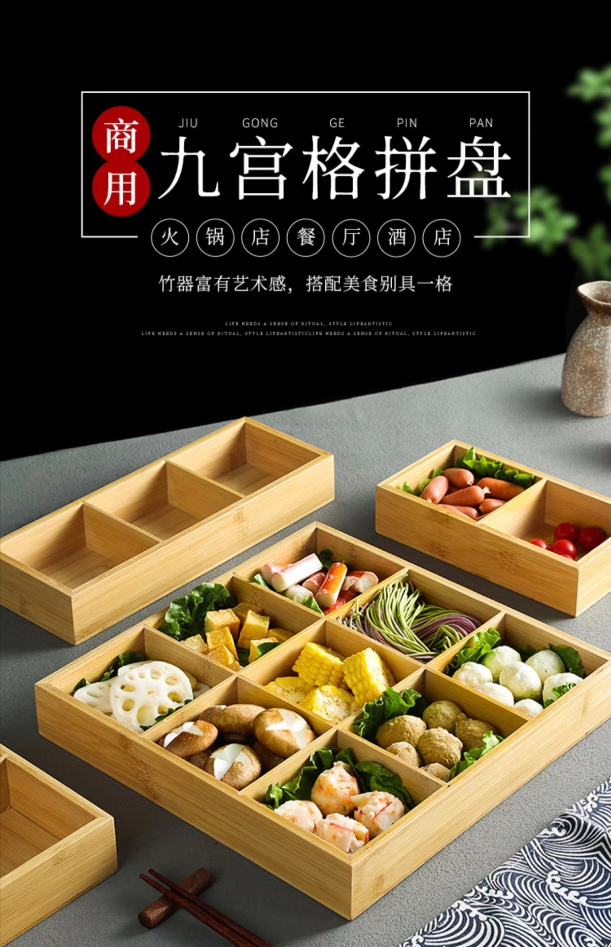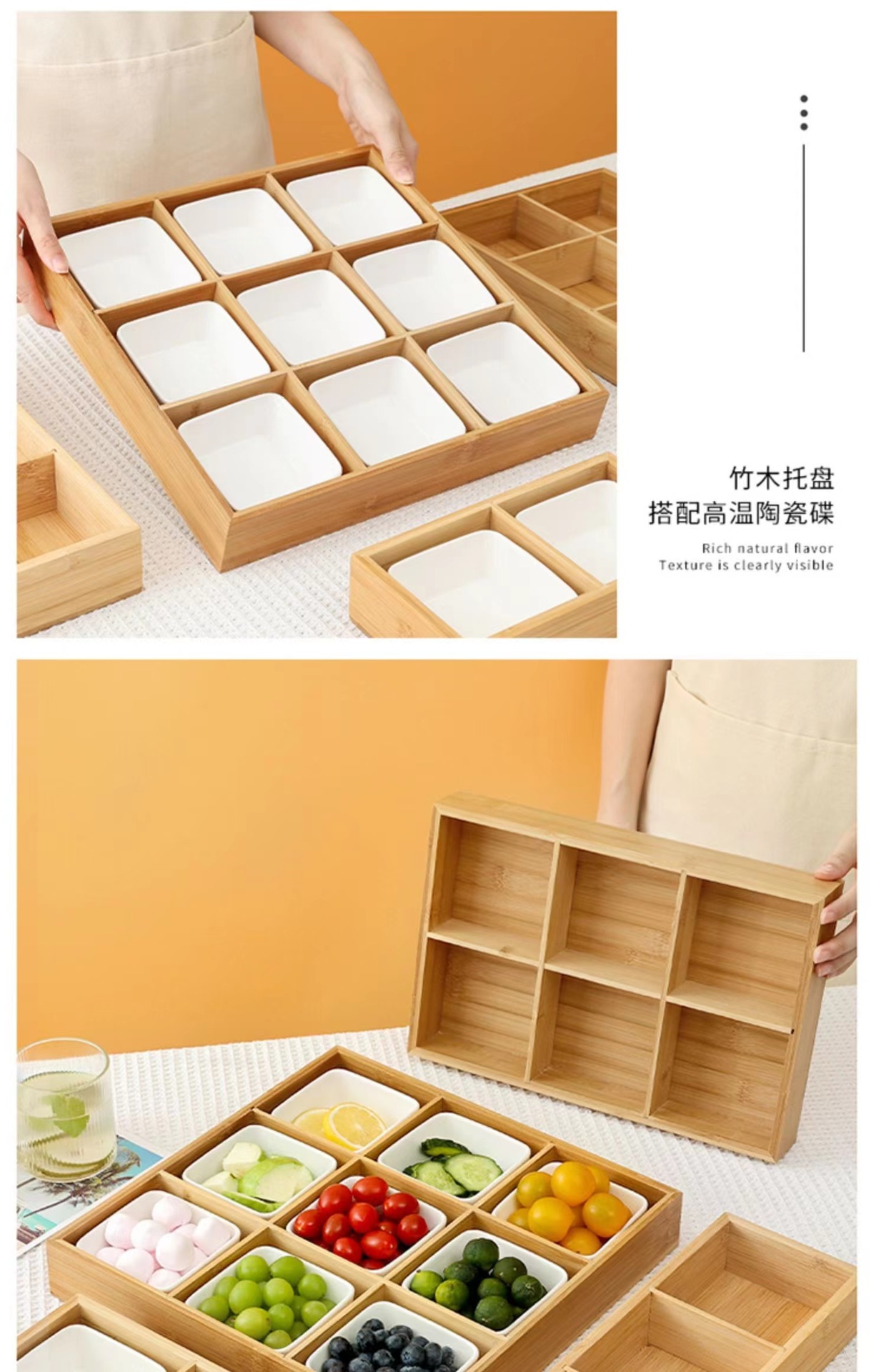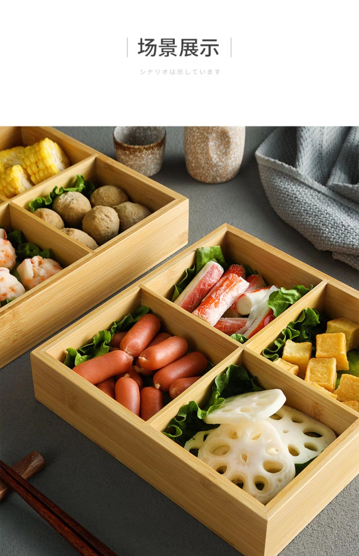 Bandeja de caja de bambú de tres rejillas