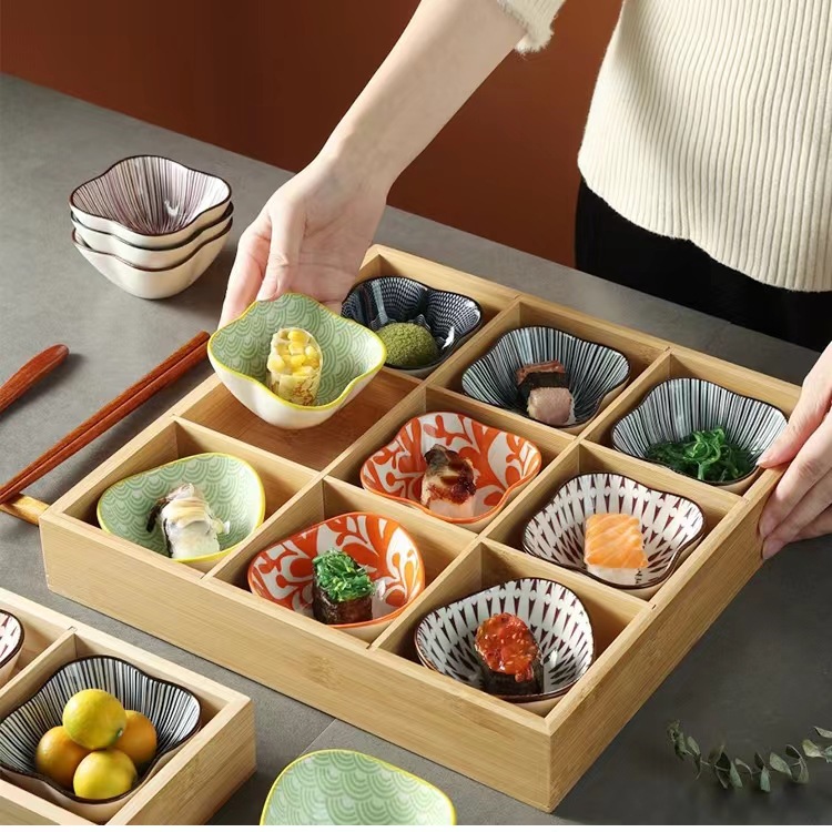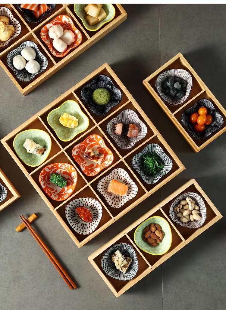 Japonés plato de olla caliente Jiugongge plato de olla caliente barbacoa restaurante ingredientes bandeja de verduras plato de lado vajilla compartimiento merienda