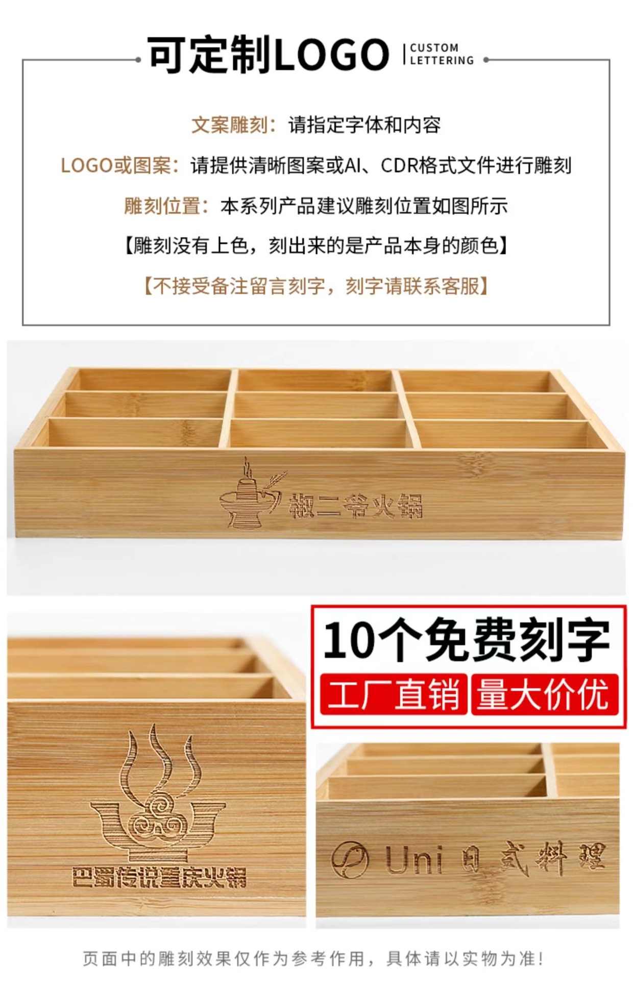 Bandeja de bambú de la caja de la Seis-rejilla