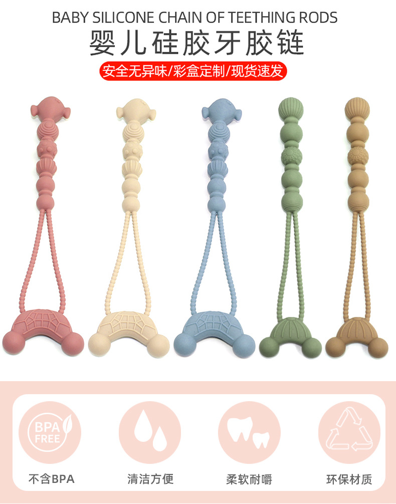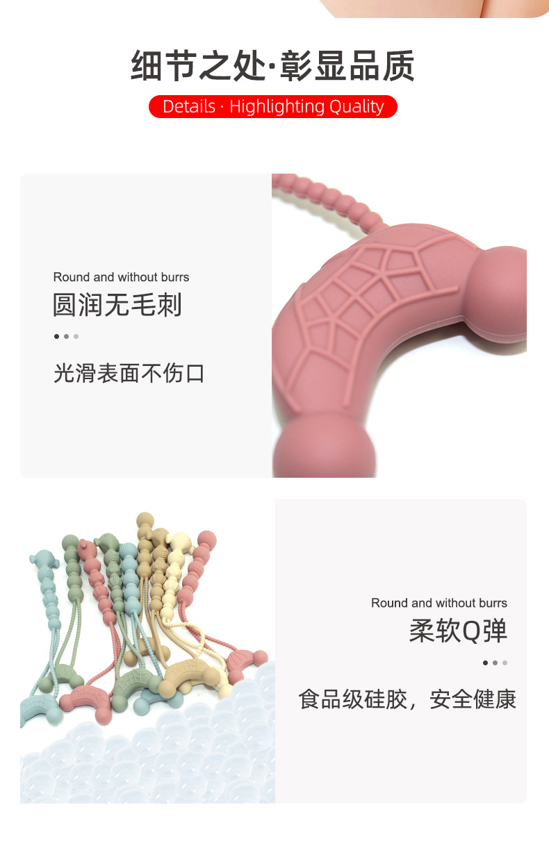 Dientes de bebé cremallera molar juguete calmante silicona grado alimenticio puede roer manos de prevención de comer Amazon transfronterizo
