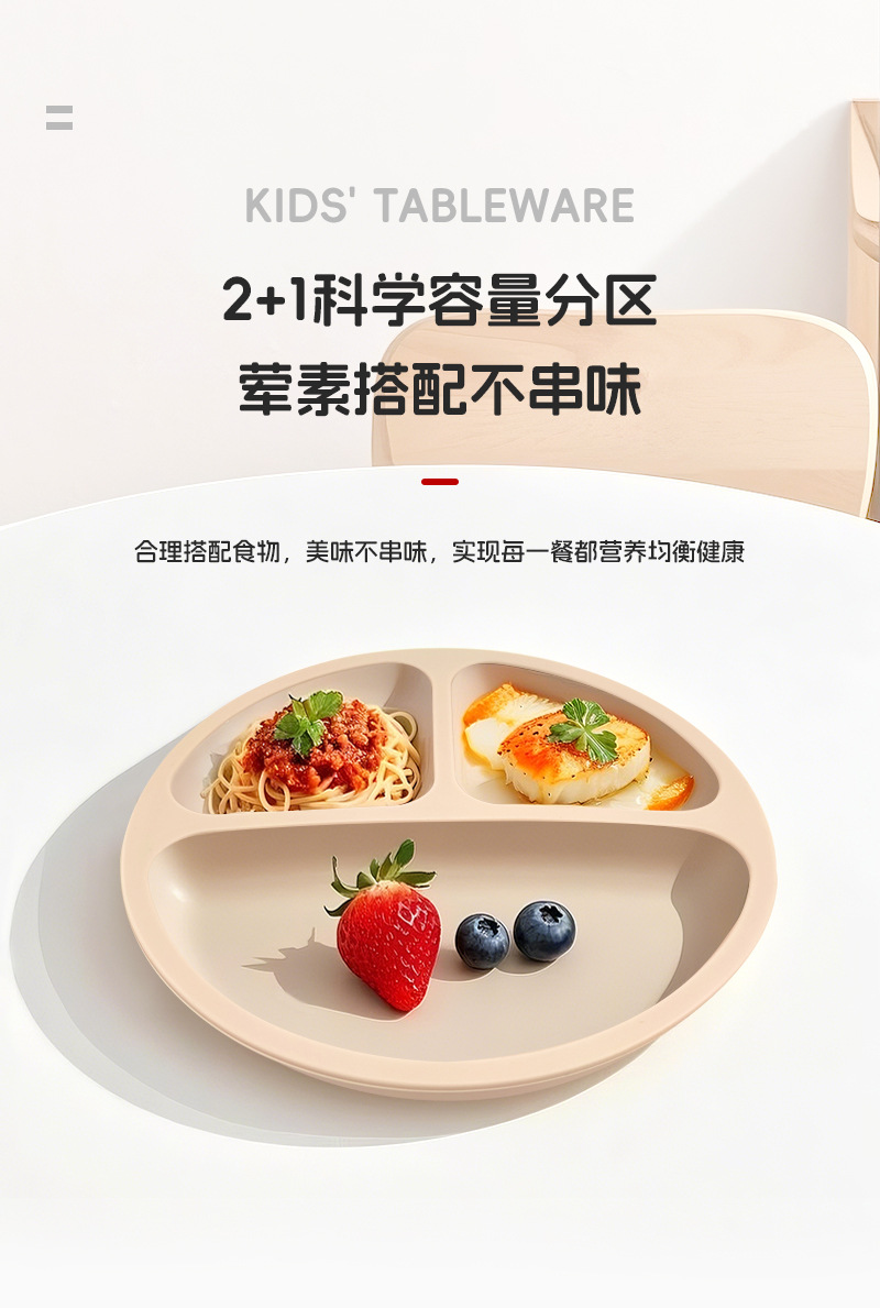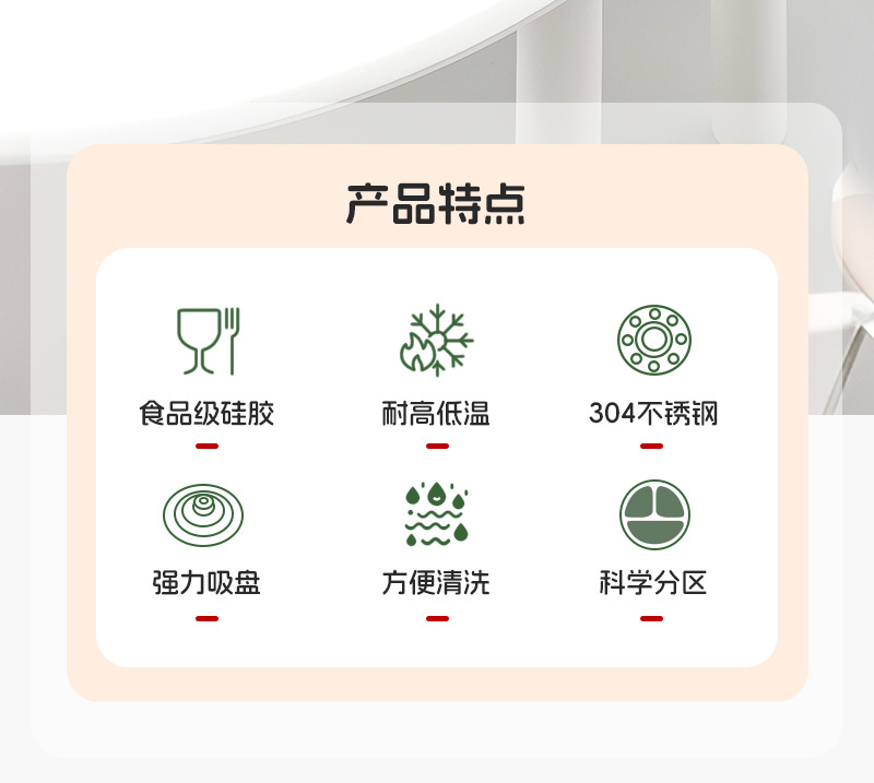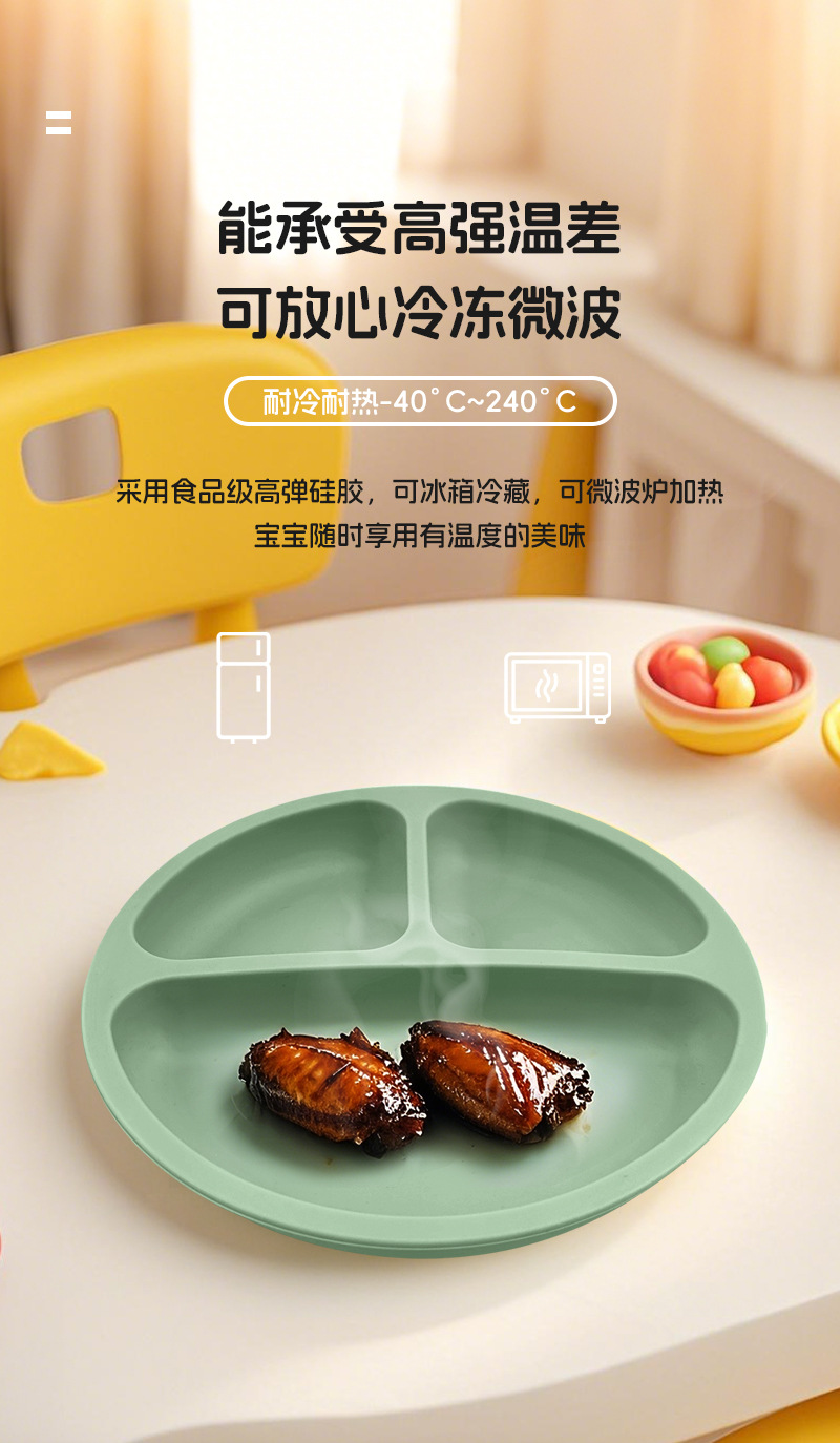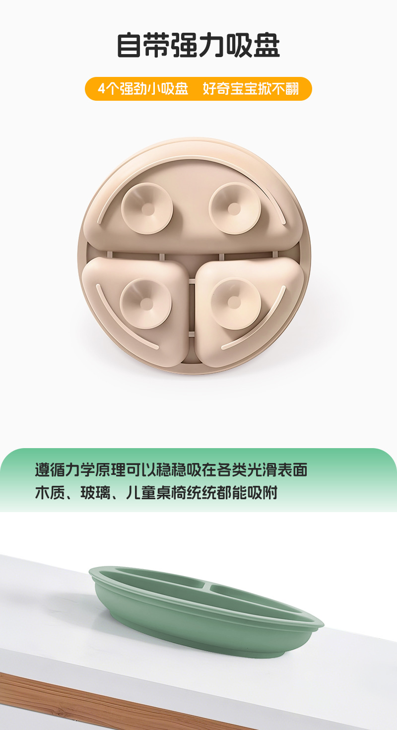 Placa de comedor de silicona para bebés 304 tenedor y cuchara de acero inoxidable, plato de ventosa, alimento complementario de tres compartidos para bebés de grado alimenticio resistente a altas temperaturas
