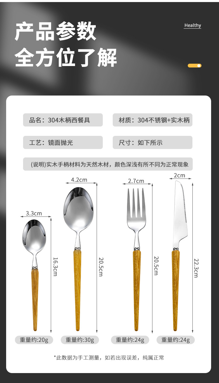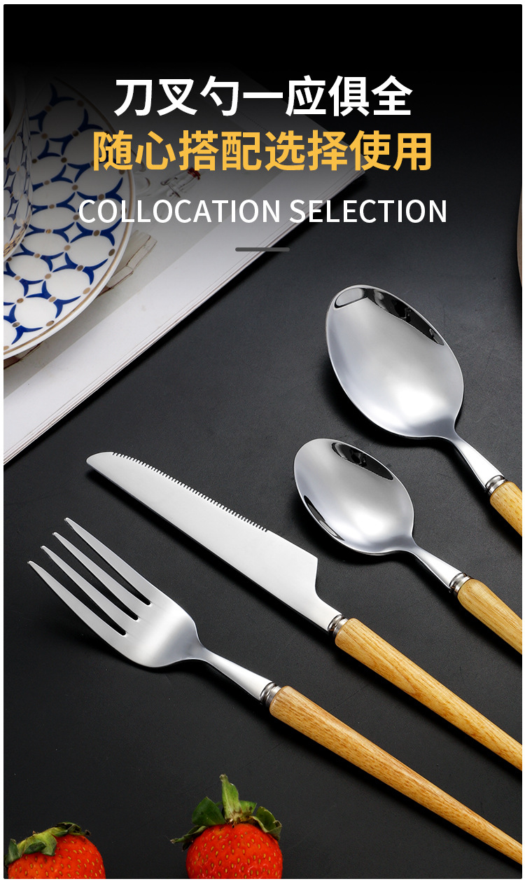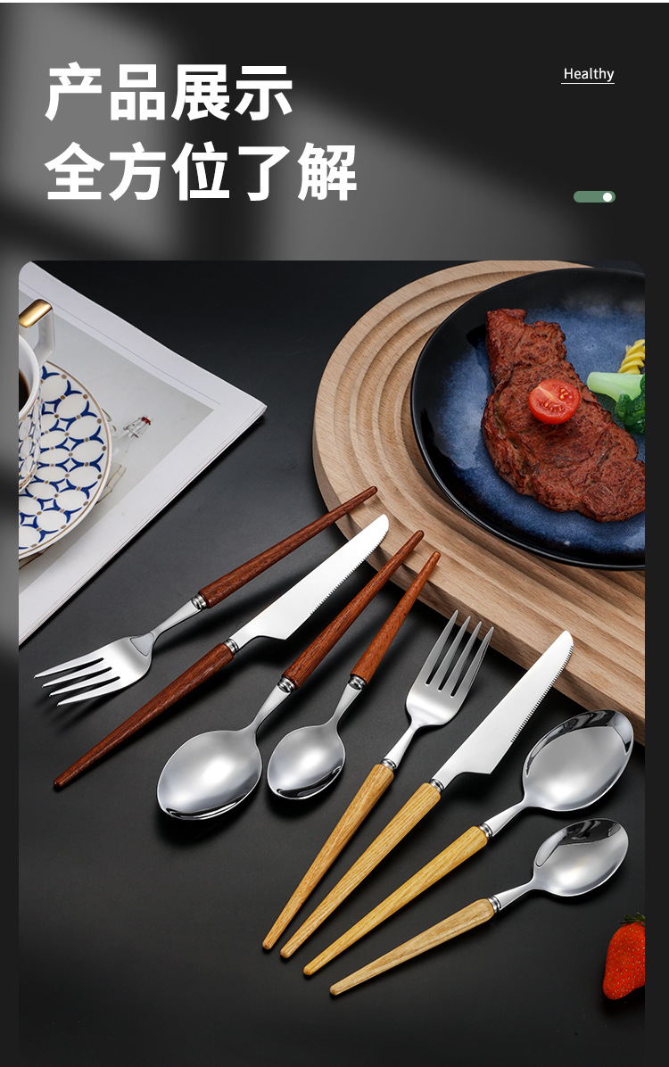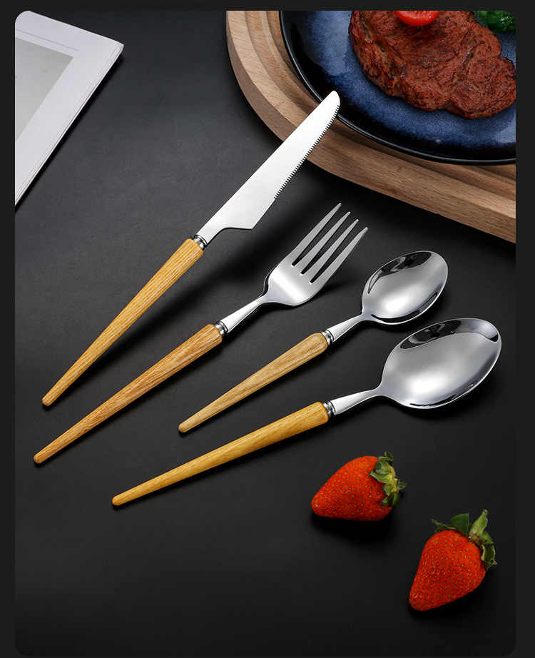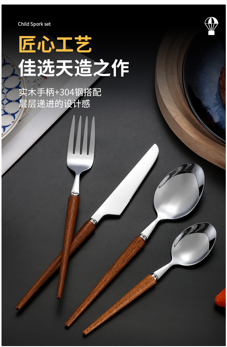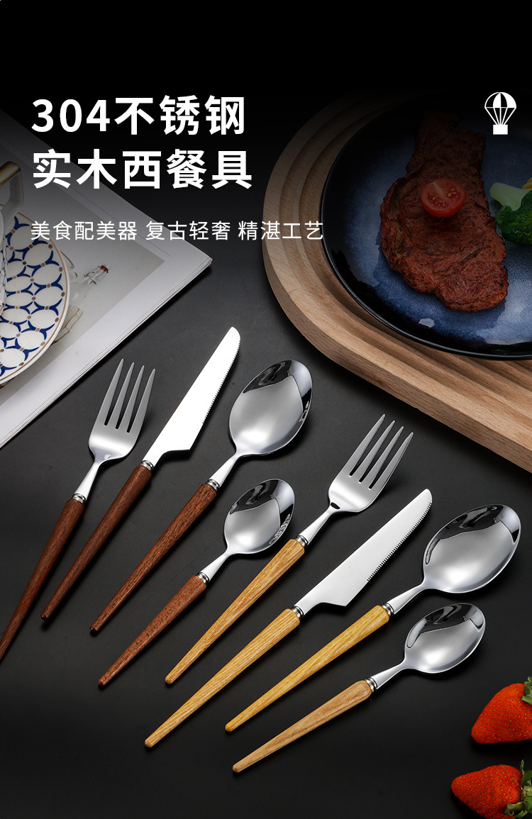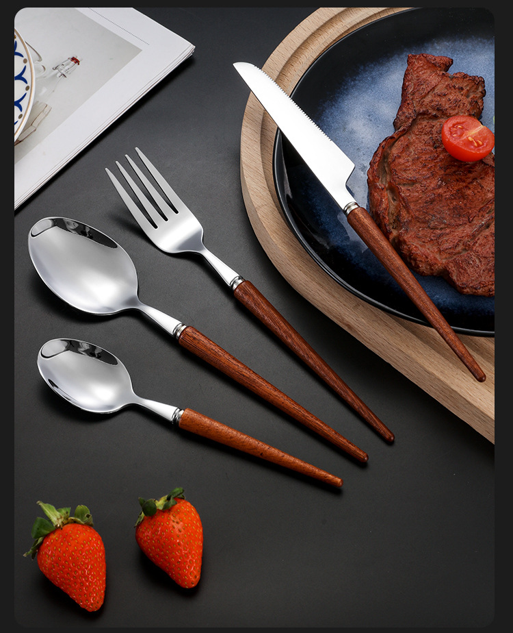 Cola puntiaguda 304 mango de madera de estilo japonés de la vendimia vajilla occidental de acero inoxidable Rosewood Steak cuchillo tenedor cuchara de postre cuchara traje