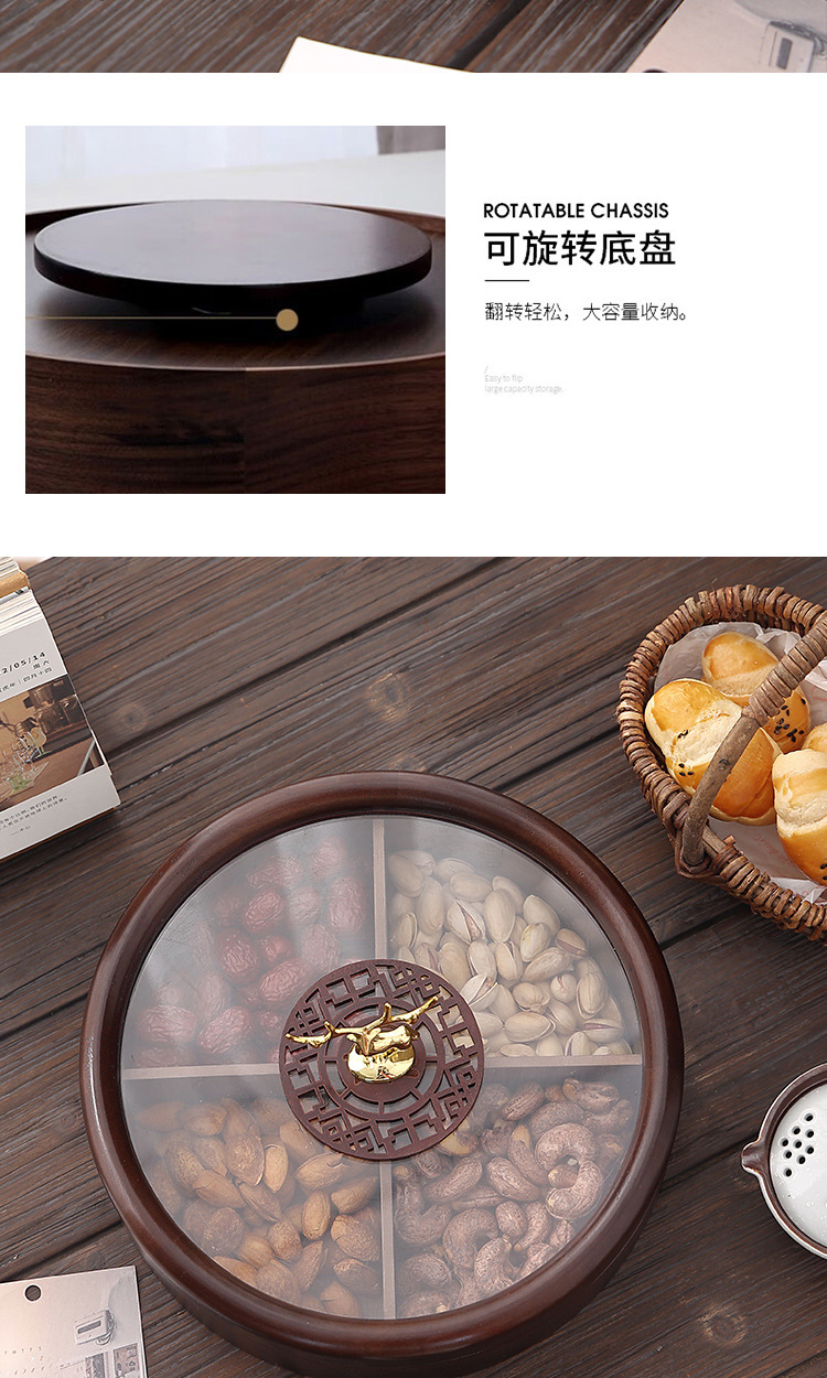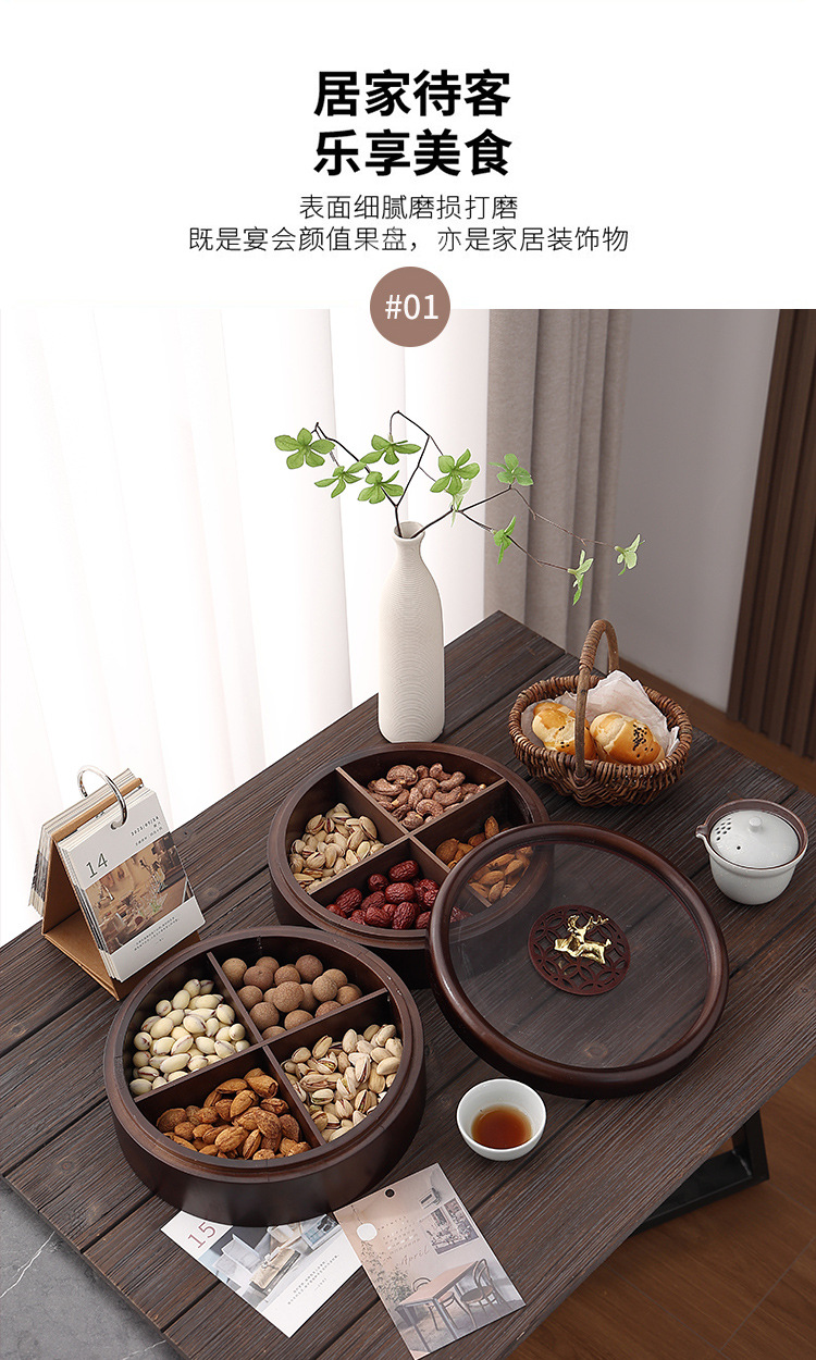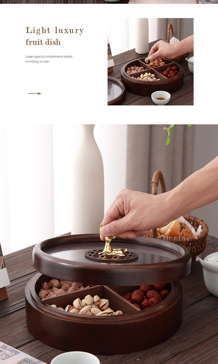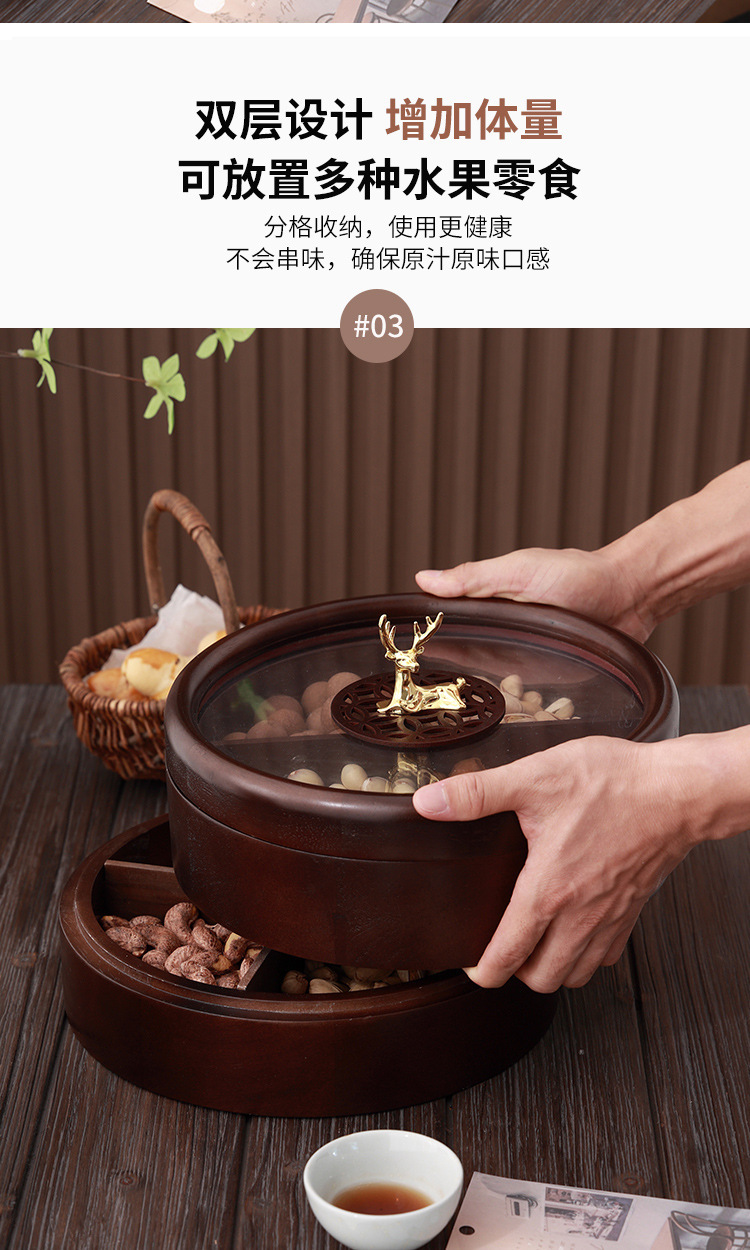 Caja de madera de doble capa de madera nueva caja de dulces chinos caja de nueces casera sala de estar semillas de melón bandeja de almacenamiento de bocadillos