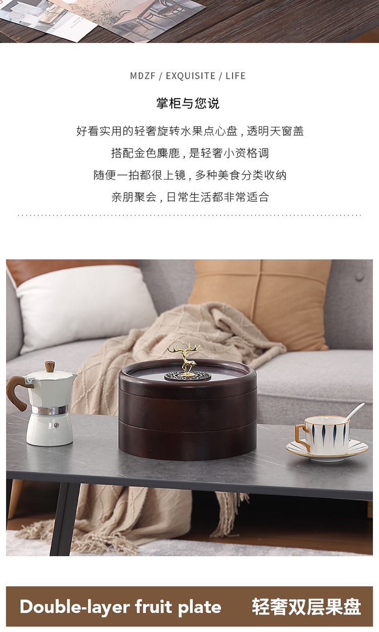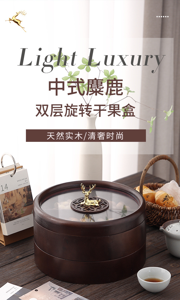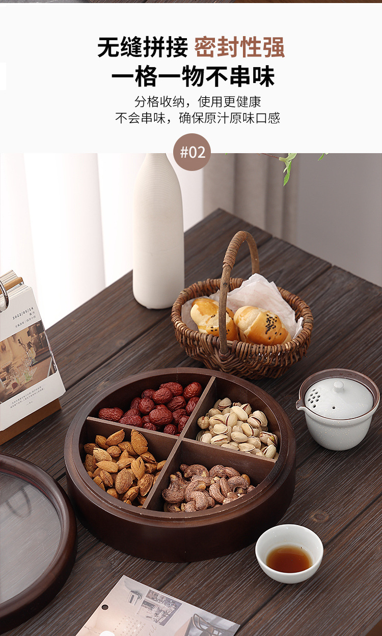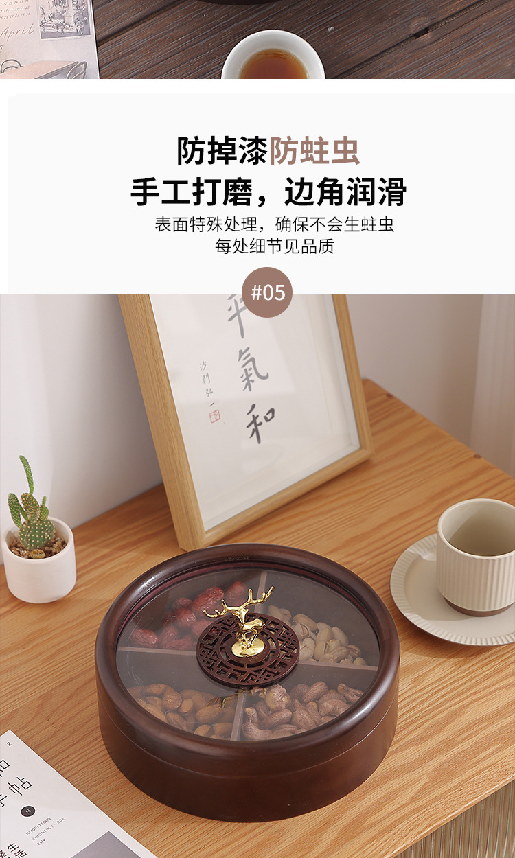 Caja de madera de doble capa de madera nueva caja de dulces chinos caja de nueces casera sala de estar semillas de melón bandeja de almacenamiento de bocadillos