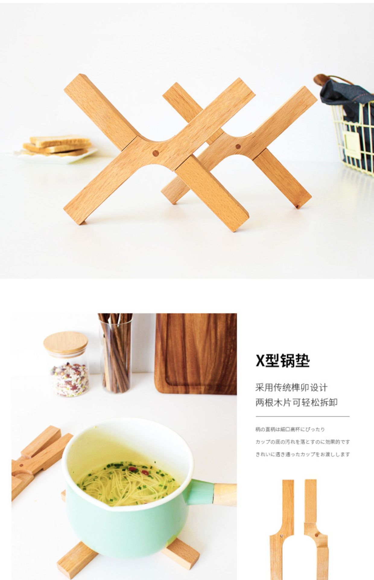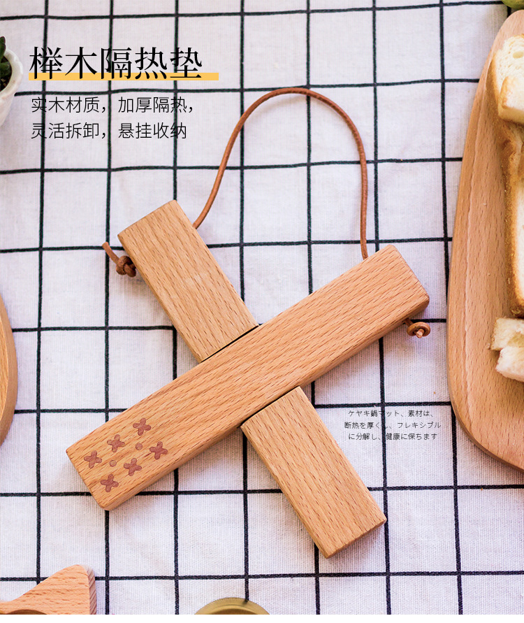 De estilo japonés de madera maciza mesa de comedor estera de aislamiento creativo de haya Cruz estera plegable X-tipo anti-scald herramientas casa buenas cosas