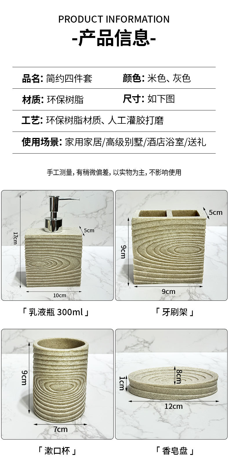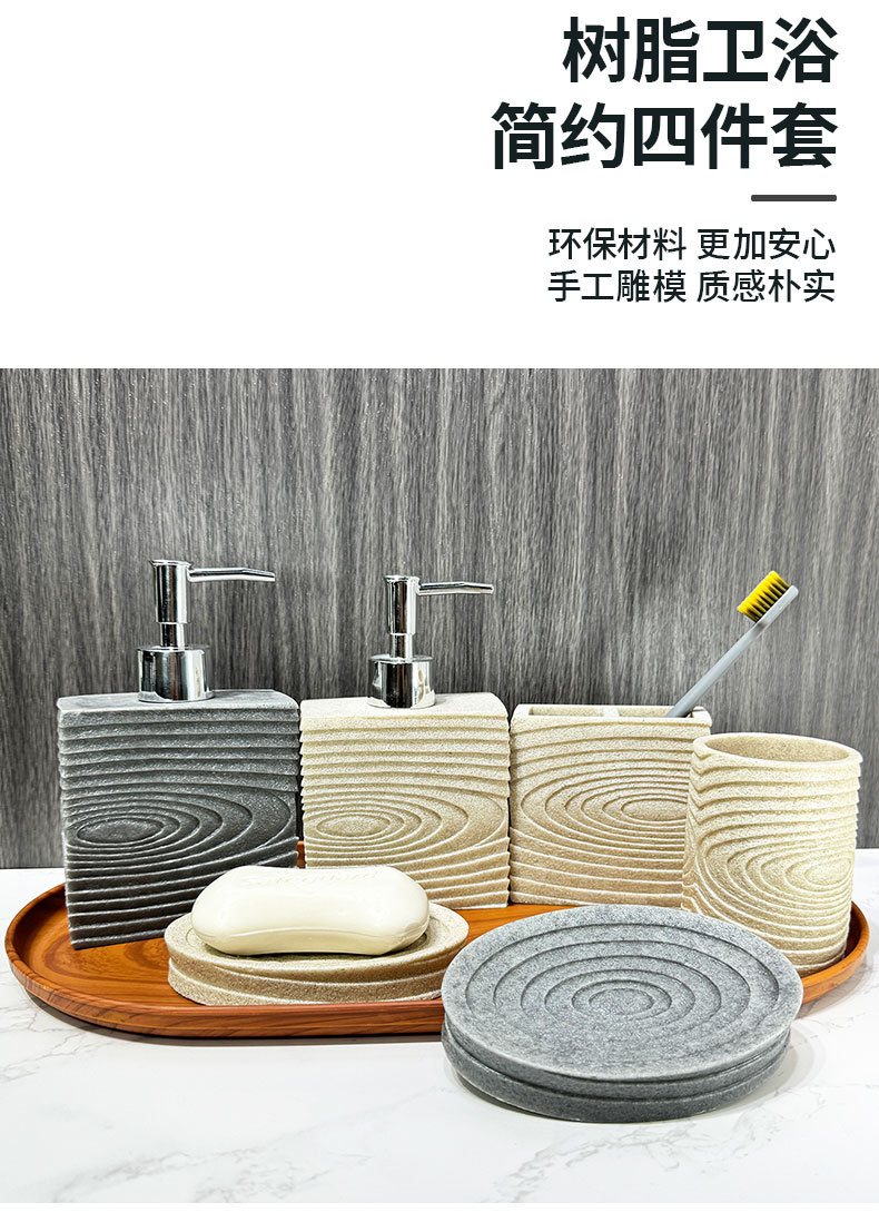 Baño de hotel de cuatro piezas de baño de resina de piedra arenisca conjunto de baño doméstico decoración de baño boca de taza de cocina