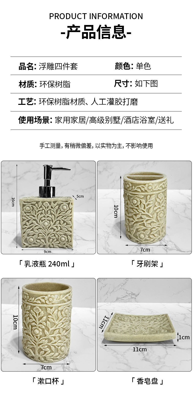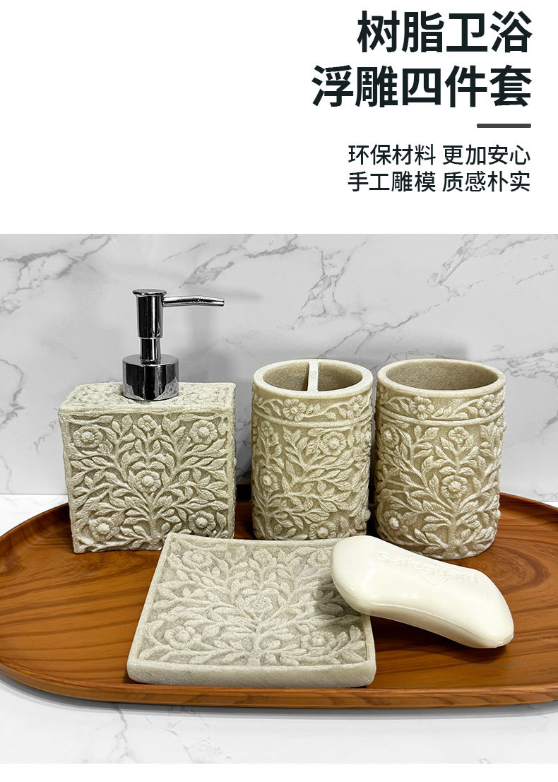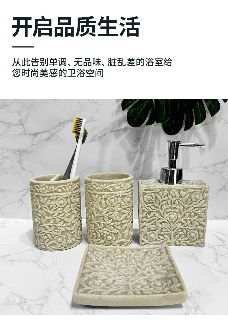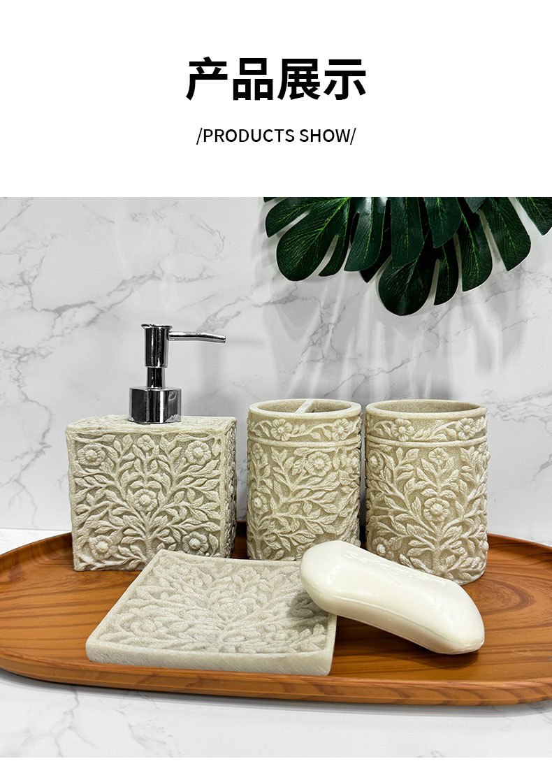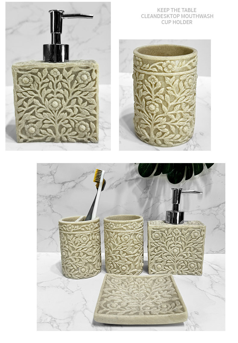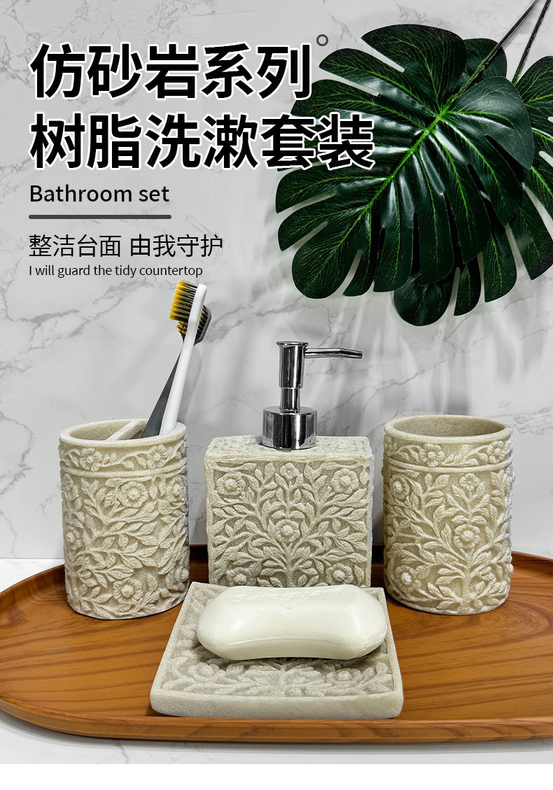 Baño del hotel de cuatro piezas de baño de resina de arena y grava set de baño de enjuague bucal botella de desinfectante de manos para el hogar