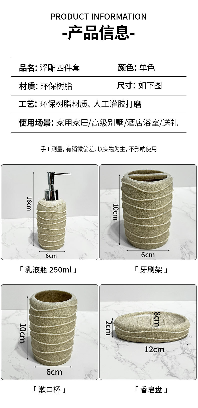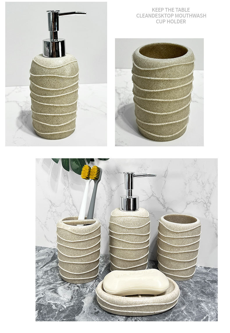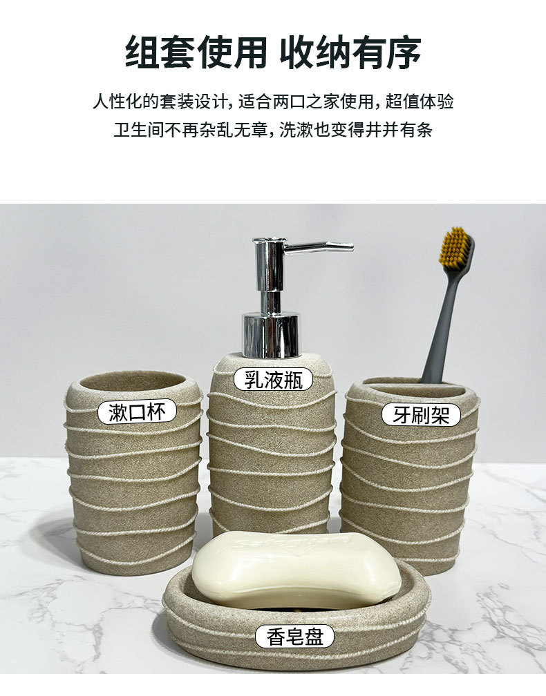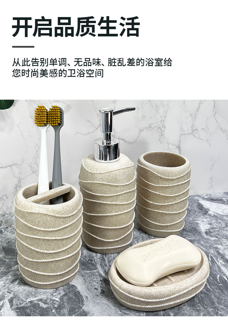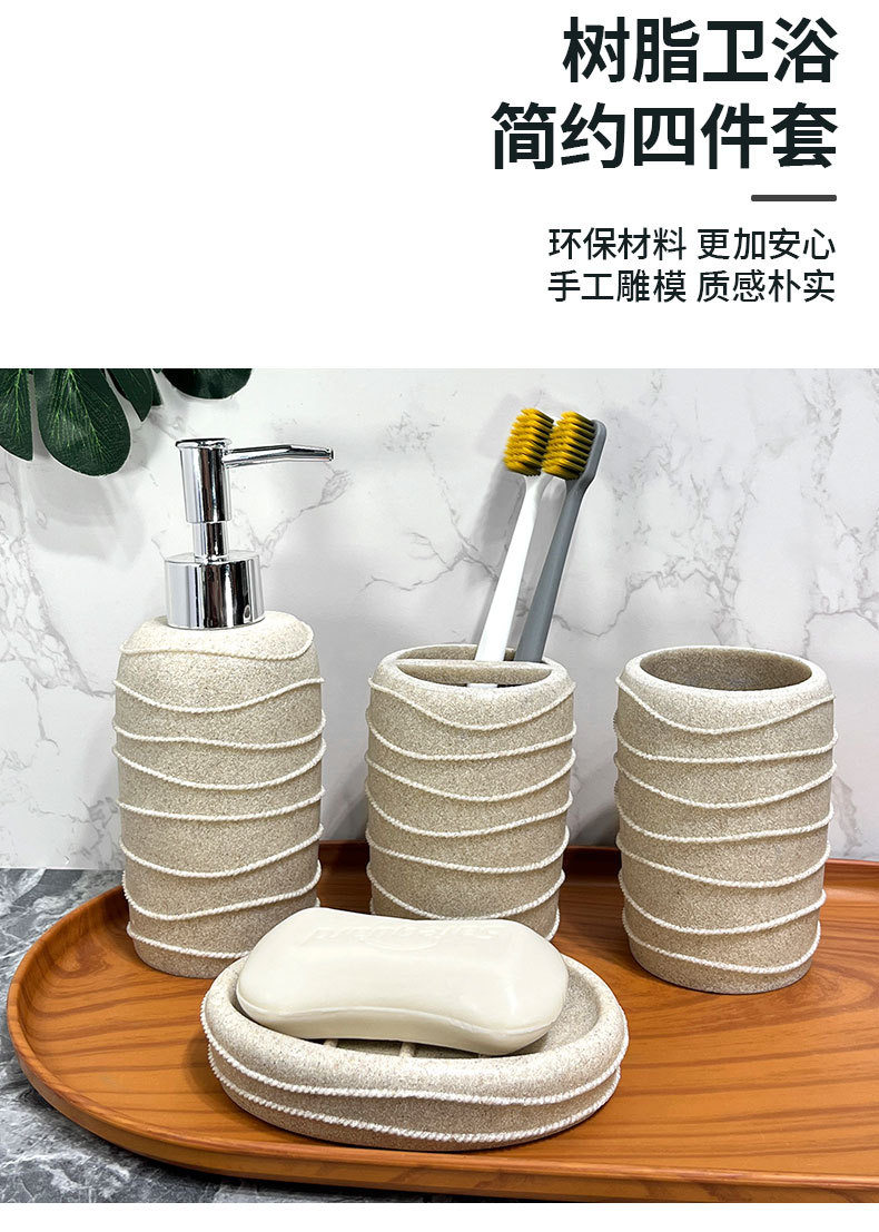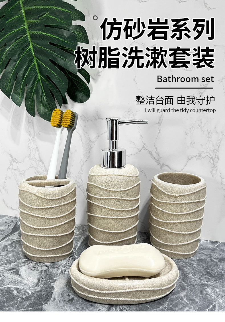 Baño nórdico conjunto de lavado doméstico de resina de piedra arenisca cuatro piezas conjunto de piedra arenisca imitación de hotel decoración de baño taza