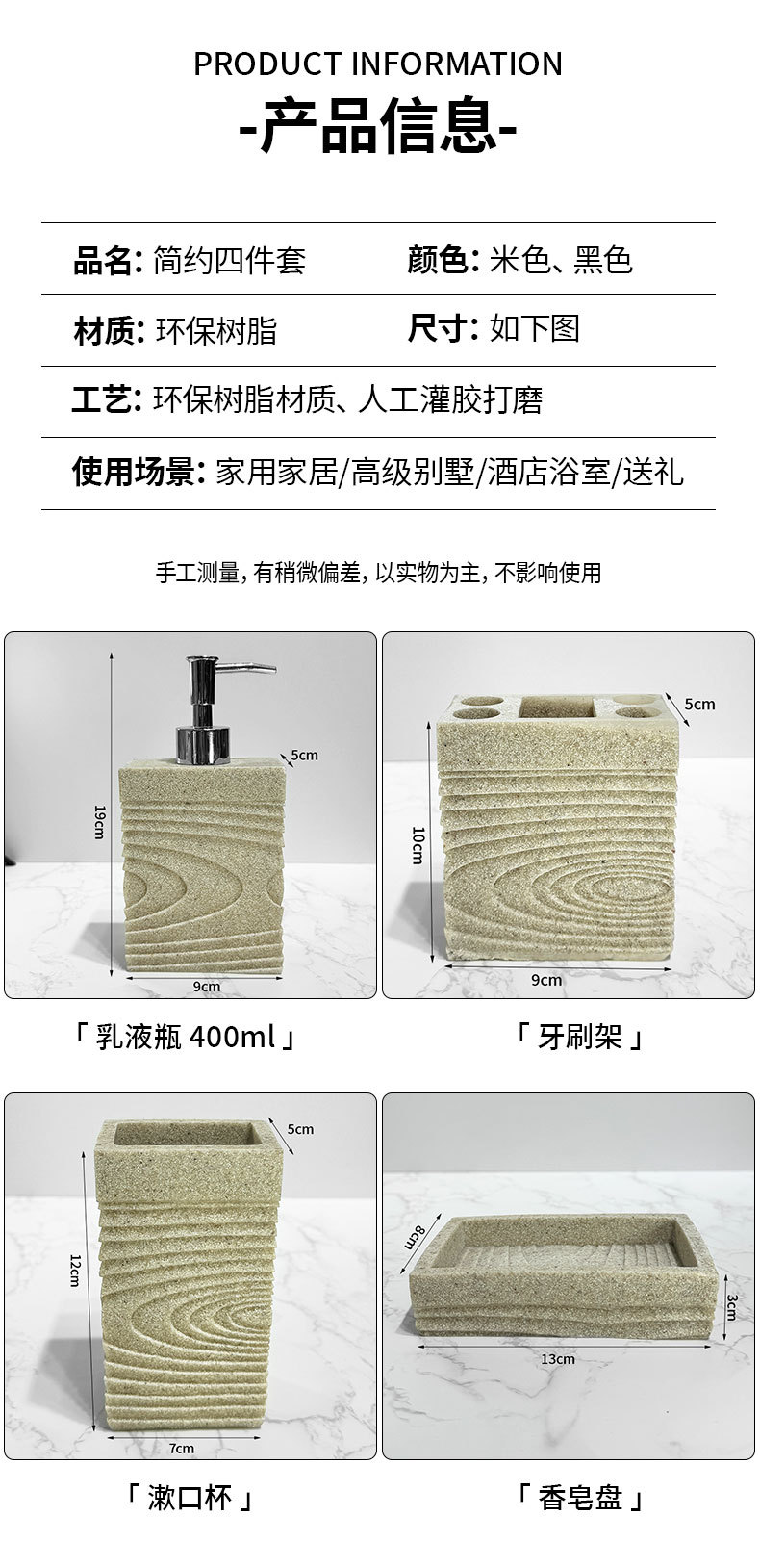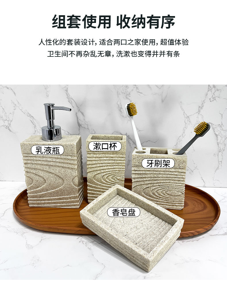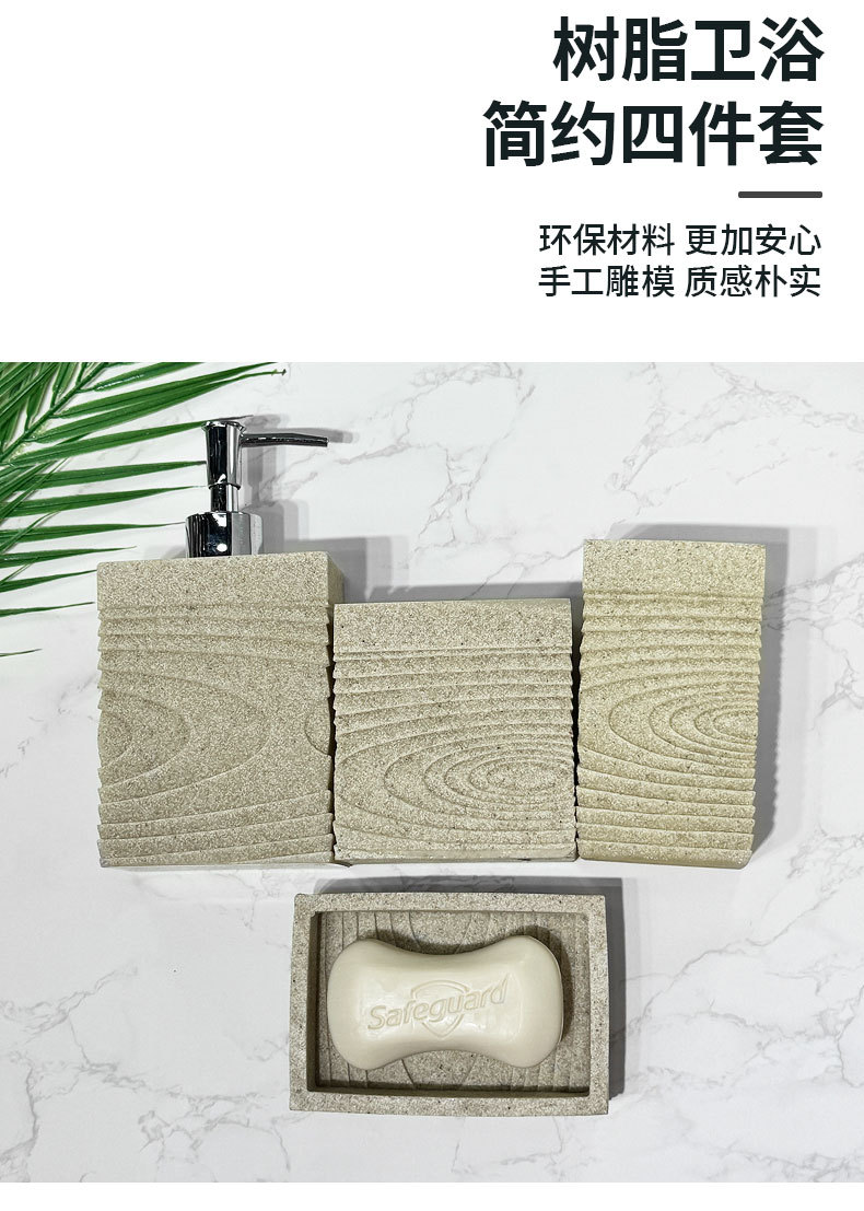 Kit de baño de resina de arenisca imitación baño de hotel de cuatro piezas de baño modelo de decoración de sala de baño de jabón transfronterizo