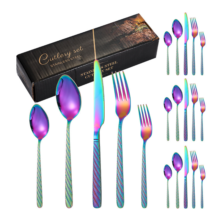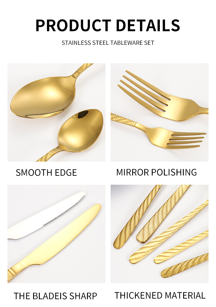 Vajilla de acero inoxidable de Amazon, bistec, cuchillo, tenedor, cuchara, cuerda de cáñamo, juego de 20/24/30 piezas, juego de cuchillo y tenedor de comida occidental de hotel