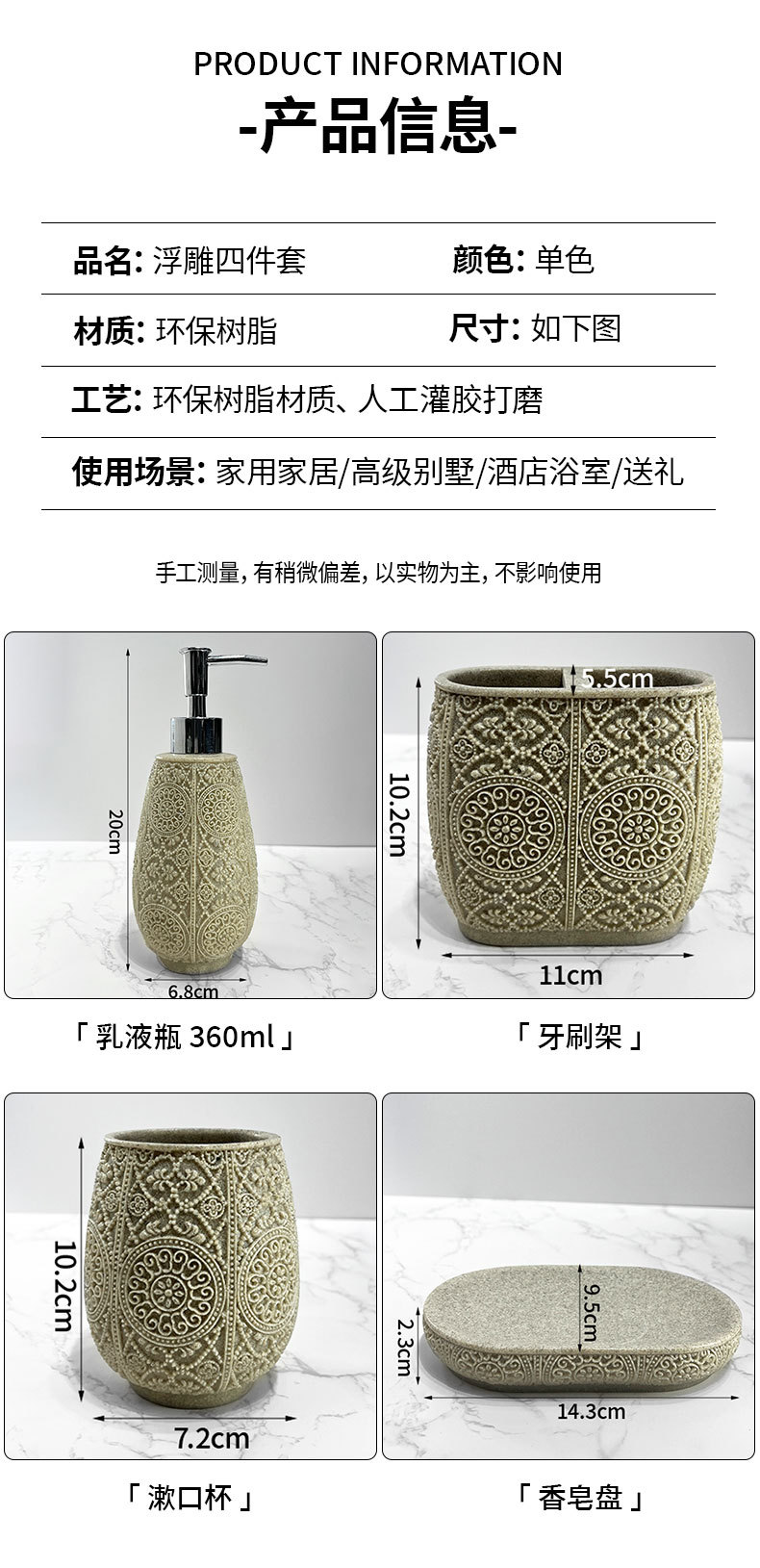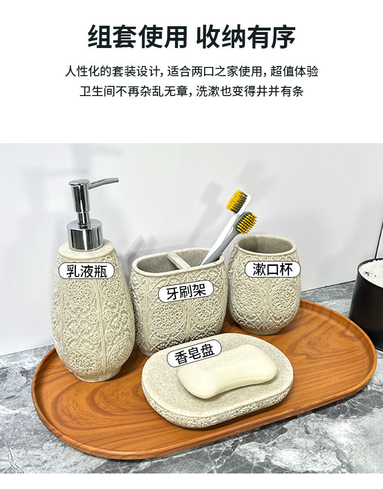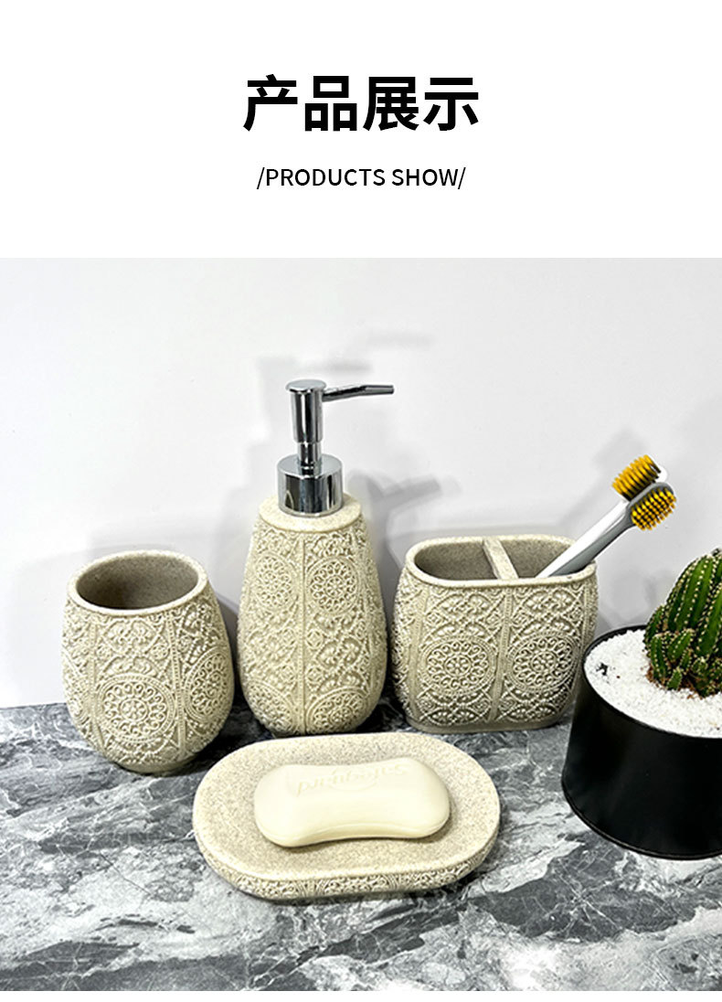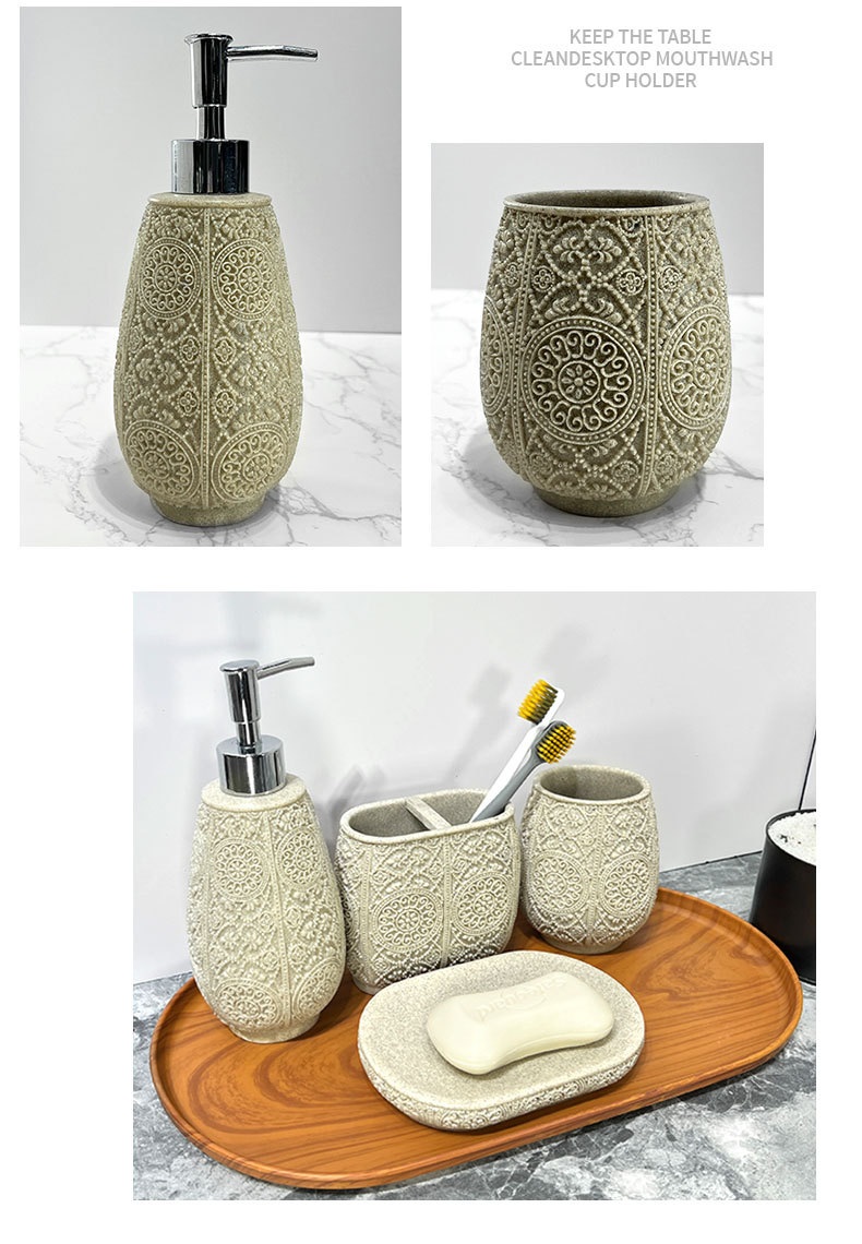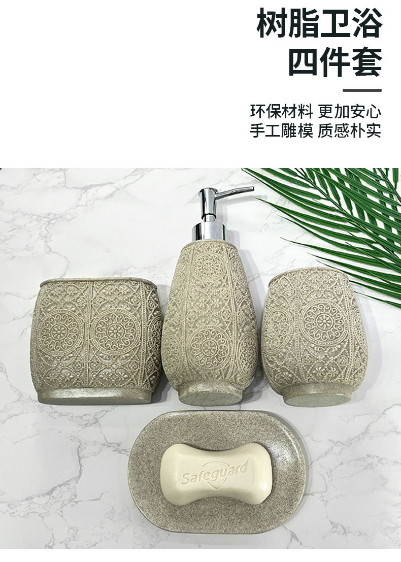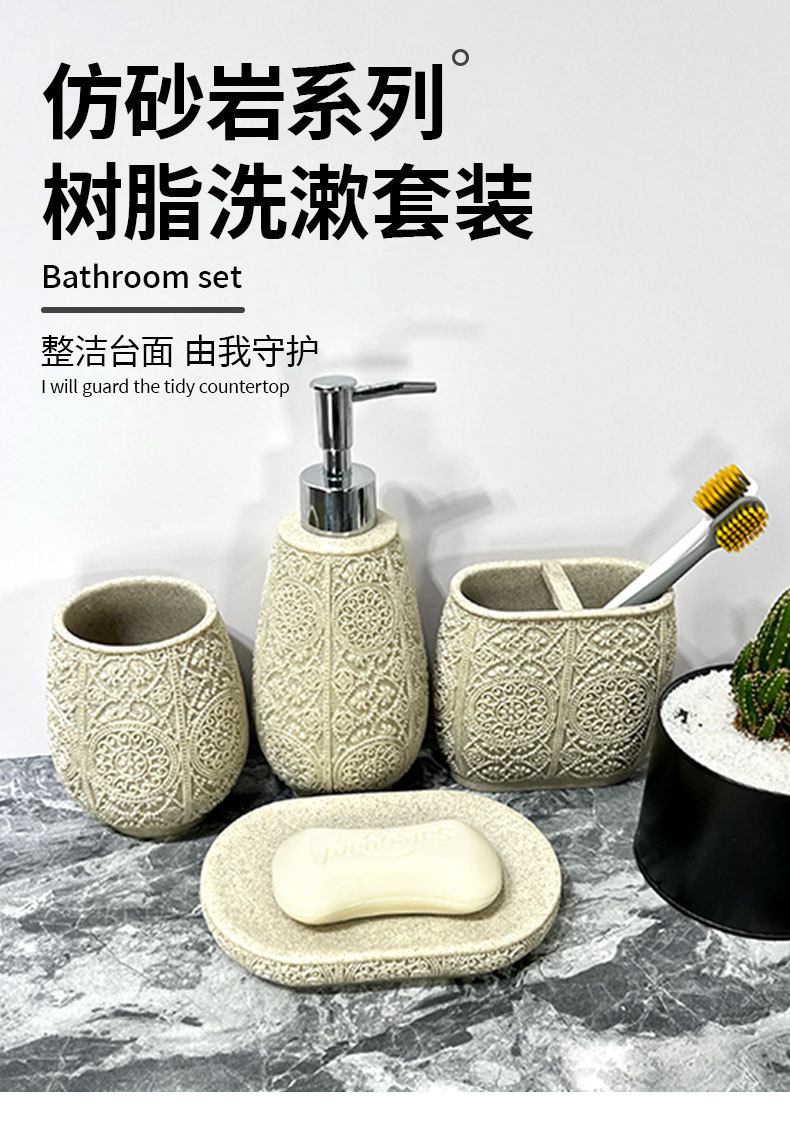 Kit de baño de arena de resina simple baño sanitario de cuatro piezas conjunto de arena imitación de batería de desinfectante de manos