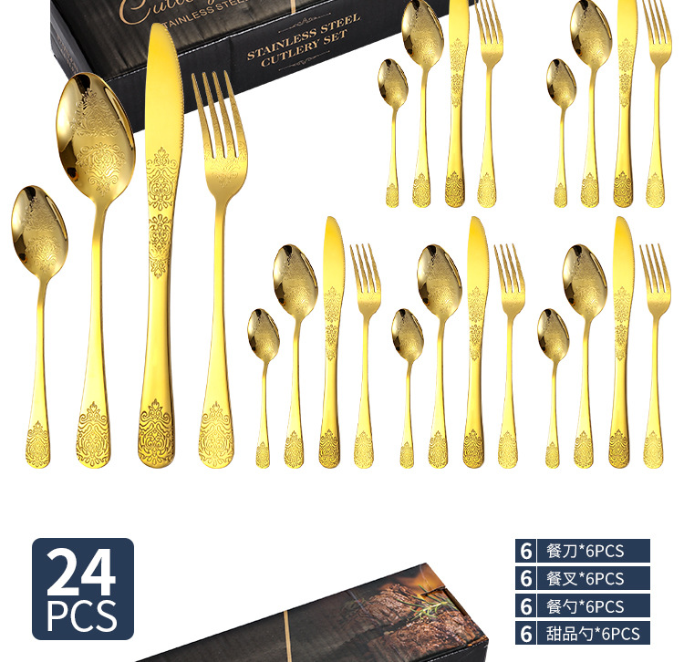 Amazon cubiertos de acero inoxidable cuchillo y tenedor cuchara set 24 piezas restaurante hotel cuchillo y tenedor cuchillo y tenedor cuchillo y tenedor de talla de comida occidental