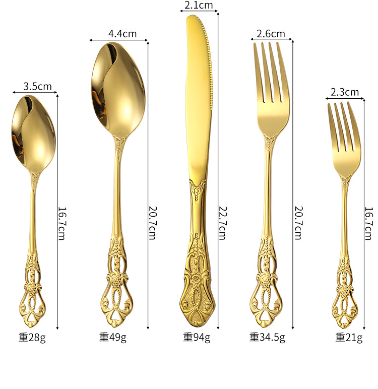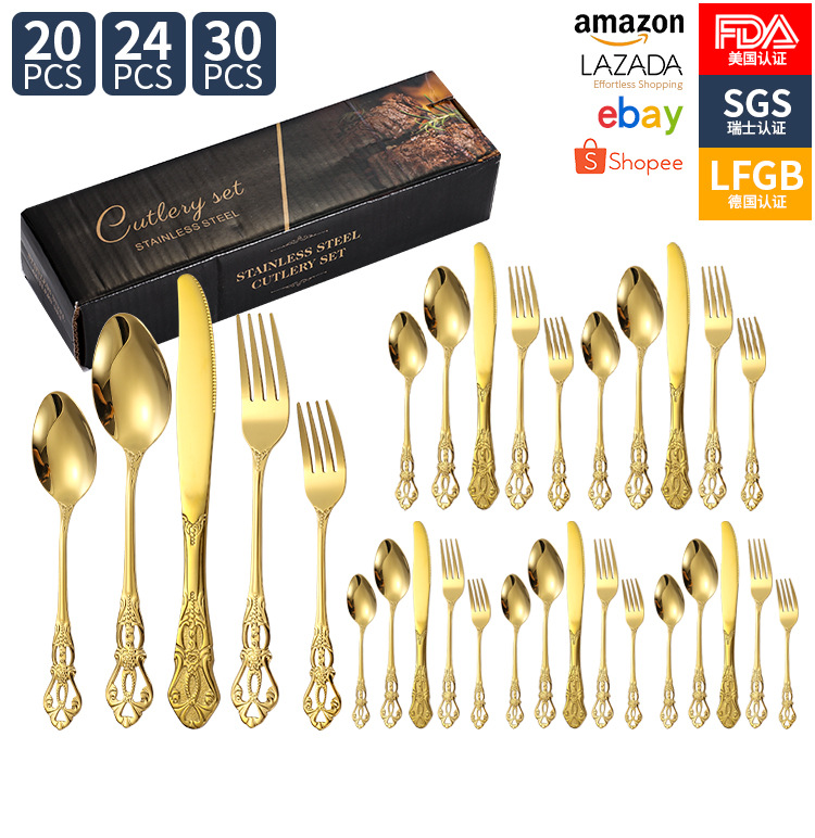 Amazon corte imperial cubiertos de acero inoxidable cuchillo y tenedor cucharas 20 / 24 / 30 piezas conjunto retro relieve cuchillo y tenedor de filete occidental