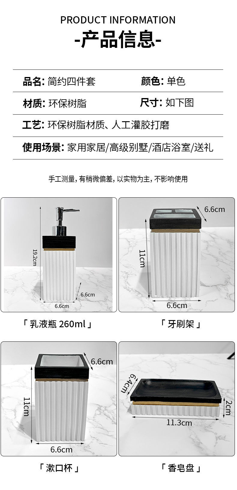 Resina pintada simple baño baño baño baño conjunto de lavado de hotel cuatro piezas set de adornos cepillo de dientes taza de enjuague