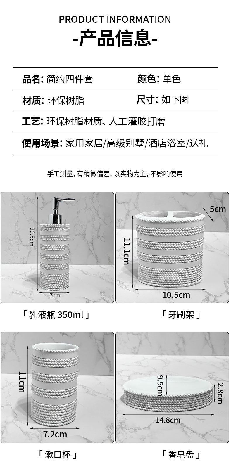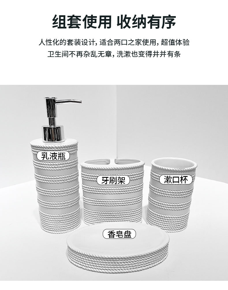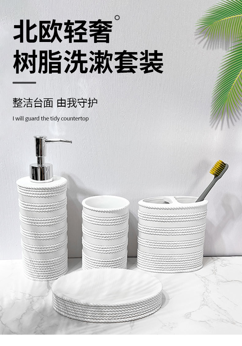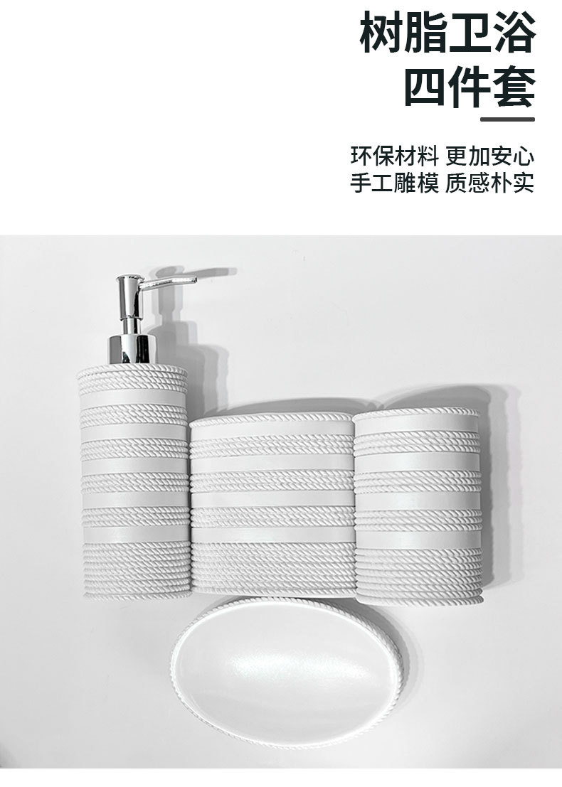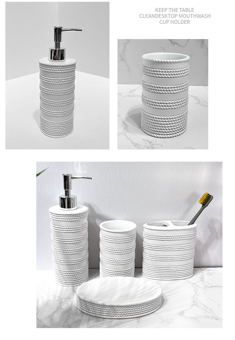 Set de baño de resina simple, artículos de baño, hotel de cuatro piezas, botella de desinfectante de manos, taza, jabón, decoración