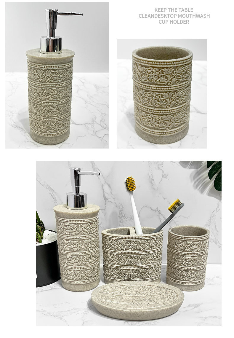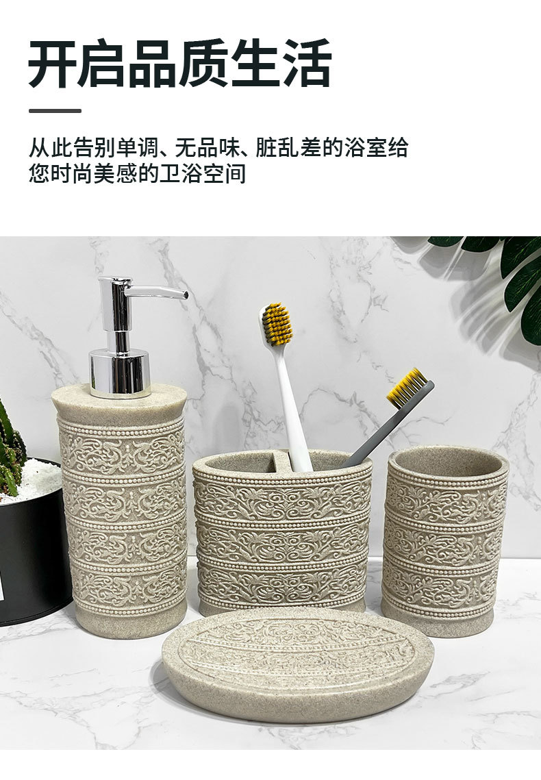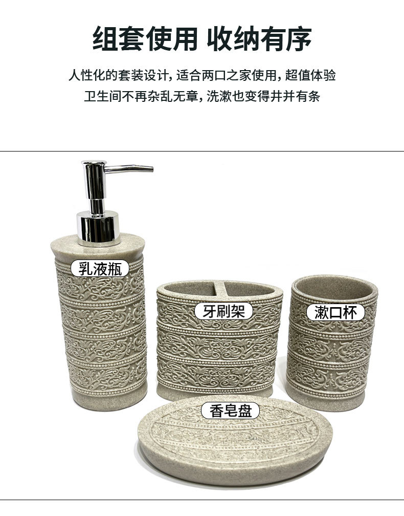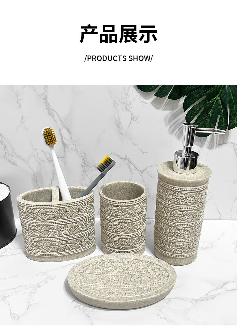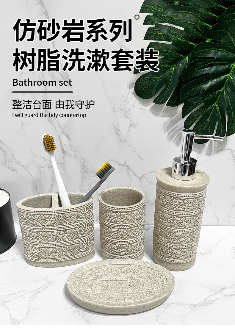 Diseño de piedra arenisca de imitación, baño de arena y grava de resina de cuatro piezas, juego de lavado de baño simple, modelo de hotel, suministros de habitación