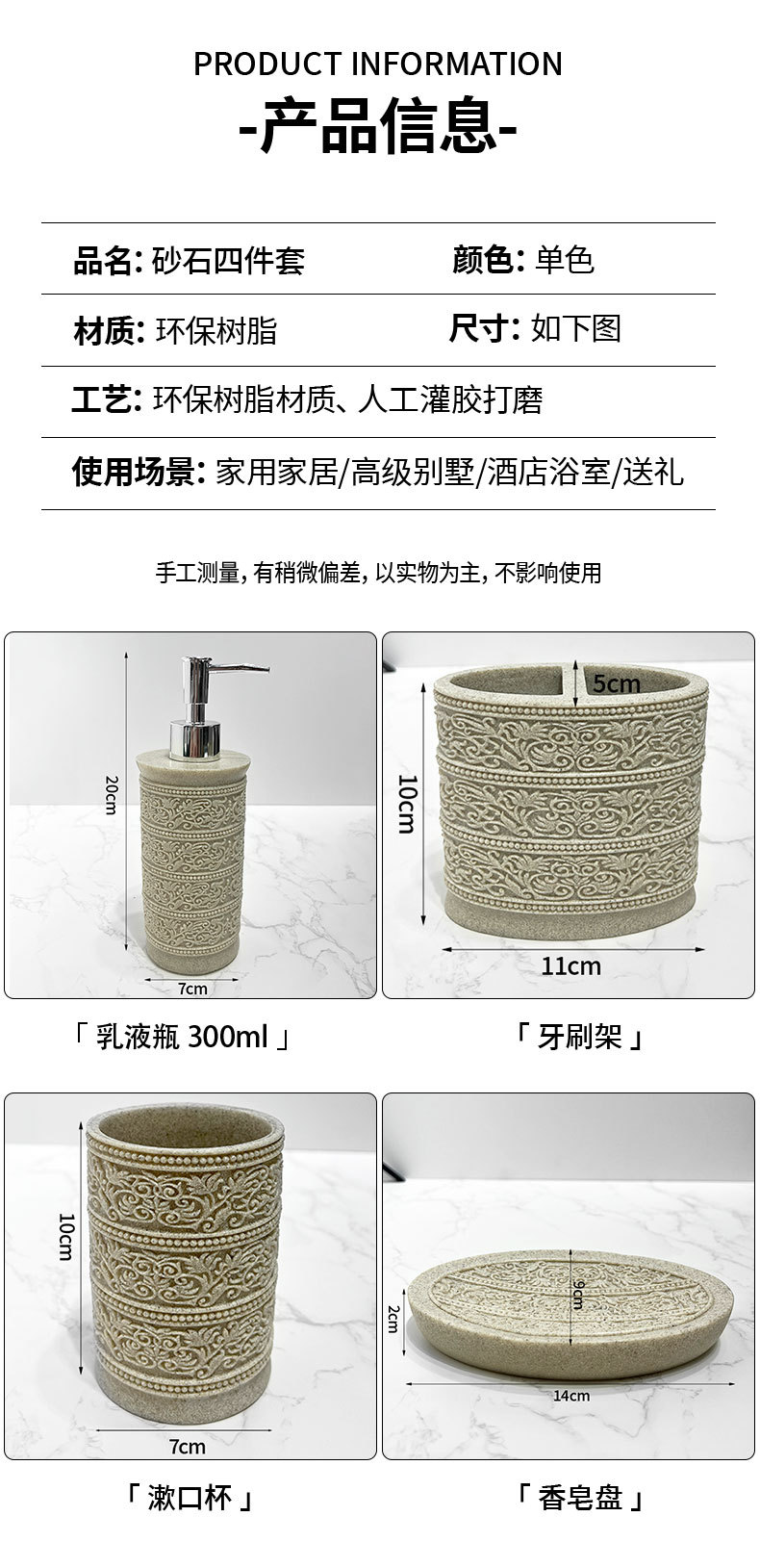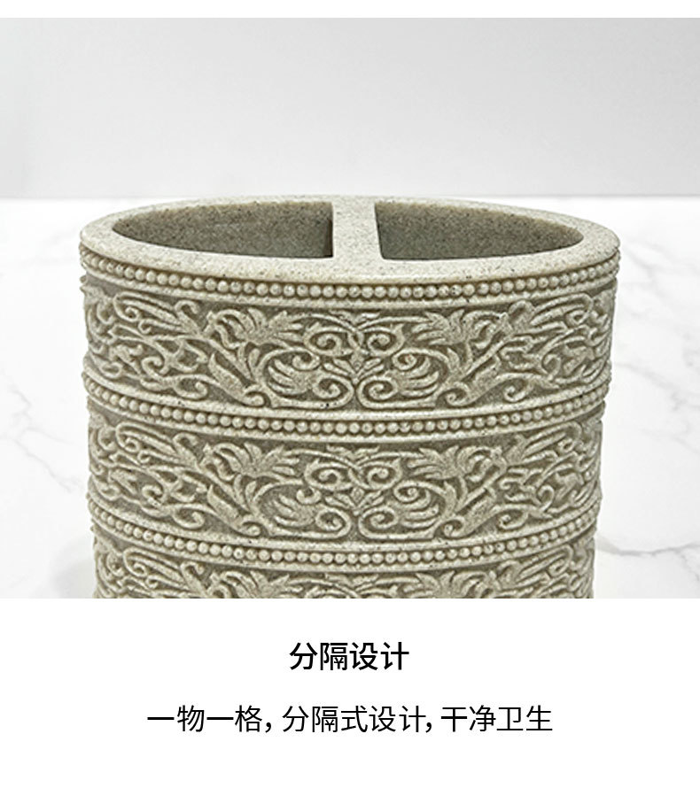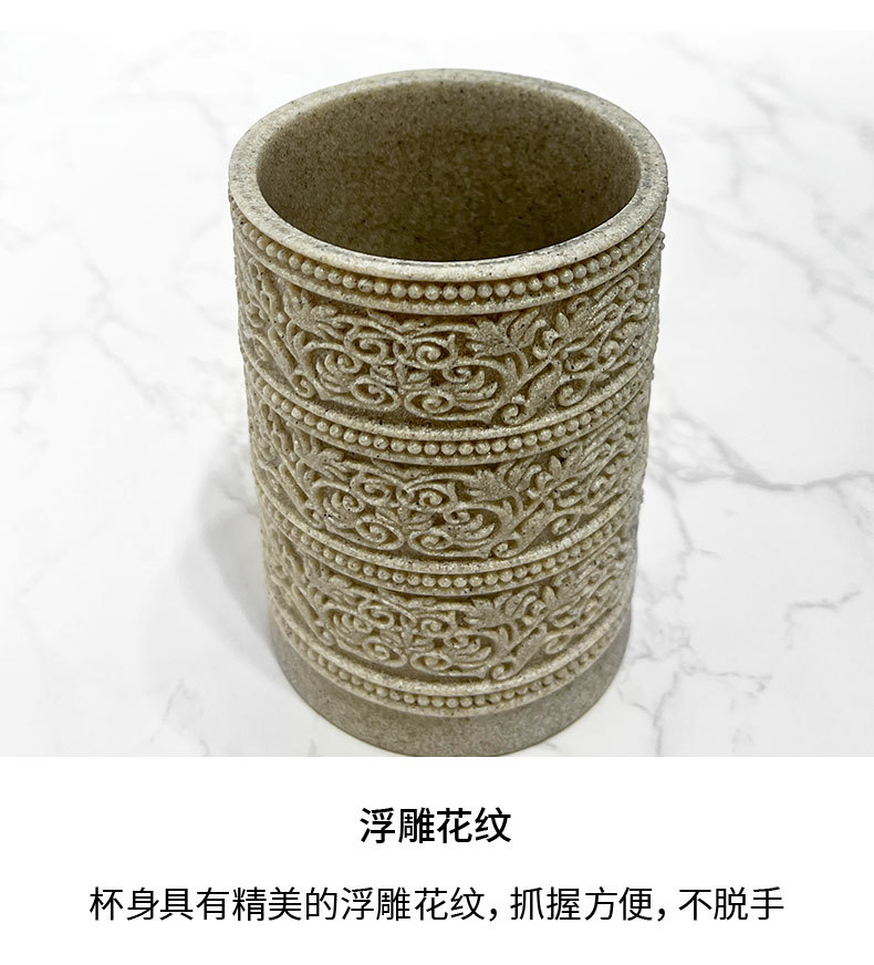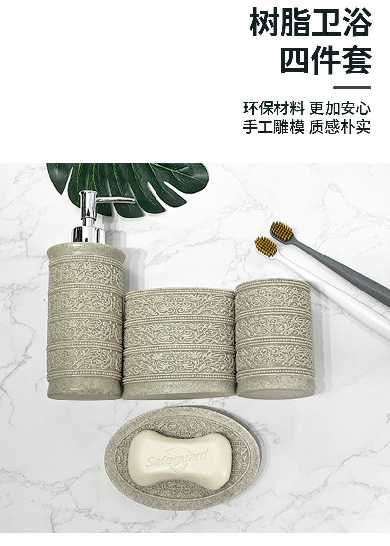 Diseño de piedra arenisca de imitación, baño de arena y grava de resina de cuatro piezas, juego de lavado de baño simple, modelo de hotel, suministros de habitación
