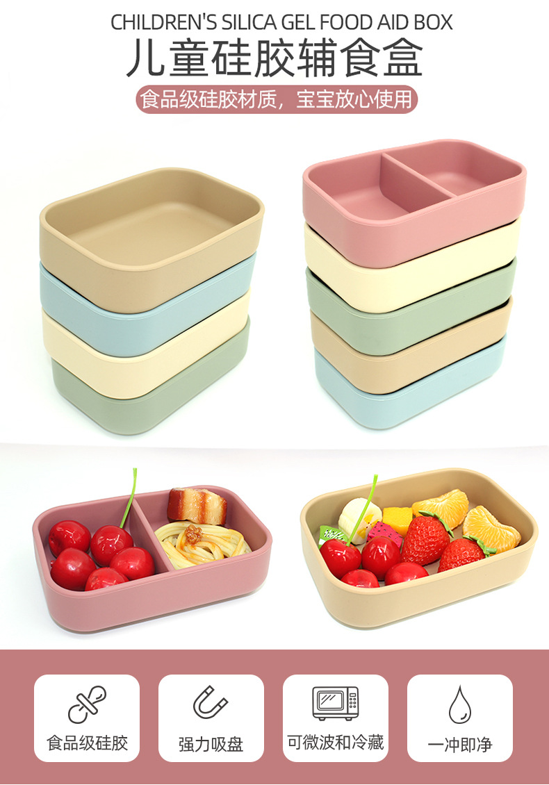 Nuevo silicona mini caja de alimentos suplementarios caja de comidas para niños caja de bocadillos bebé caja de alimentos suplementarios rectangular caja de almuerzo
