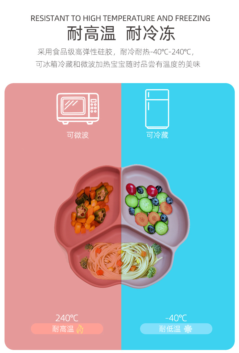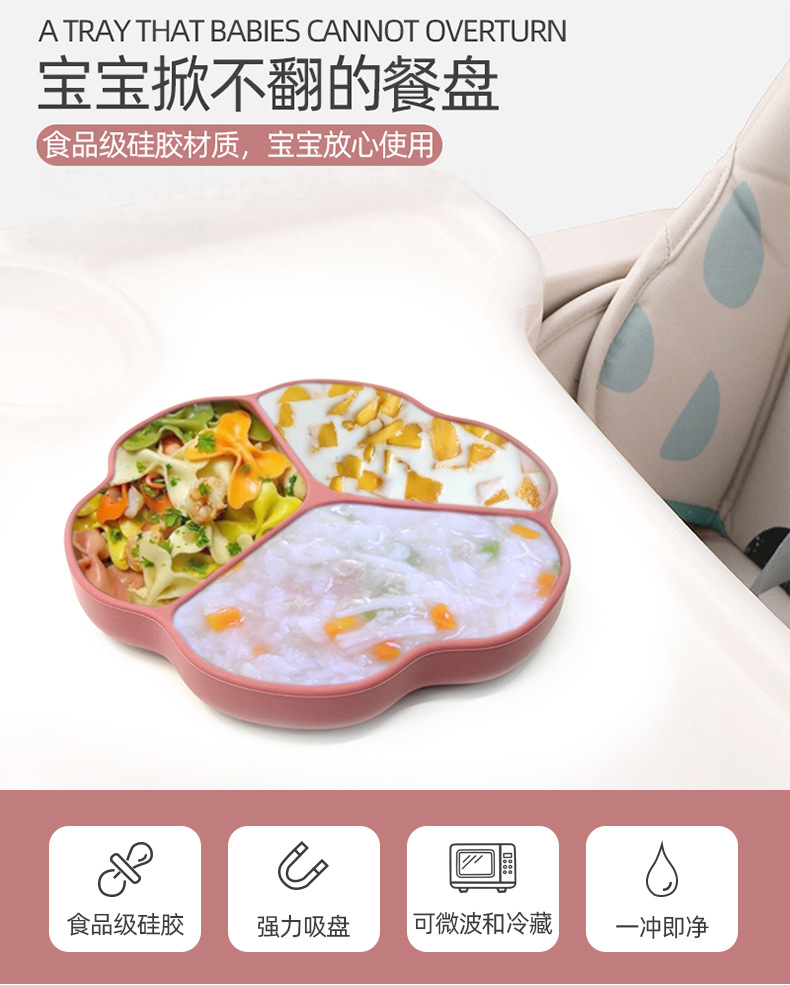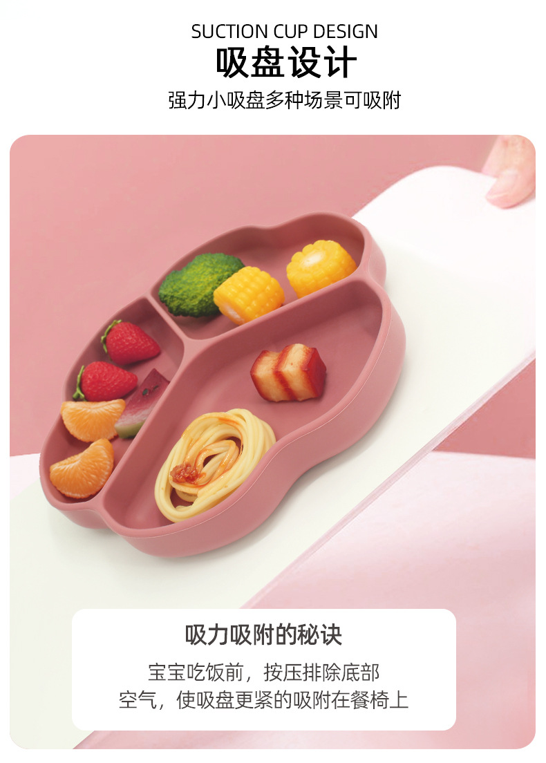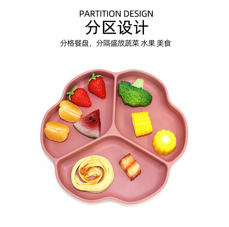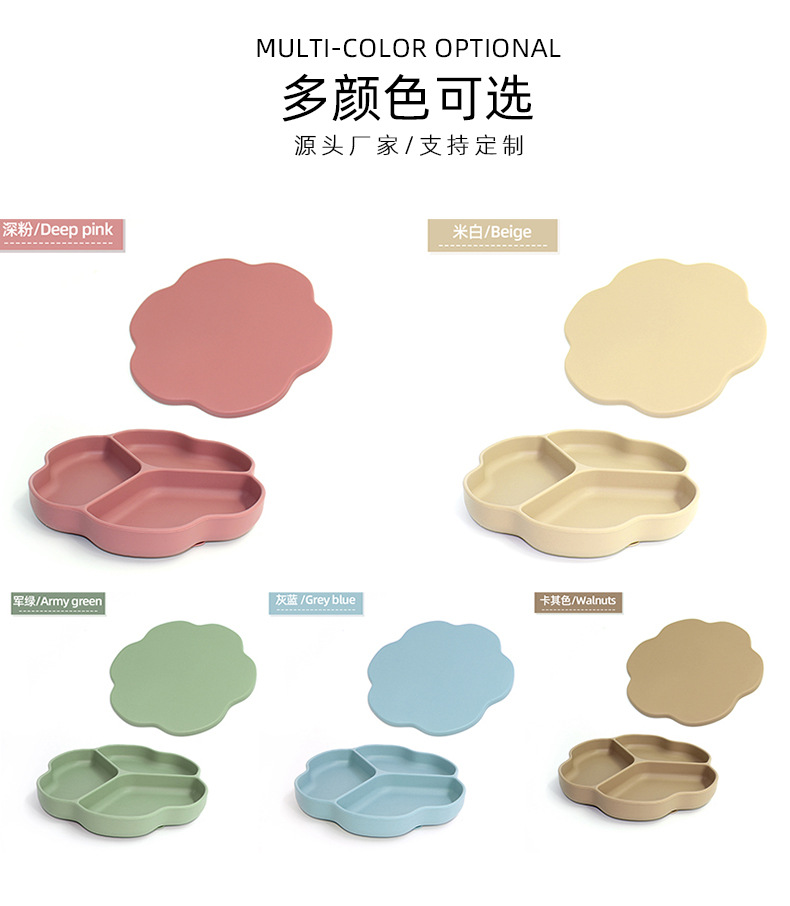 Amazon venta caliente en un plato de silicona para niños herramientas de alimentación para bebés flores de plato al por mayor