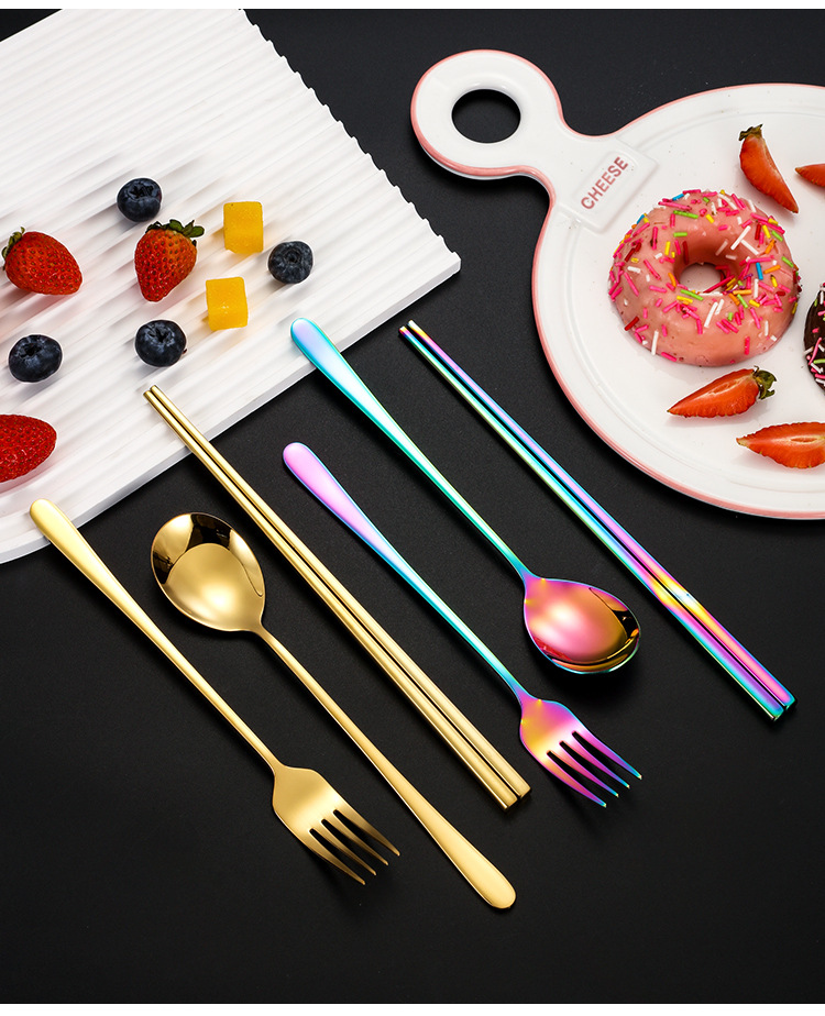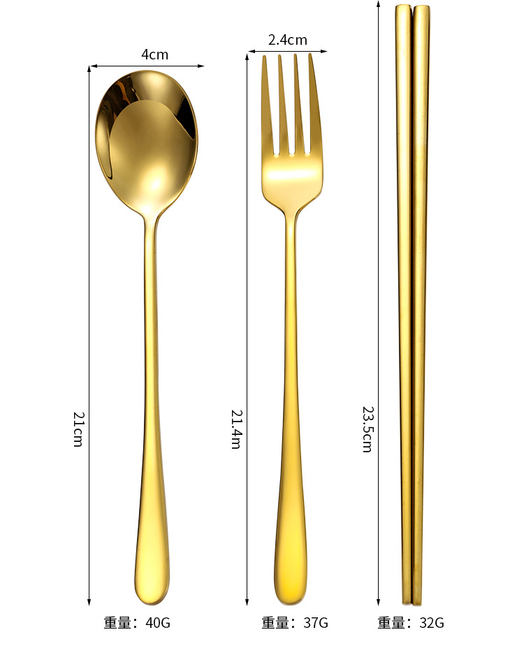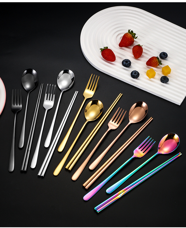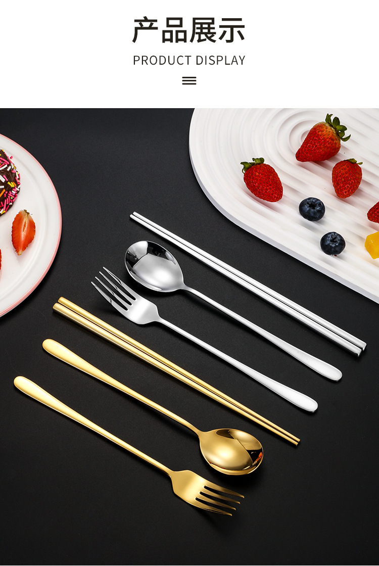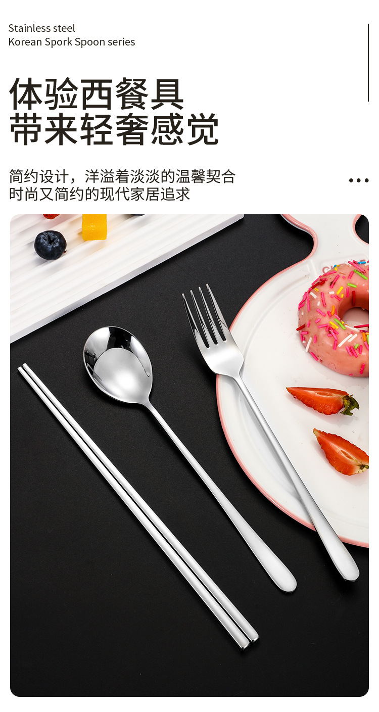 Cross-border 304 Tenedor de acero inoxidable cuchara palillos estilo coreano de alta apariencia traje de regalo para el hogar vajilla portátil logotipo imprimible