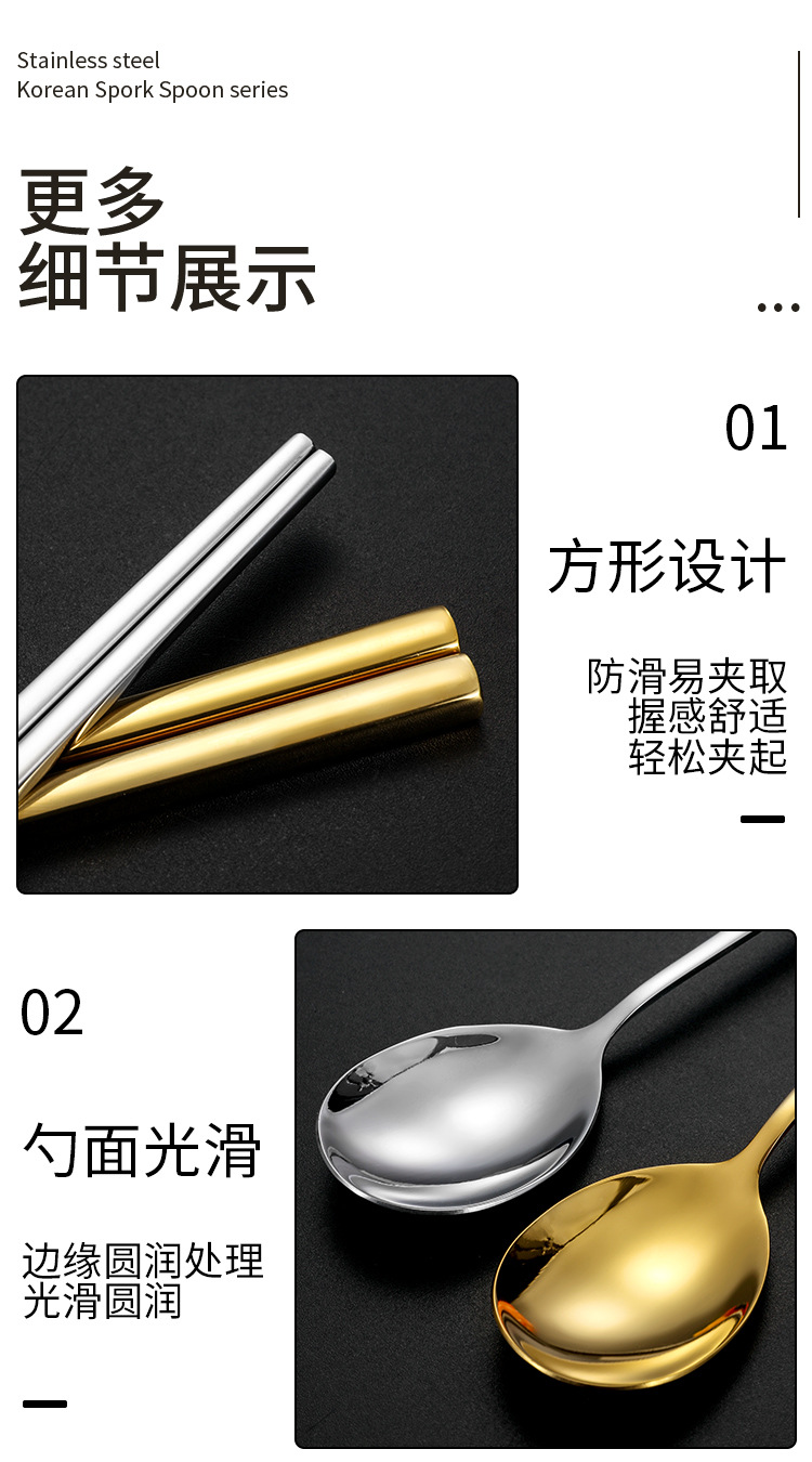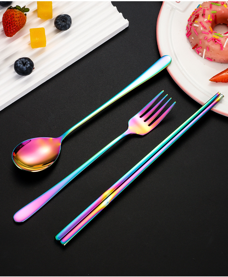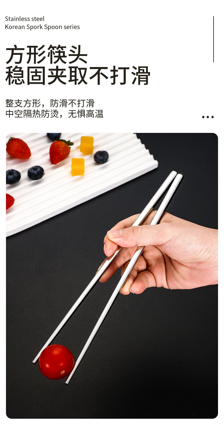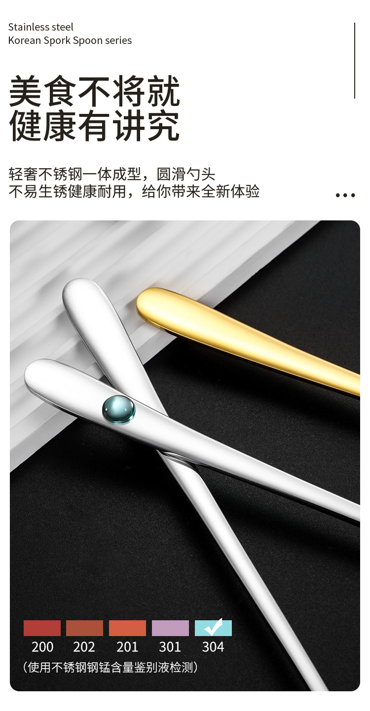 Cross-border 304 Tenedor de acero inoxidable cuchara palillos estilo coreano de alta apariencia traje de regalo para el hogar vajilla portátil logotipo imprimible