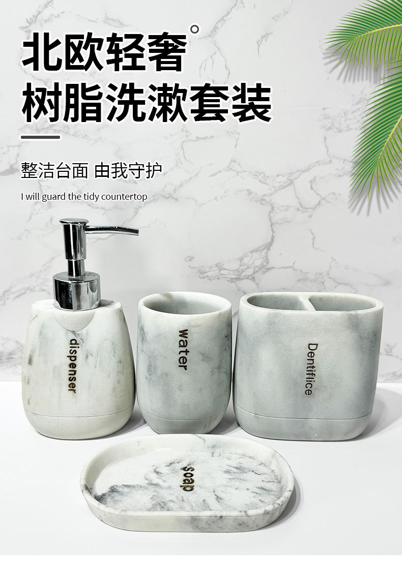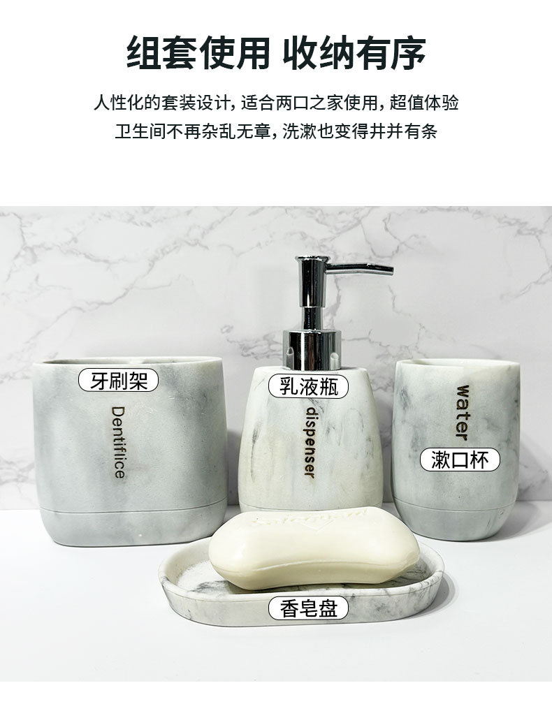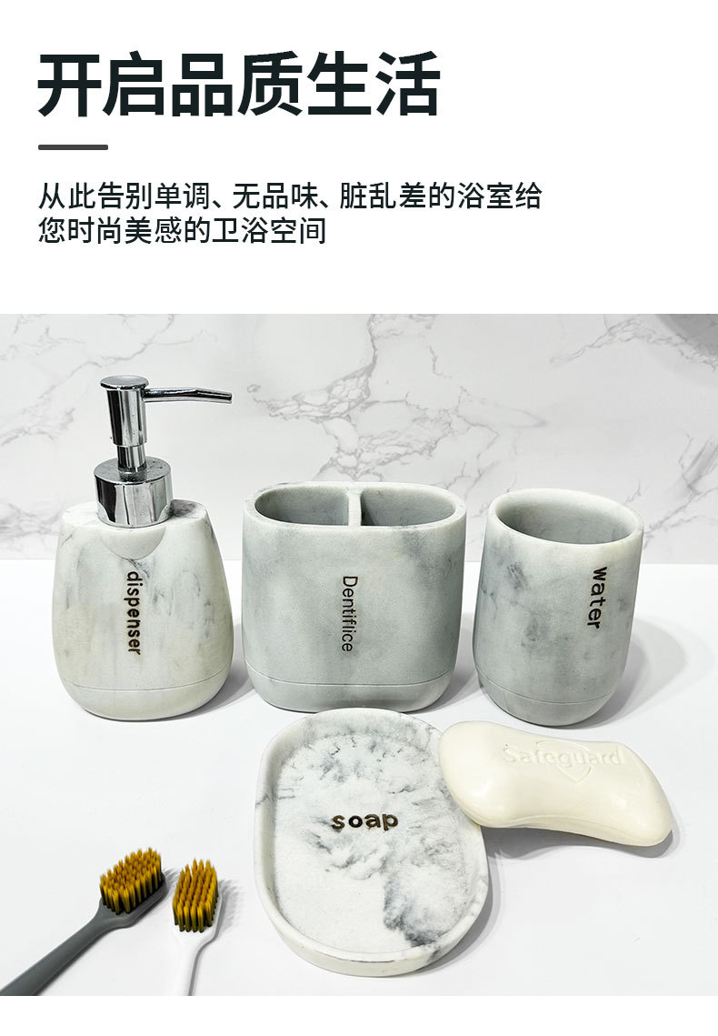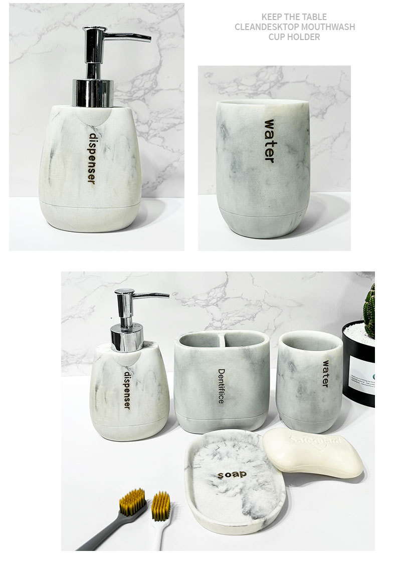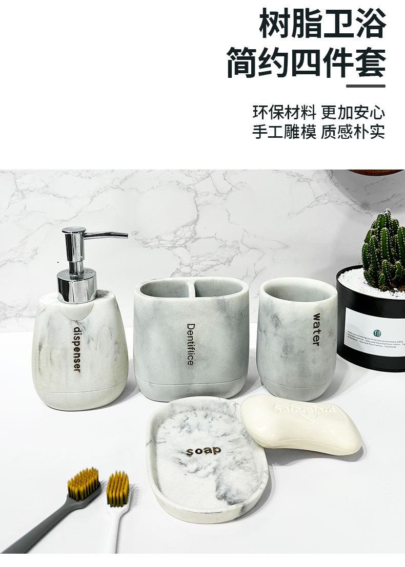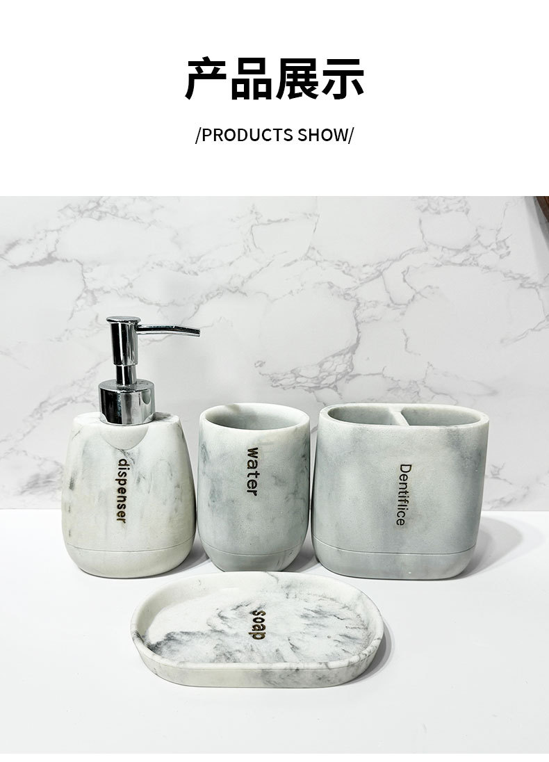 Baño para el hogar moderno Juego de cuatro piezas de resina de mármol Juego de lavado de baño Decoración de baño Botella de loción