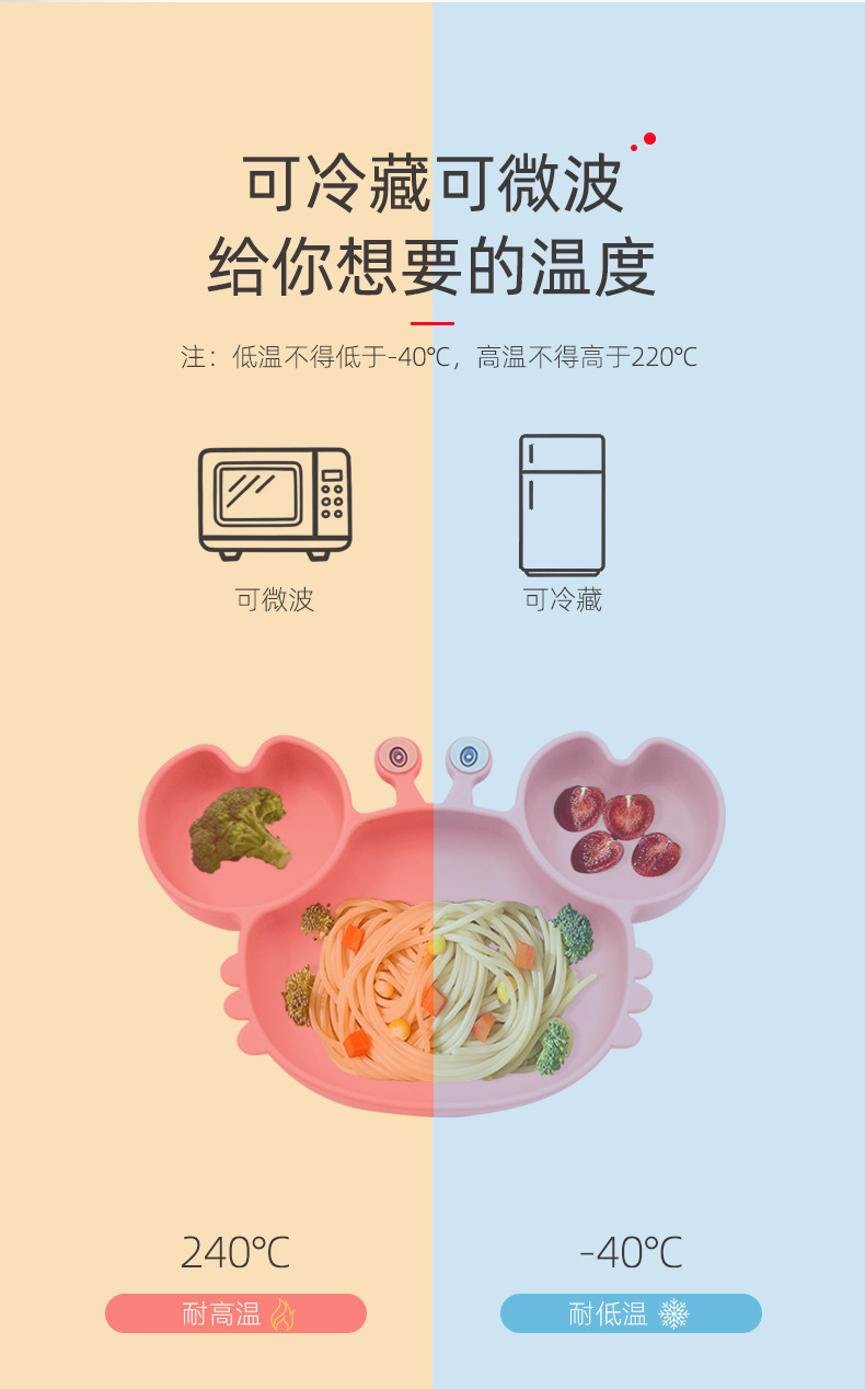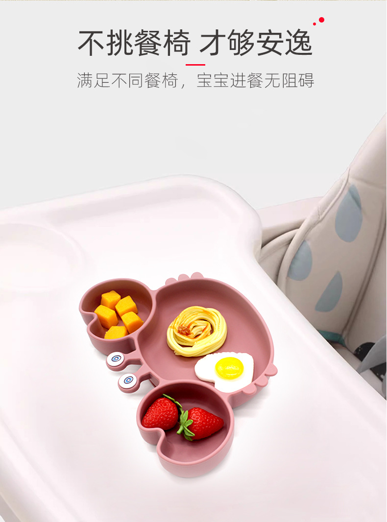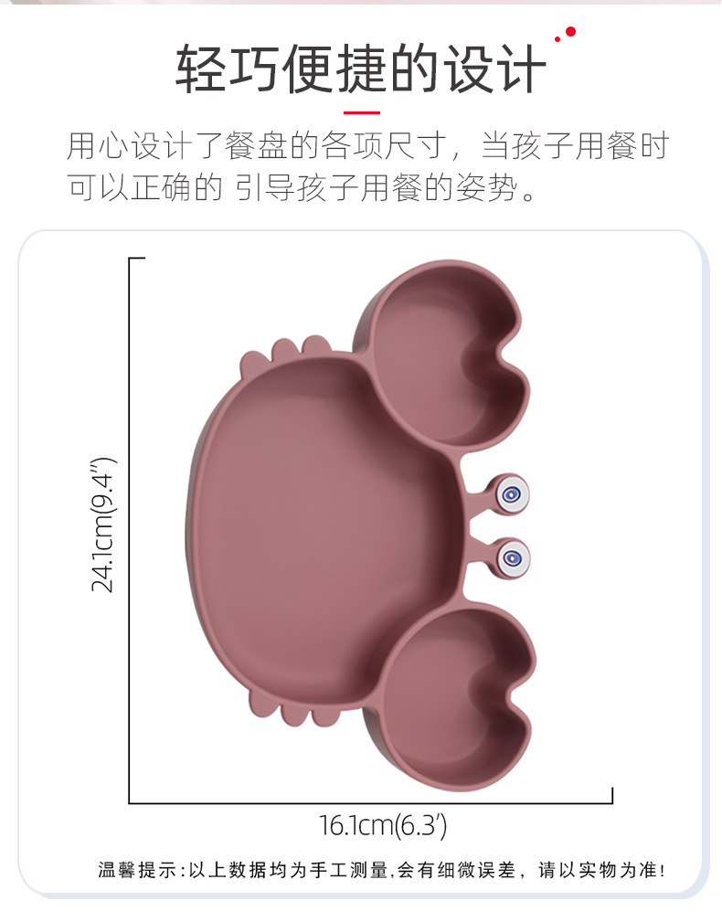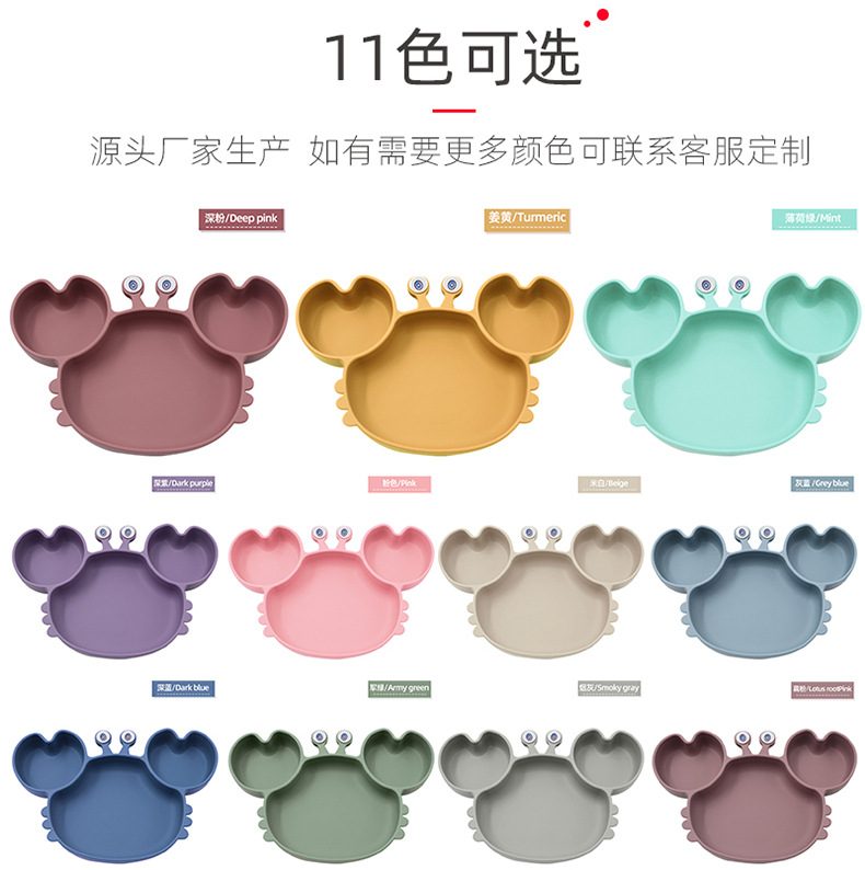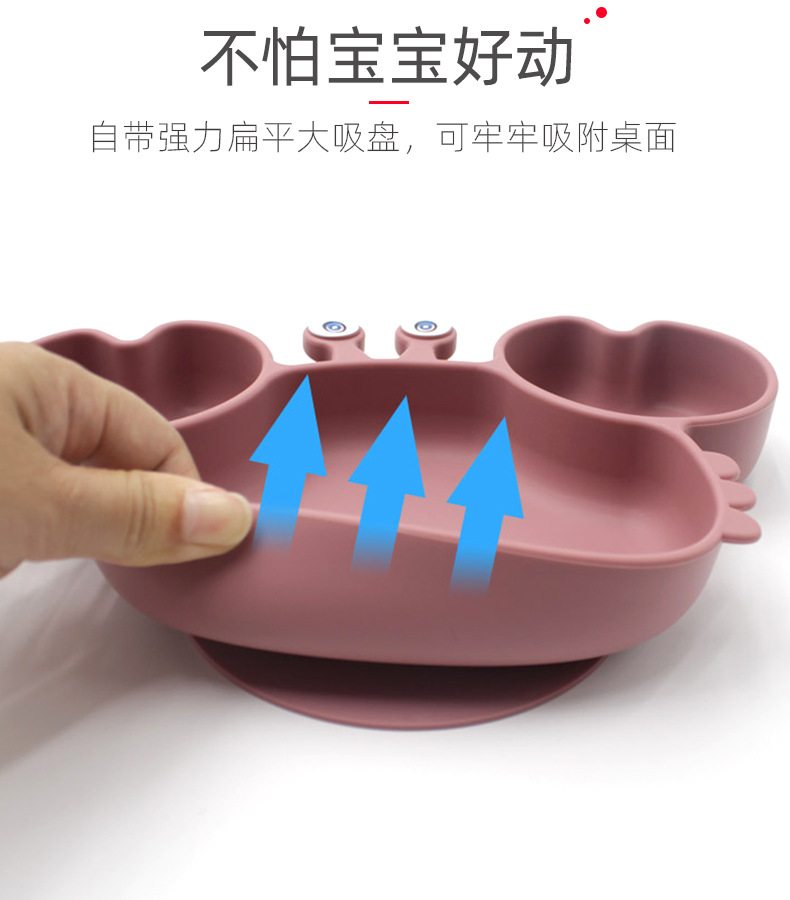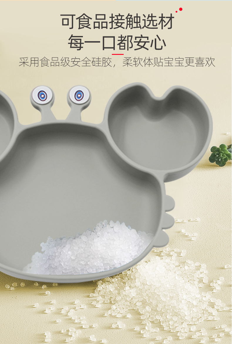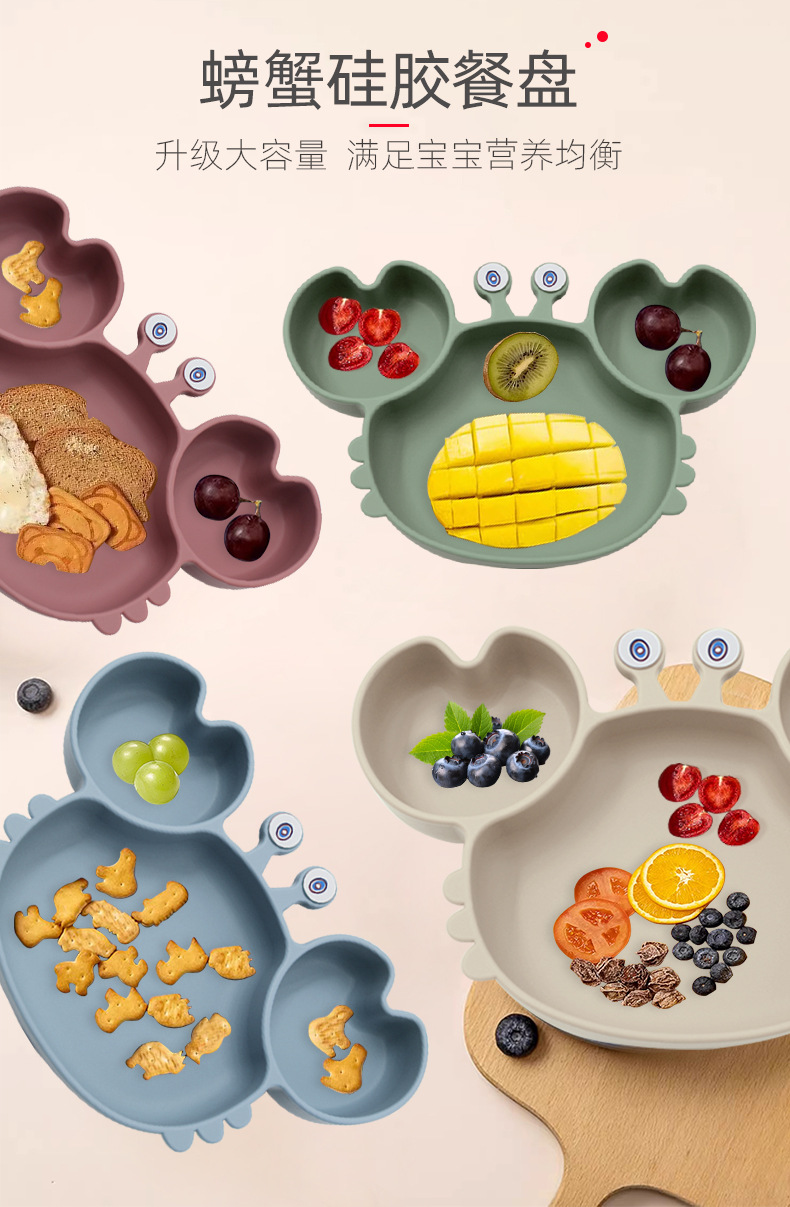 Plato de comedor de silicona dividido para niños Plato de comedor de cangrejo de dibujos animados Plato de comedor de bebés integrado Plato de comedor de alimentos suplementarios a prueba de caídas Plato de comedor de ventosas
