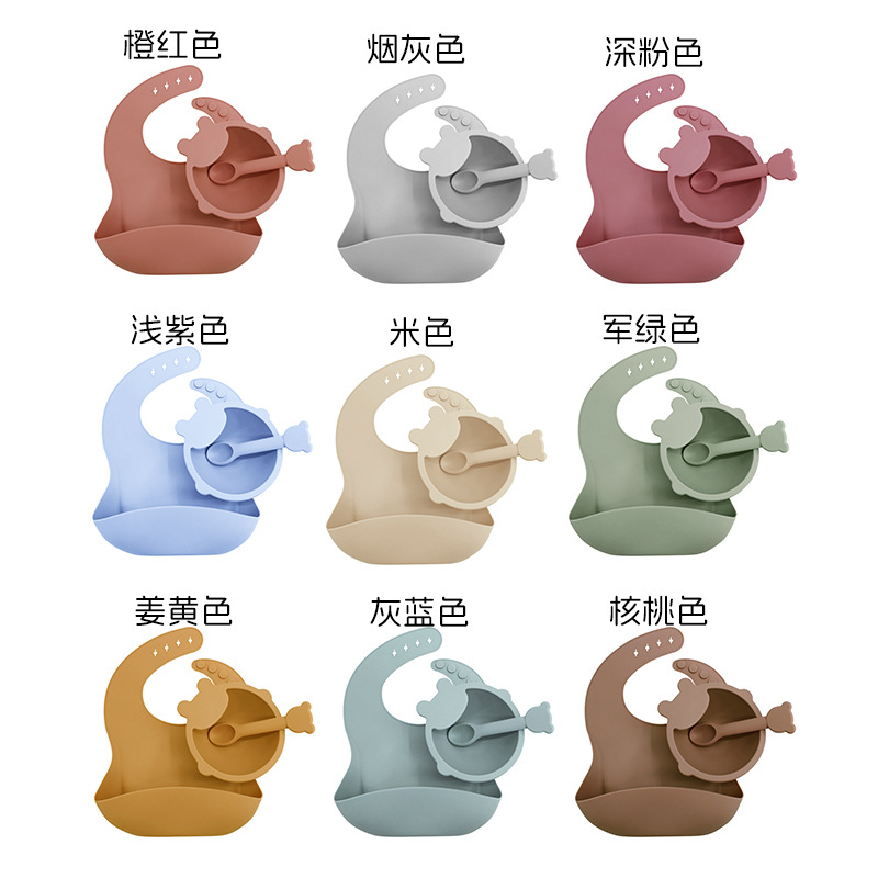 Cuenco de silicona cuchara babero vajilla bebé suministros babero de silicona Tazón Cuchara traje niños comiendo conjunto de tres piezas