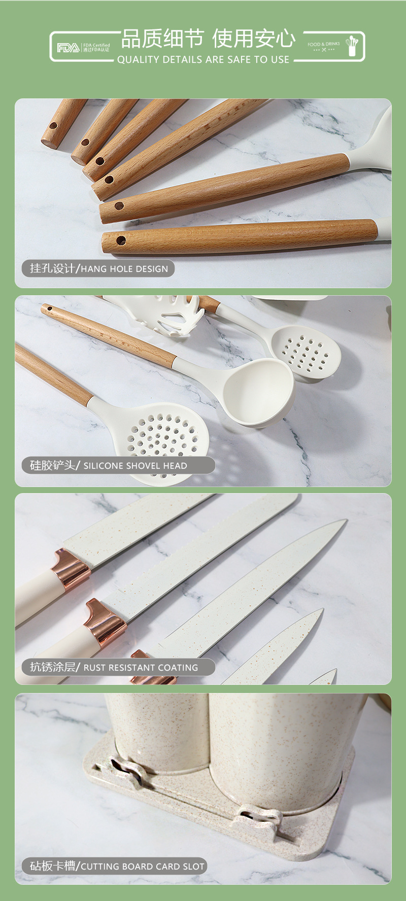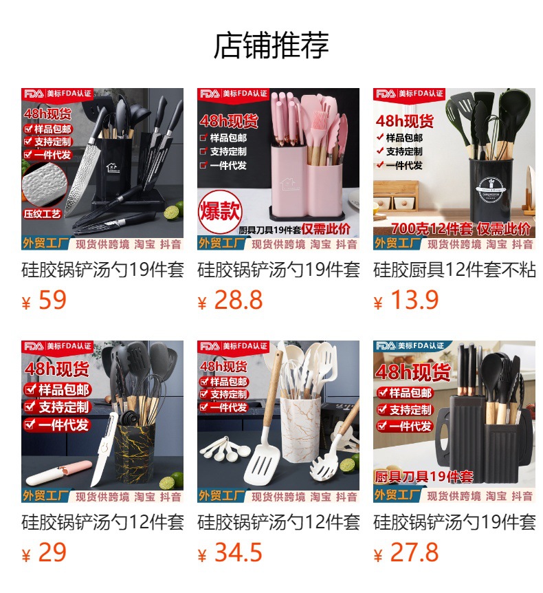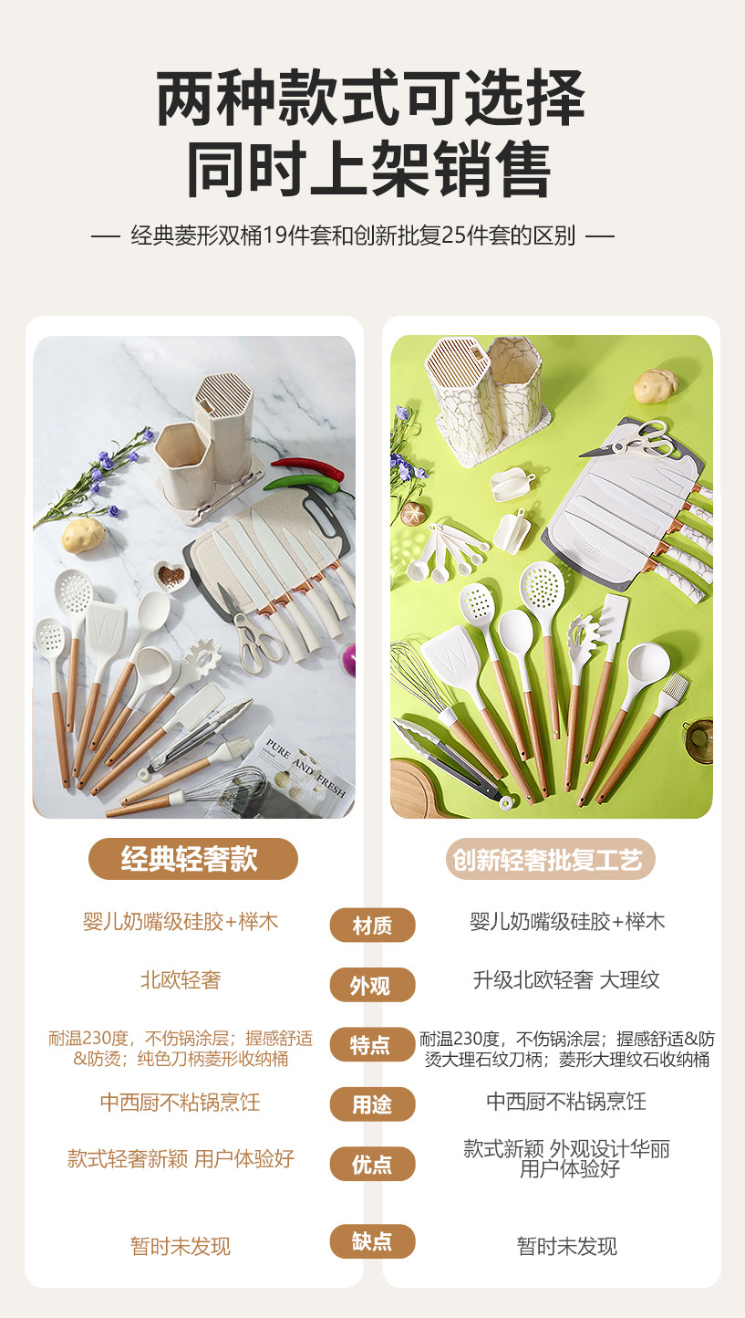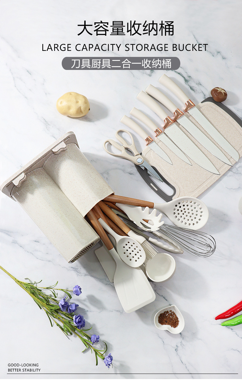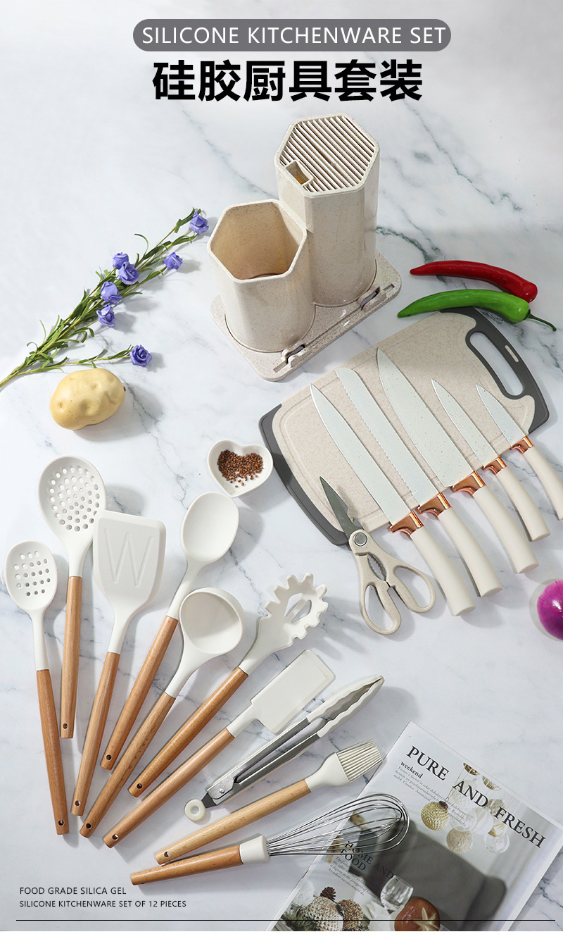 19 conjuntos de silicona antiadherente conjuntos de cuchillos de cocina de silicona doméstica al por mayor