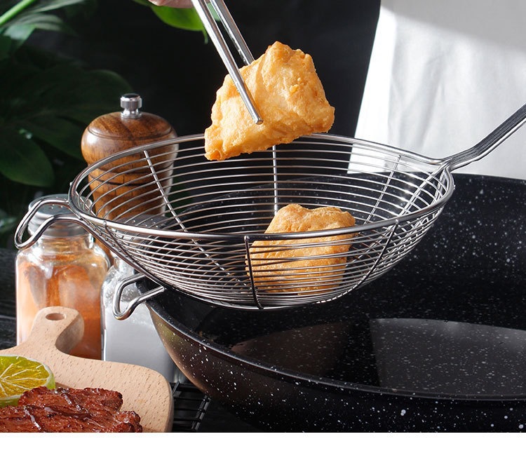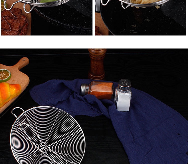 Fuga de alambre de acero inoxidable con gancho, colador de olla caliente engrosado, colador grande de cuatro hilos, drenaje, filtración de red grande para el hogar