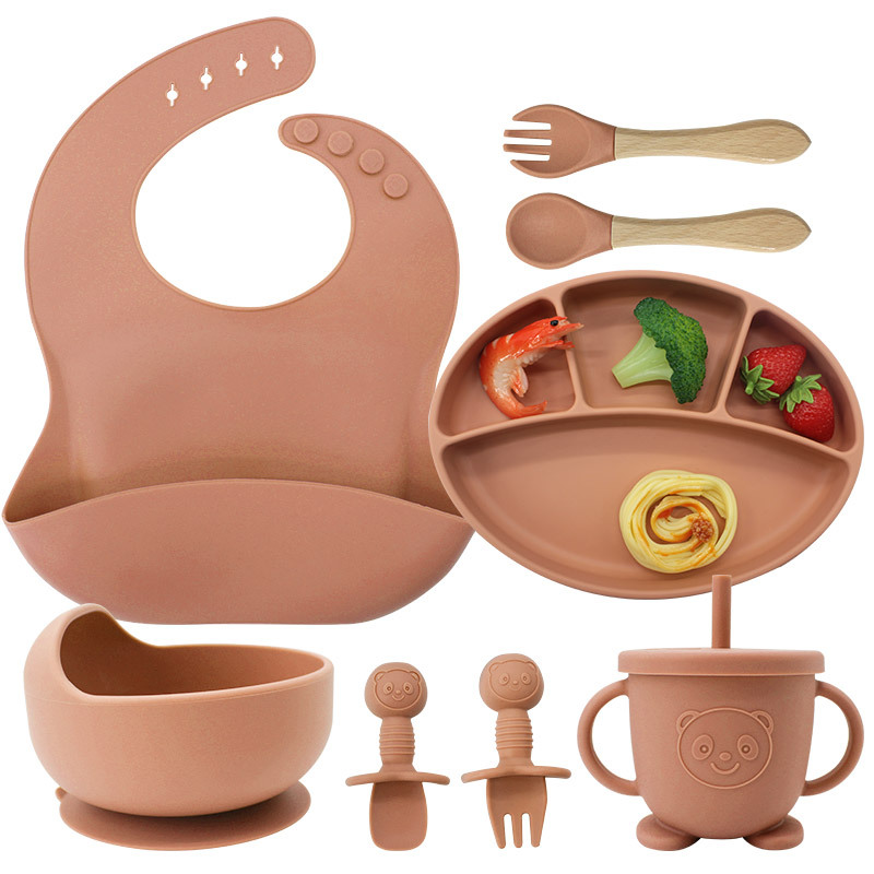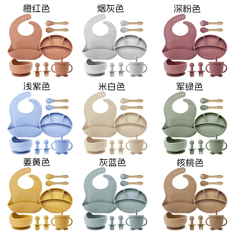 Suplemento alimenticio de vajilla para niños Traje de tazón materno e infantil Necesidades diarias Fábrica plato para niños tazón de silicona cuchara de silicona