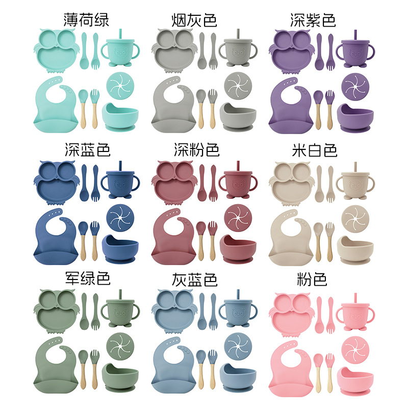 Búho DE LOS NIÑOS vajilla traje complementario de alimentación del bebé placa babero de silicona tazón materna e infantil suministros de calidad alimentaria