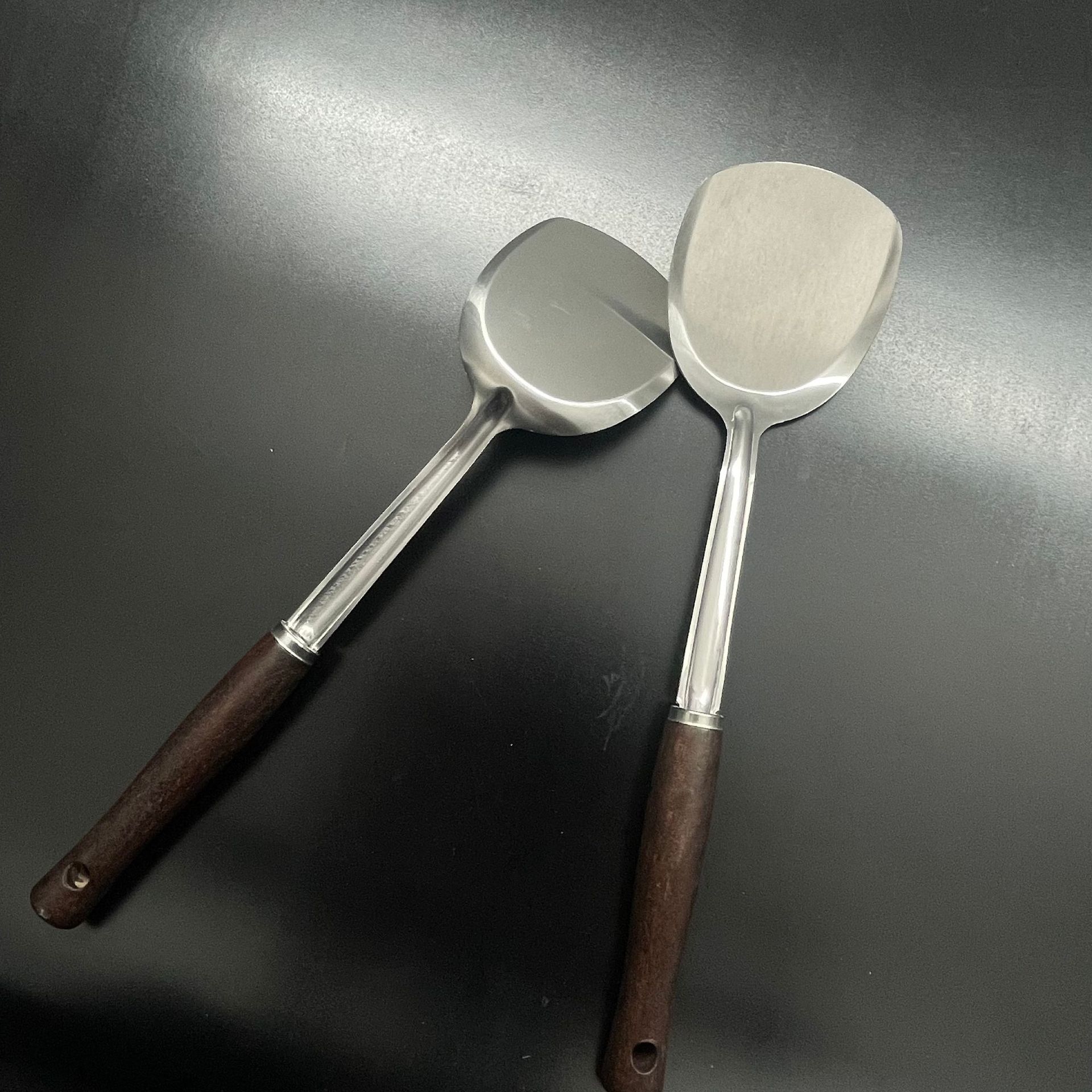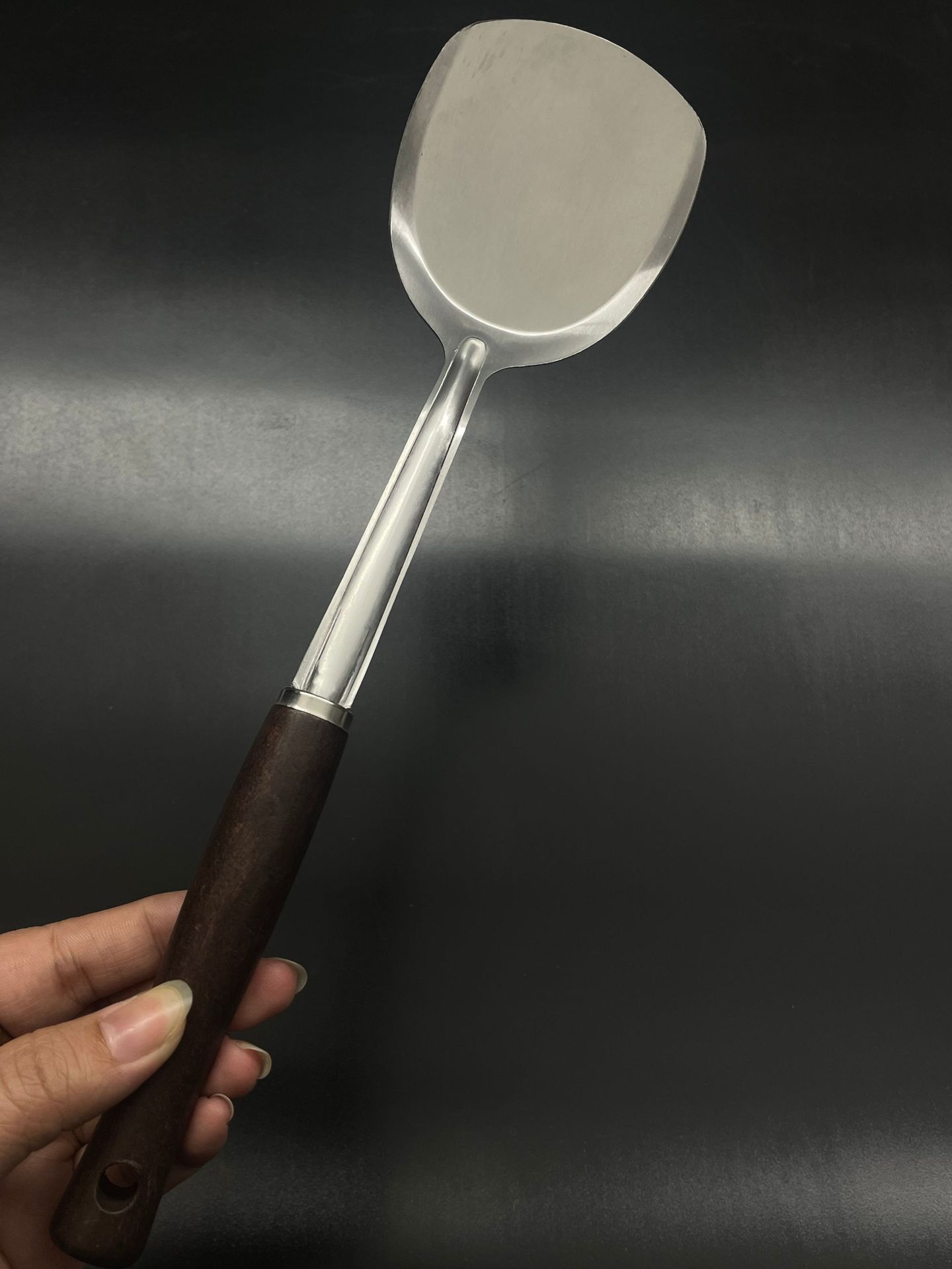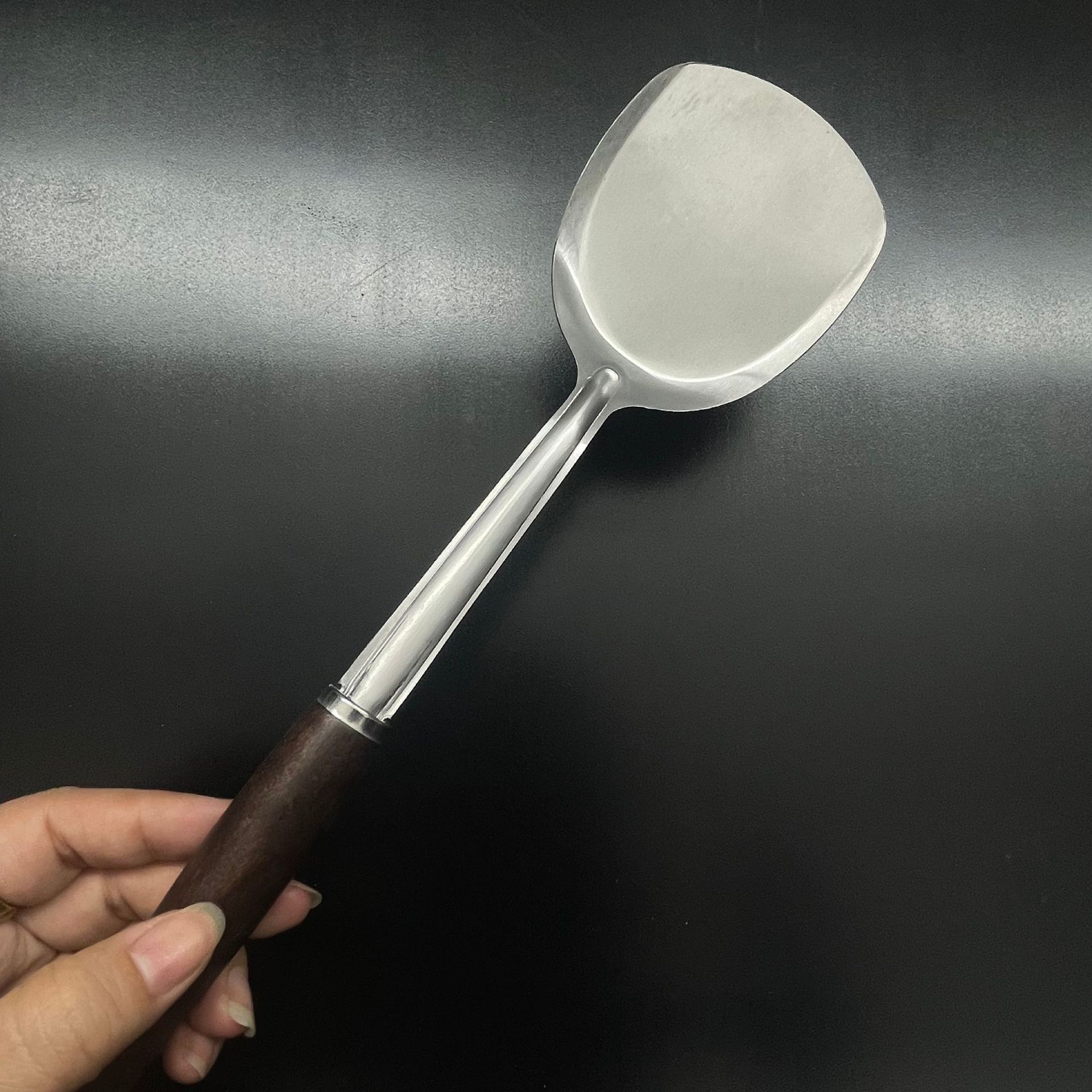 Paleta pequeña con mango de madera, cocina, olla pequeña para el hogar, pala pequeña especial, mini pala pequeña de cocina resistente a altas temperaturas de acero inoxidable