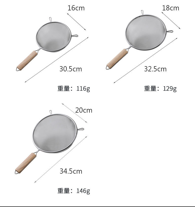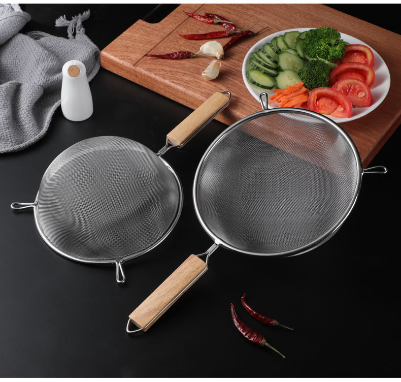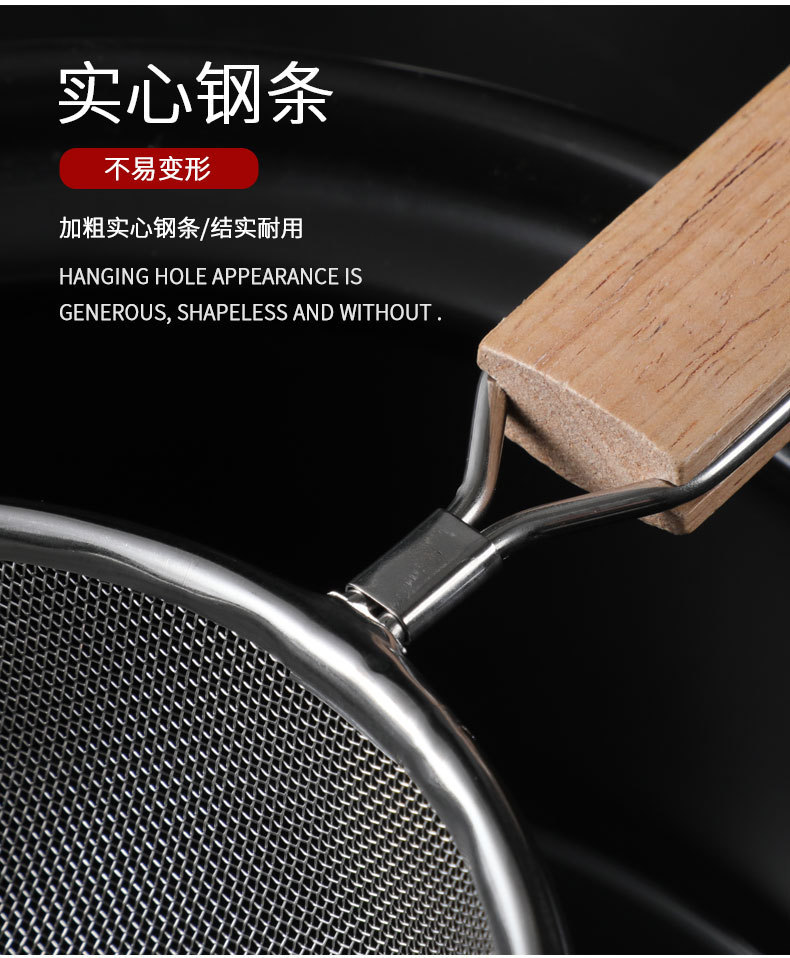 Cuchara de acero inoxidable cuchara de barrera de aceite mango de madera cuchara de pesca de frita de doble oreja cocina de mano utensilios de cocina para hornear tamiz de malla de fugas de harina