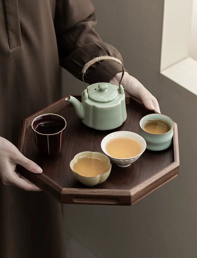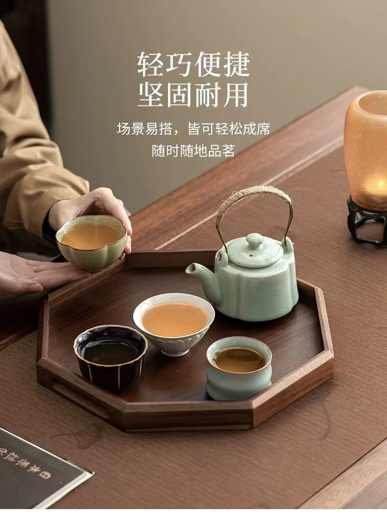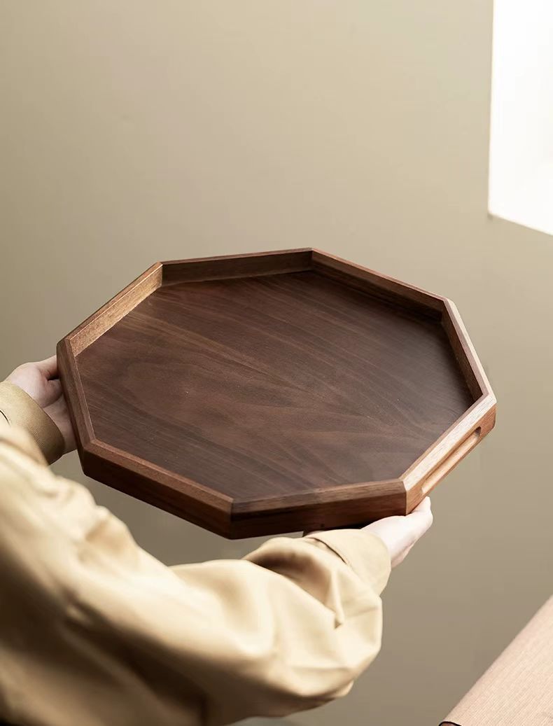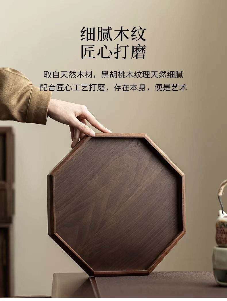 bandeja de color nuez hogar plato de té octogonal taza de té restaurante bandeja de almacenamiento de té bandeja de madera maciza