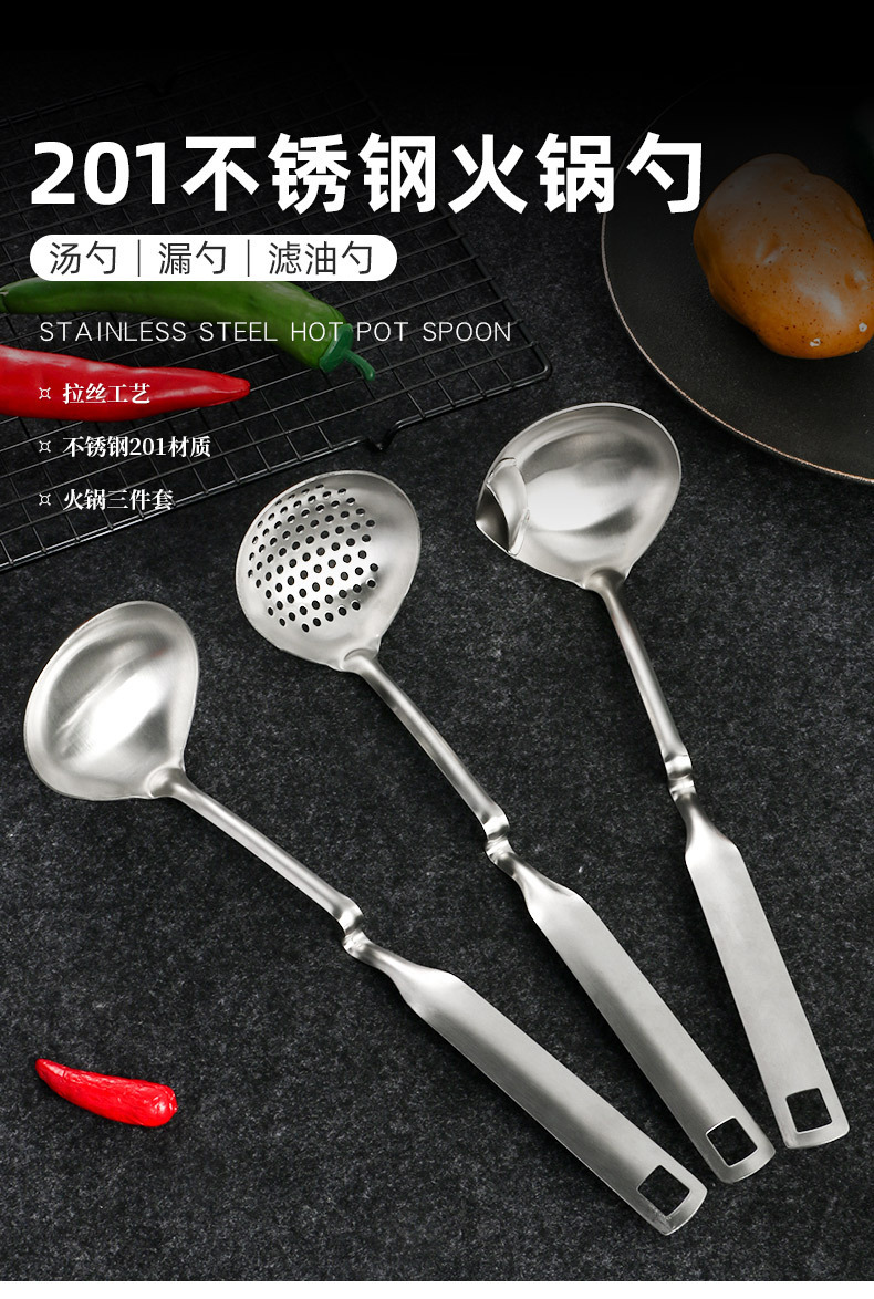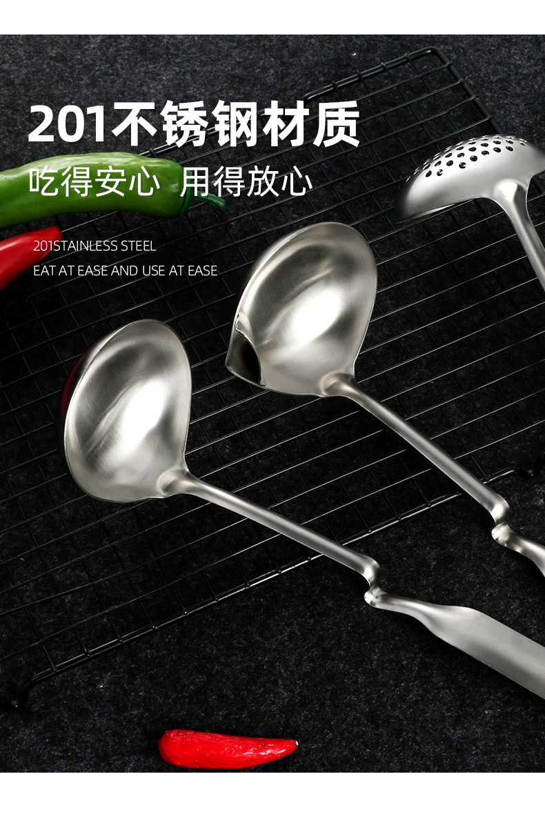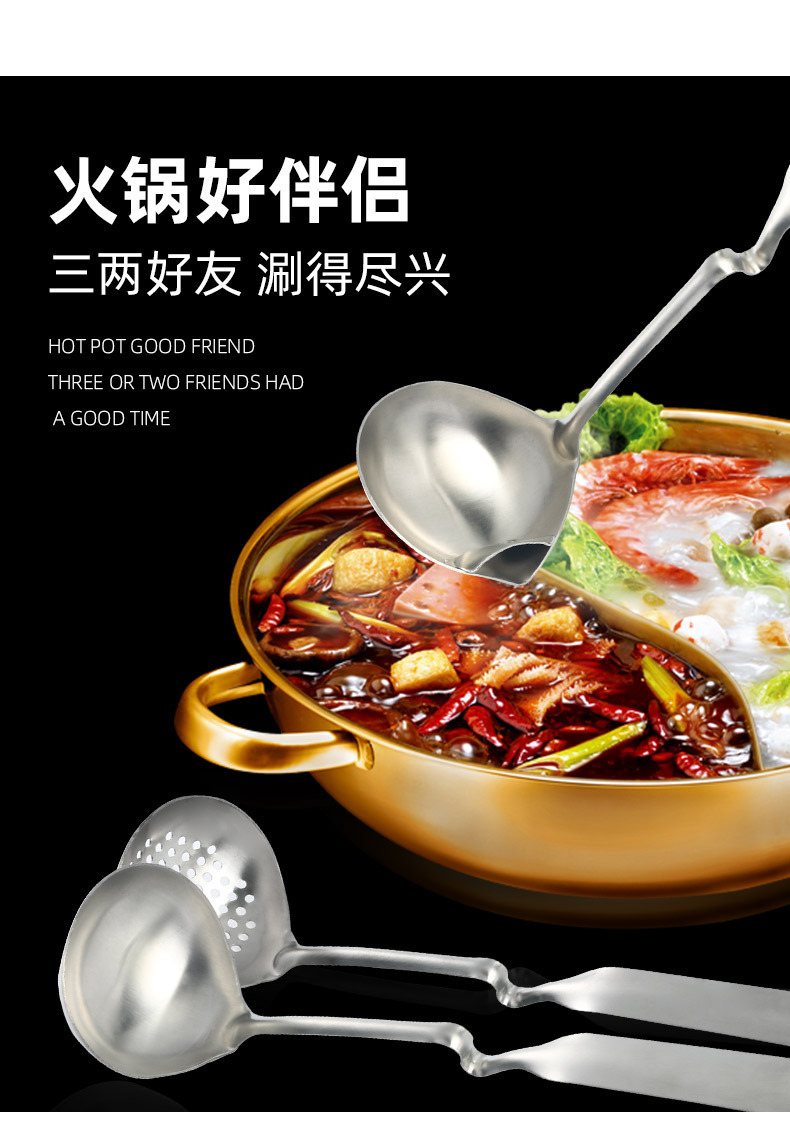 Cuchara de tapón de aceite de pared de acero inoxidable Cuchara de olla caliente Cuchara de cocina para el hogar Cuchara de colador Juego de utensilios de cocina Carcasa de sopa engrosada Resistencia a altas temperaturas
