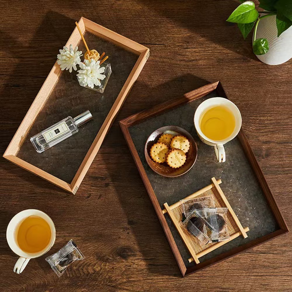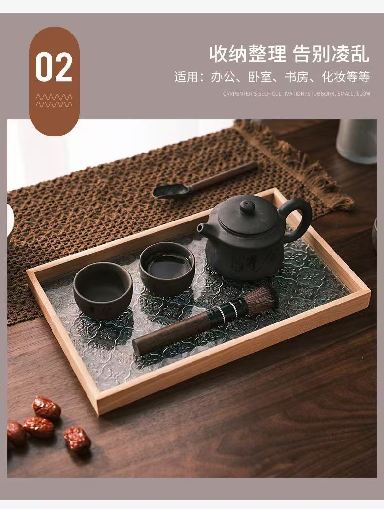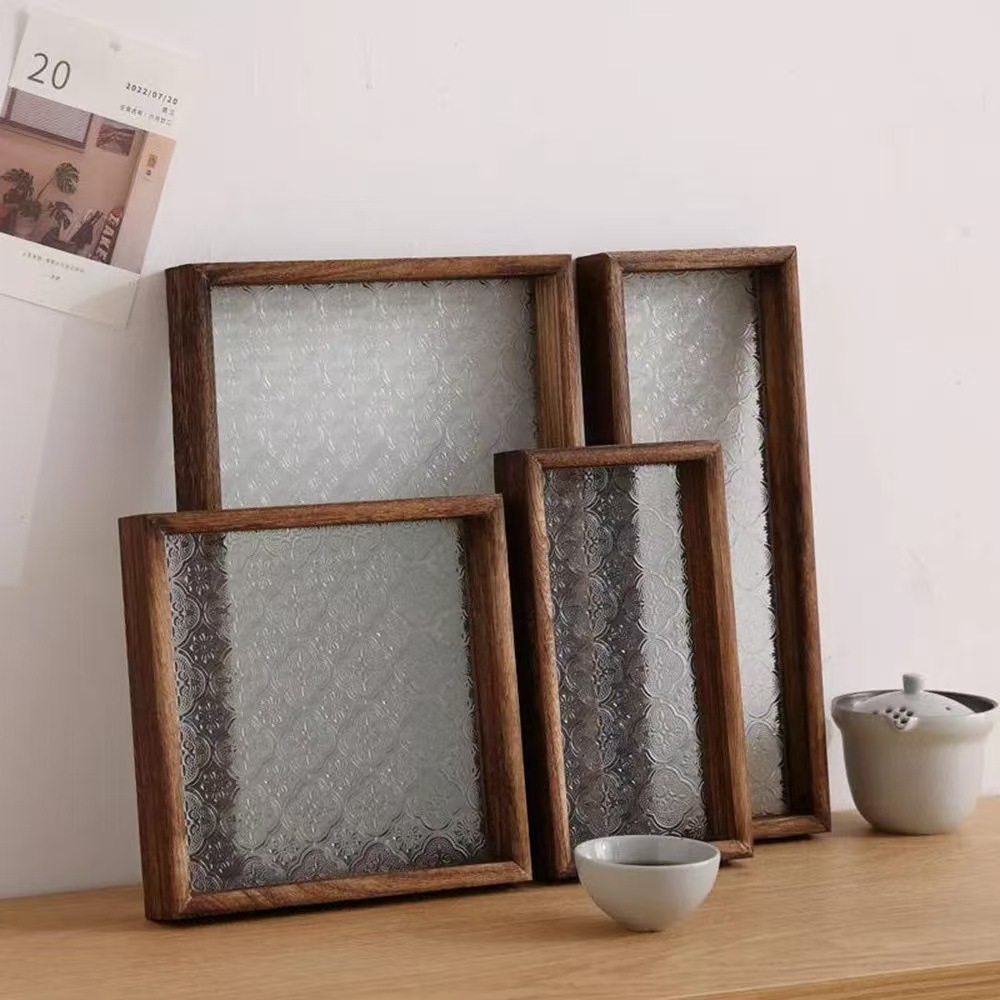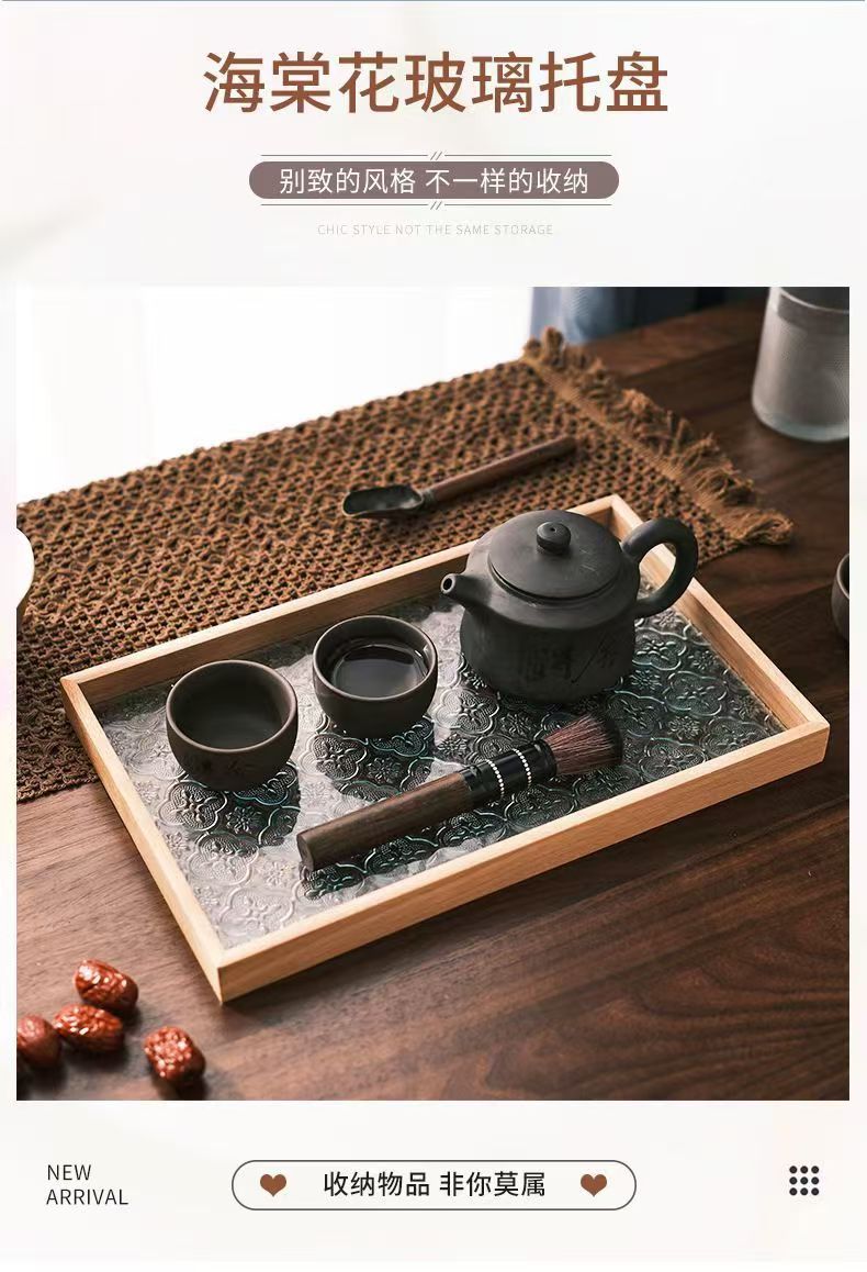 Bégonia retro bandeja de té rectangular de alto valor de madera refrigerio taza de té bandeja de té bandeja de vidrio