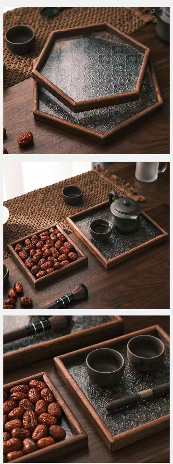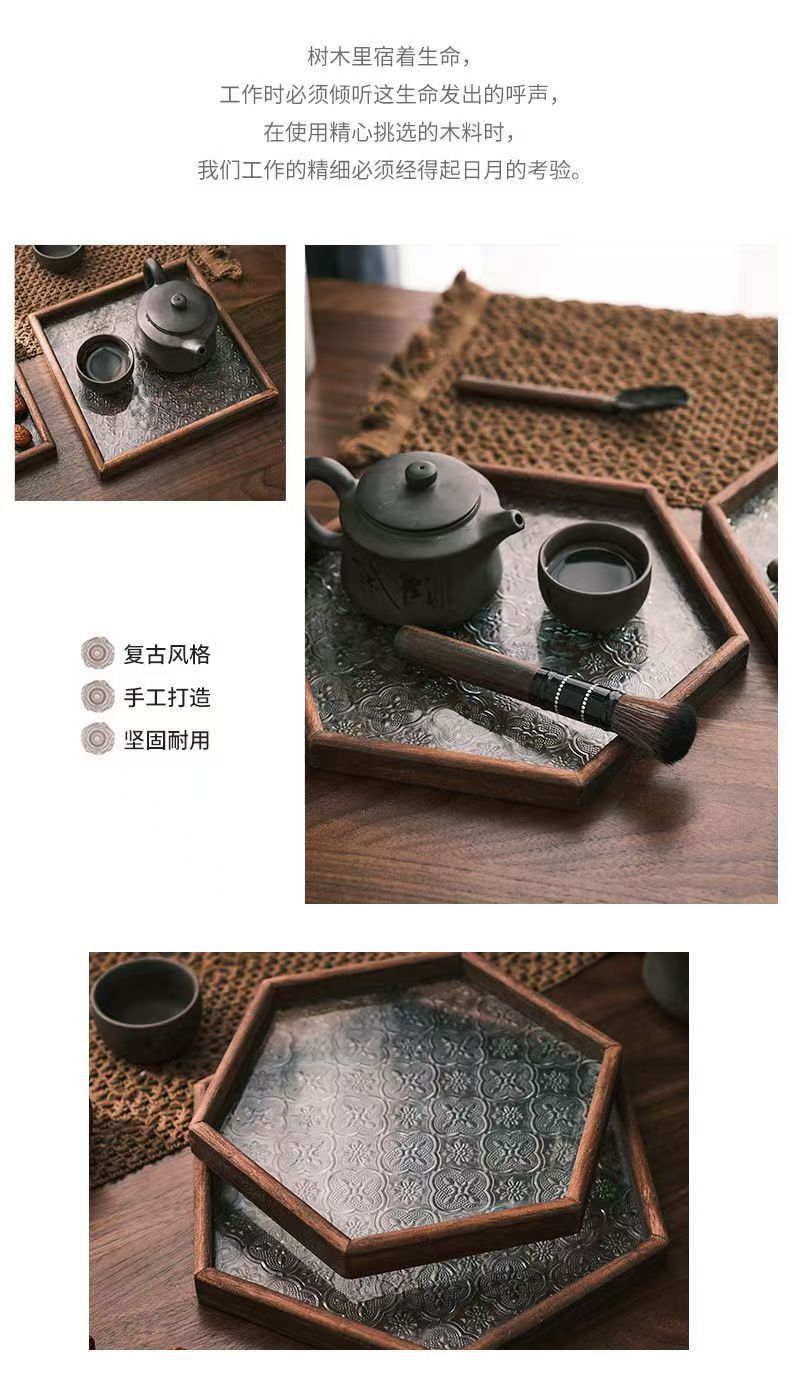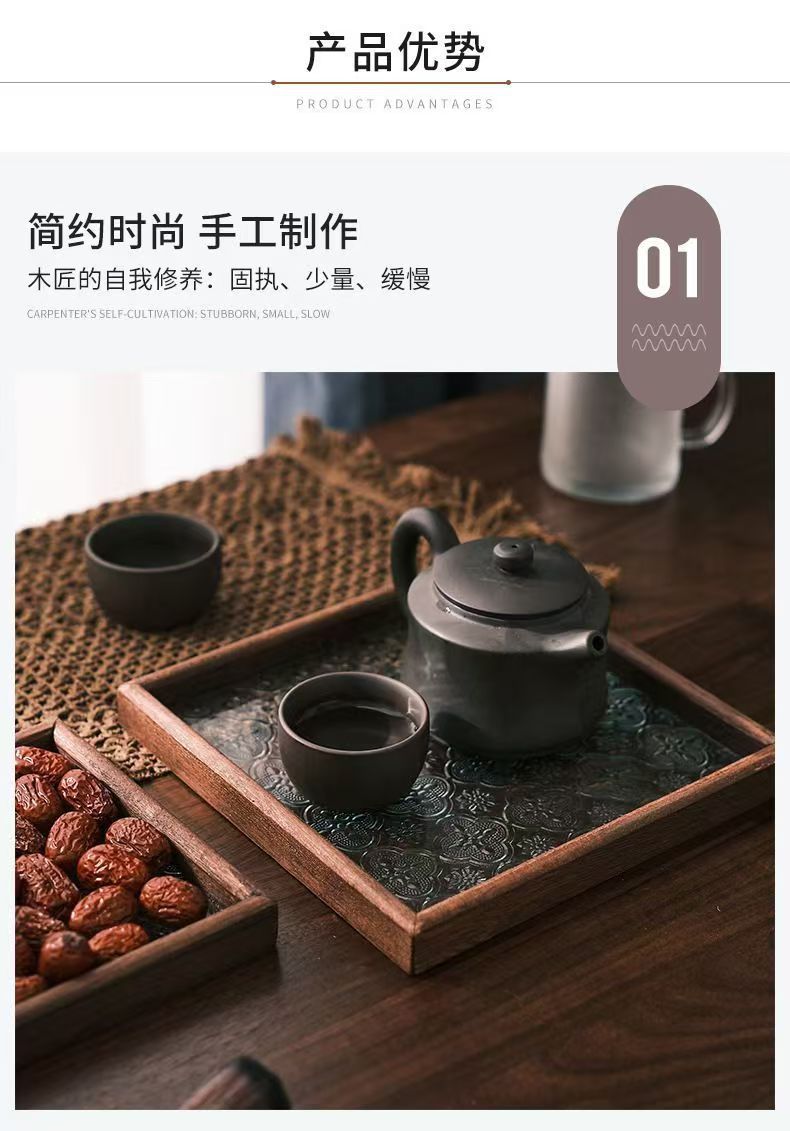 Bégonia retro bandeja de té rectangular de alto valor de madera refrigerio taza de té bandeja de té bandeja de vidrio