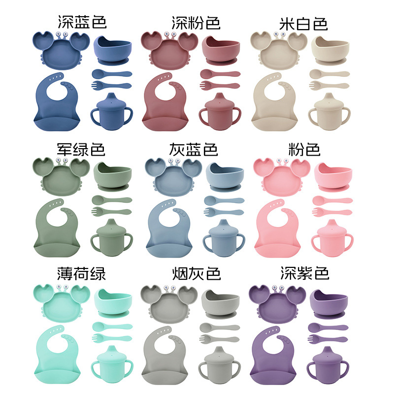 Plato de cena de cangrejo para niños vajilla de dibujos animados de alimentación de silicona bebé pezón taza de paja traje de combinación de vajilla de seis piezas